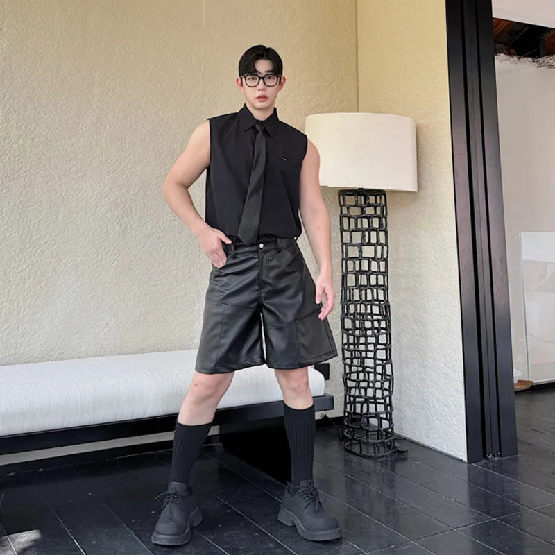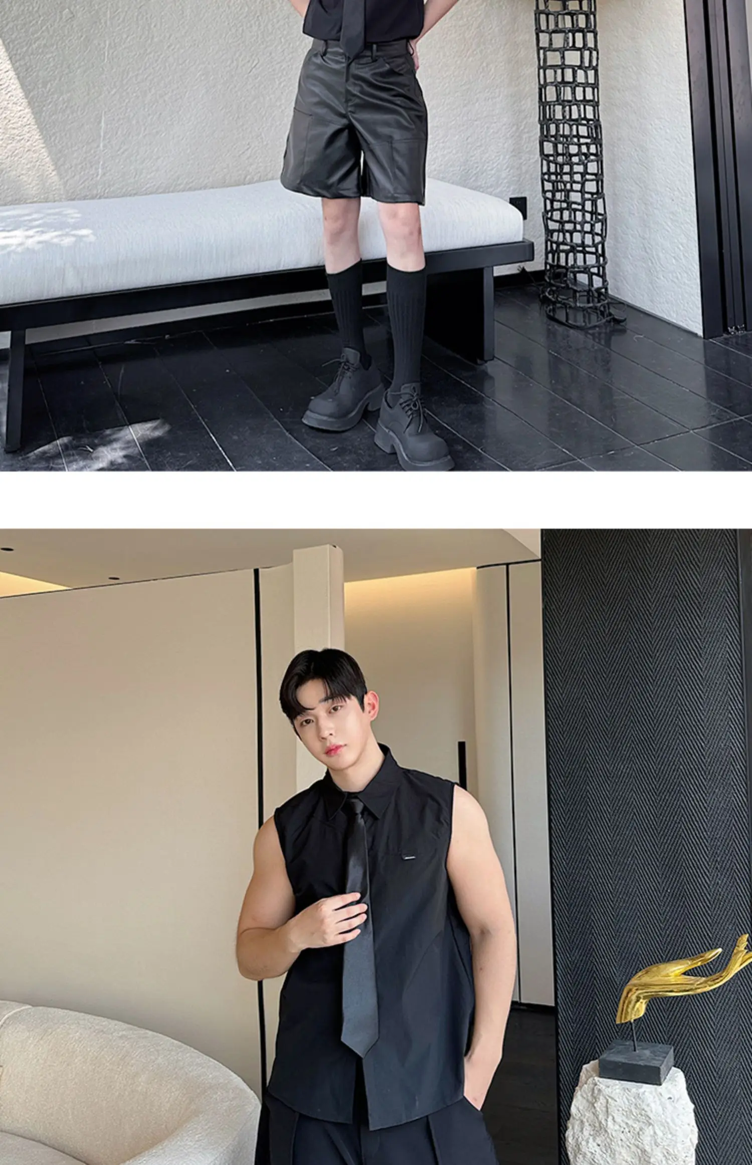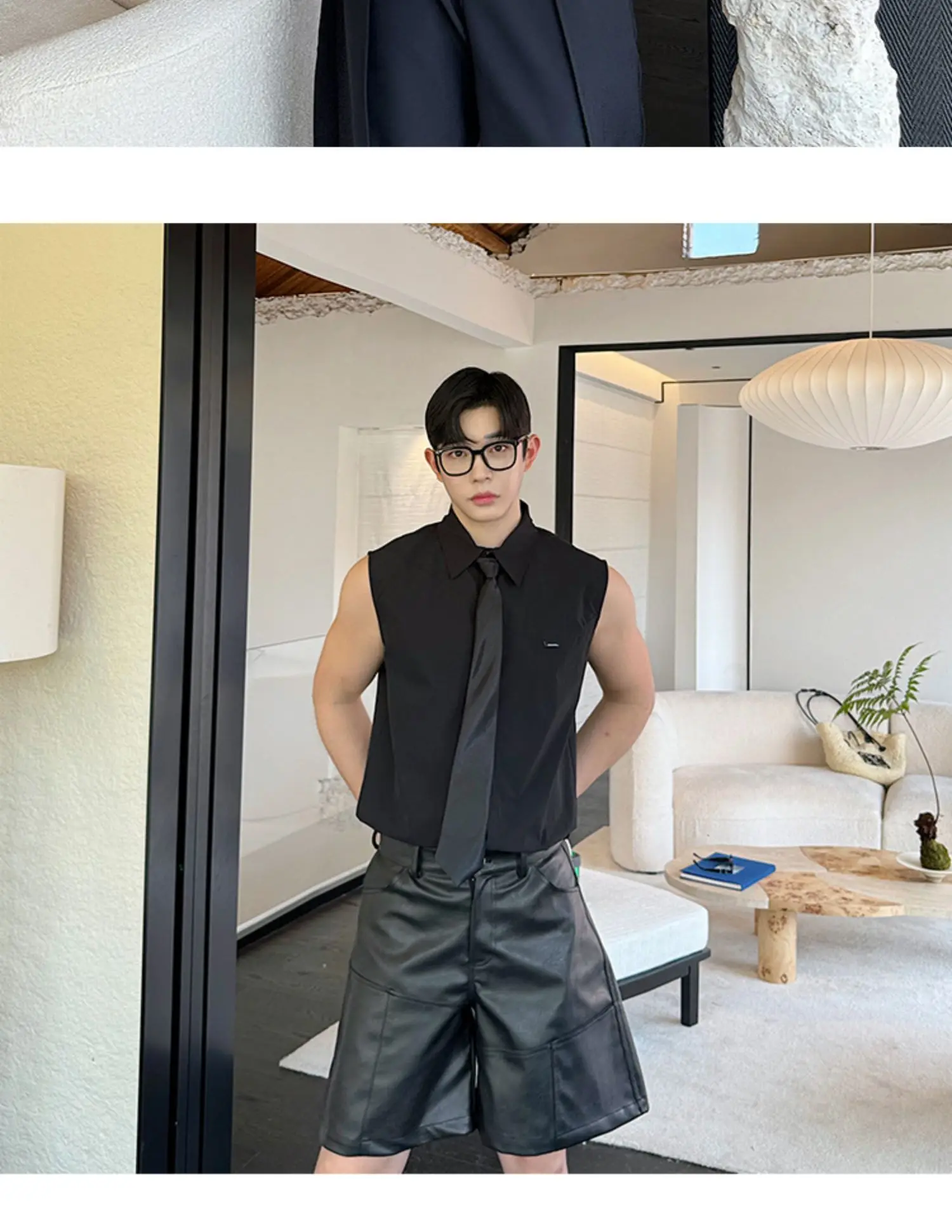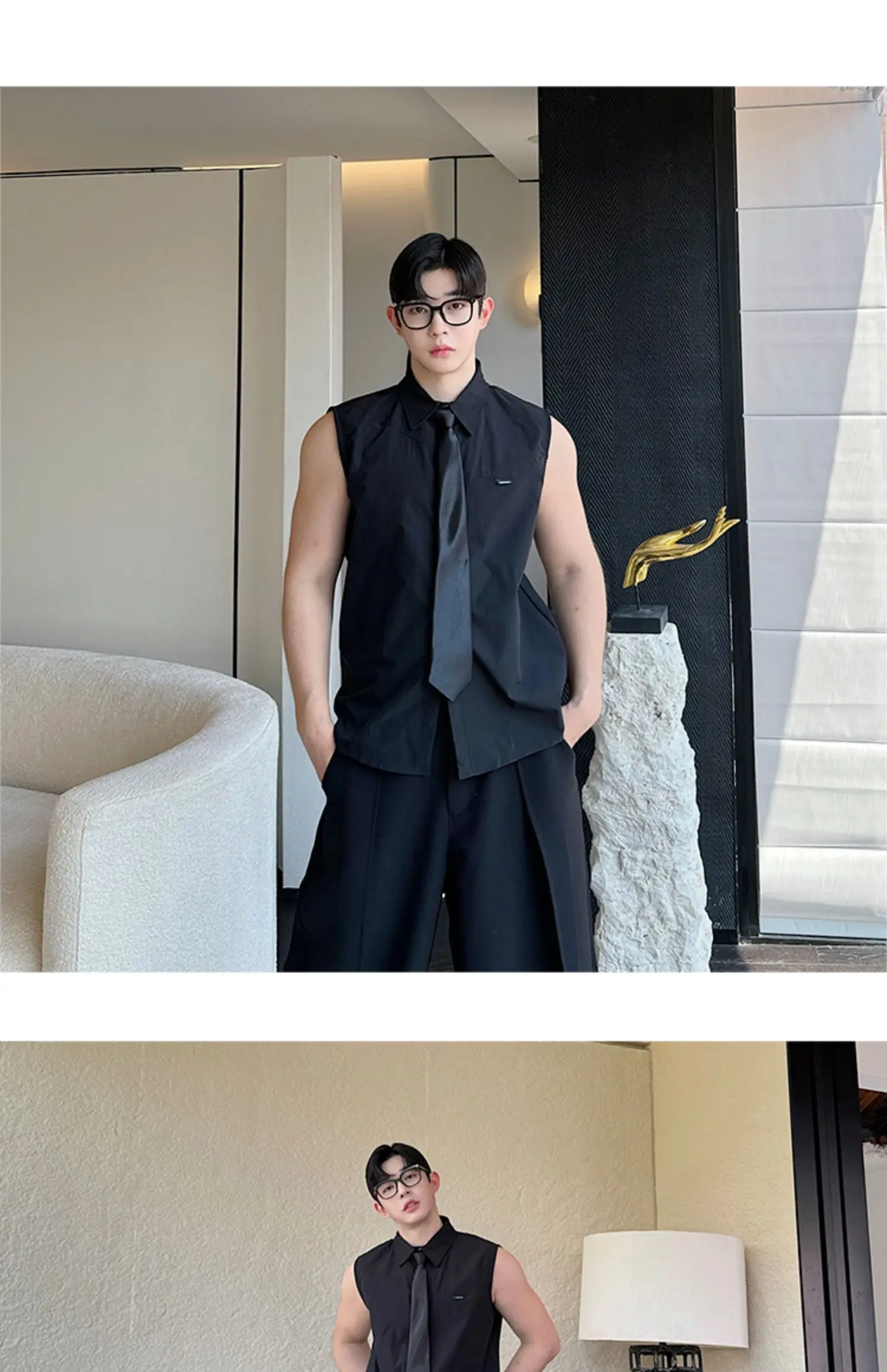 Advbridge New Summer Men's Shirts Loose Turn-down Collar Sleeveless Simple Solid Color Male Tops Casual Clothing Chic 2024