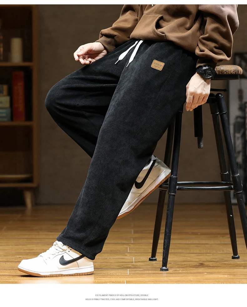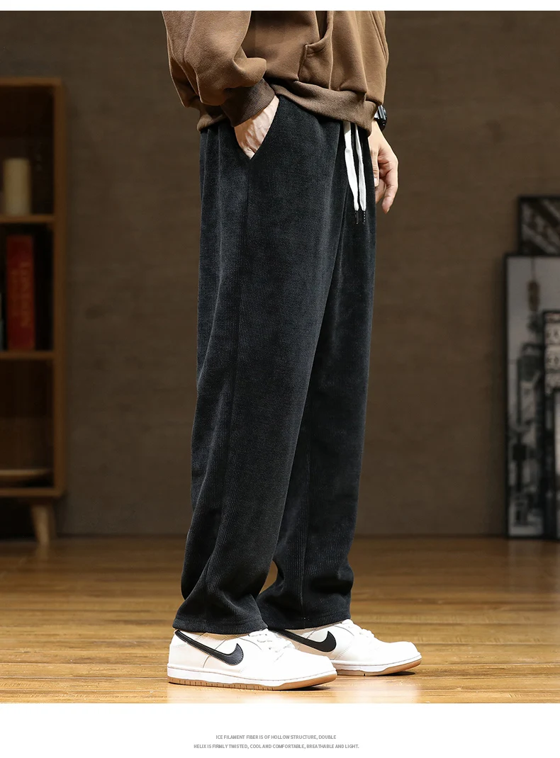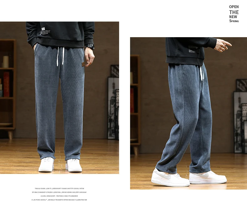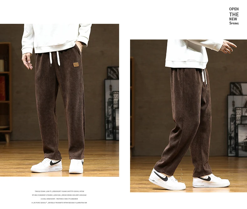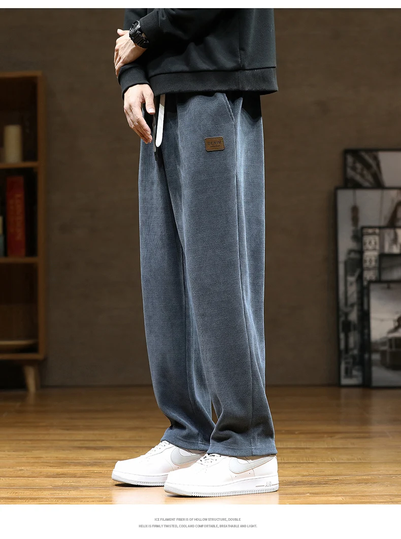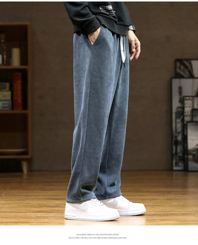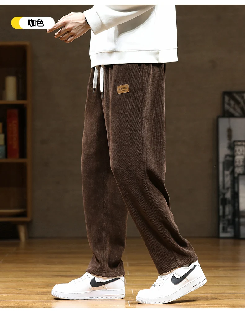 Advbridge New Winter Men Plush Warm Casual Pants Sweatpants Quality Couple Wide Leg Joggers Straight Solid Color Large Long Baggy Pants