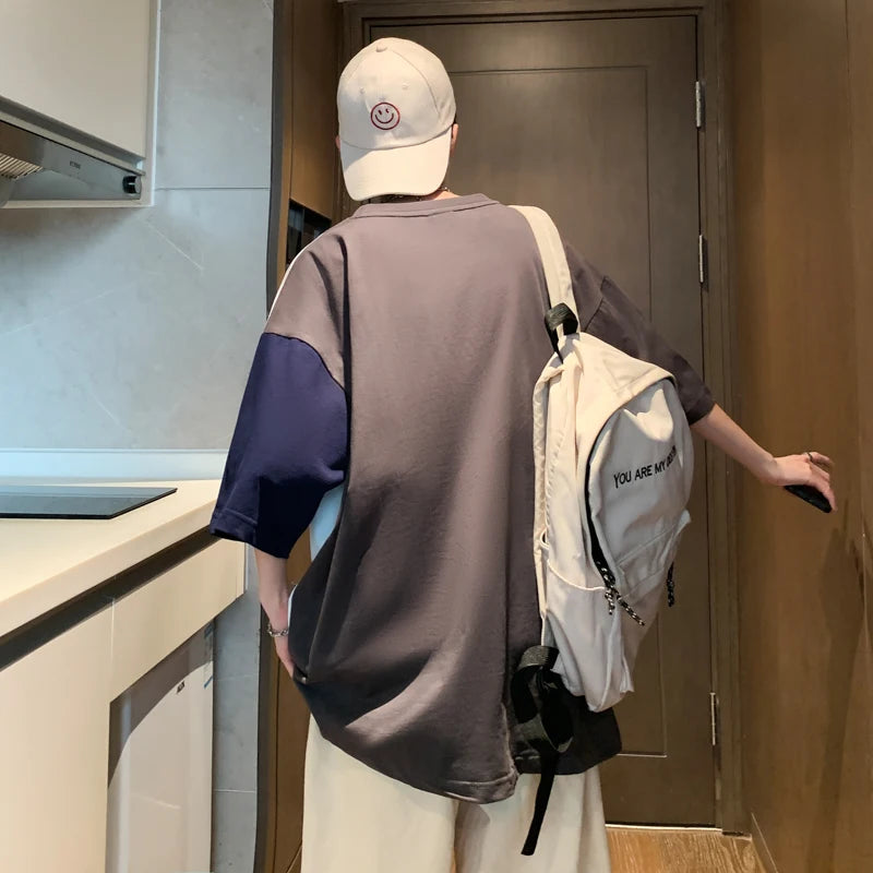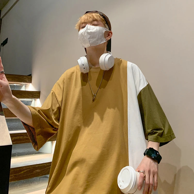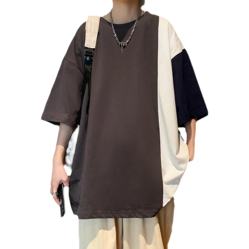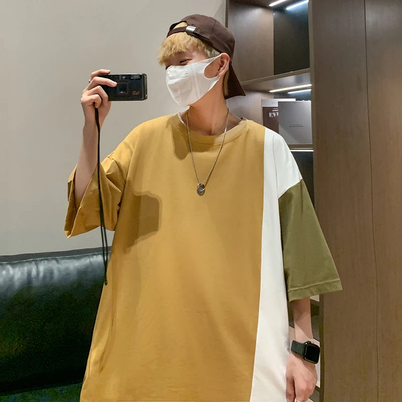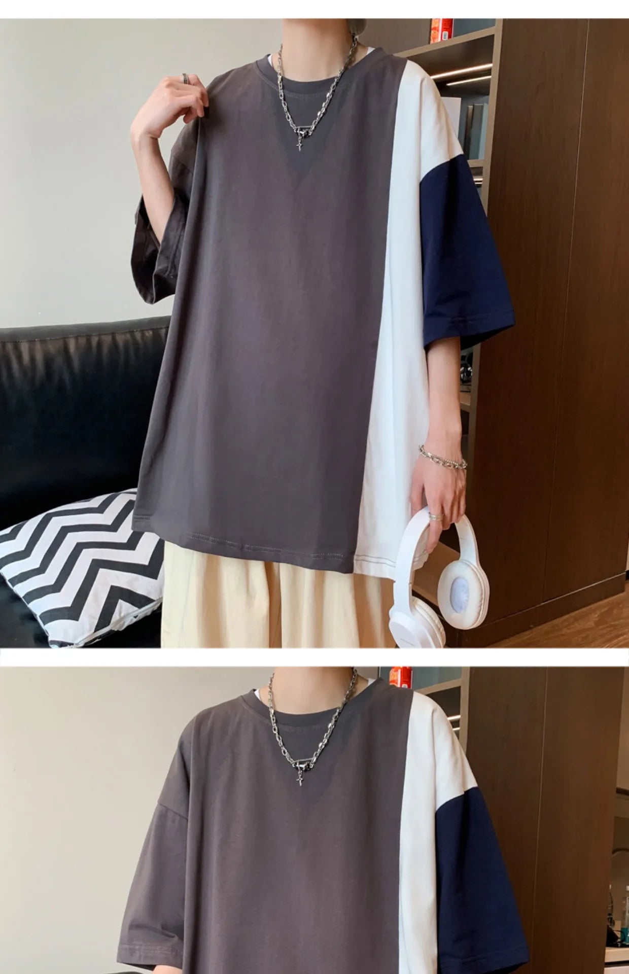 ADVBRIDGE  -  Patchwork Male Short Sleeves Men's Round Neck Summer and Spring Trendy Ice Silk T-shirt Men's Half Sleeve Body T-shirt Q226