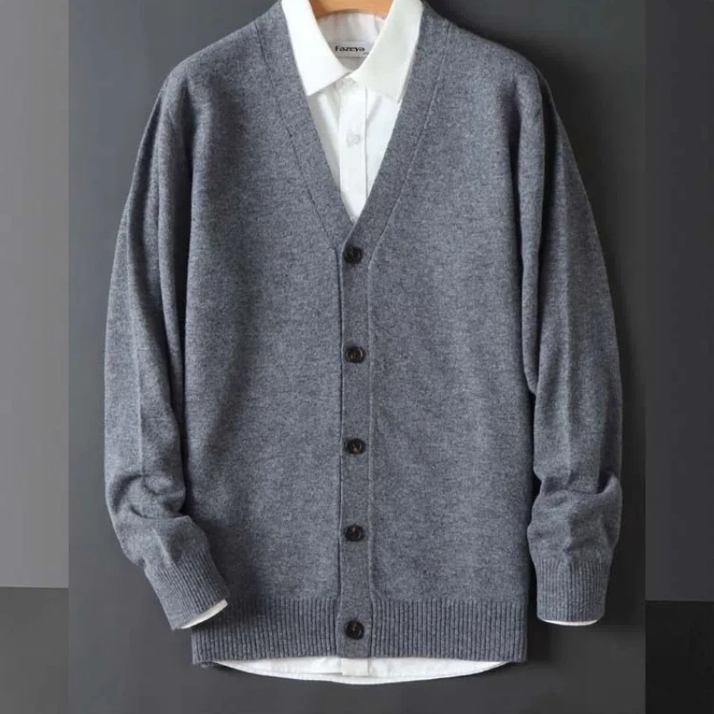 Advbridge Preppy Style Solid Color Button Long Sleeve Autumn Winter Cardigan Men's Clothing V-Neck Sweater Knitted Coats Casual Tops