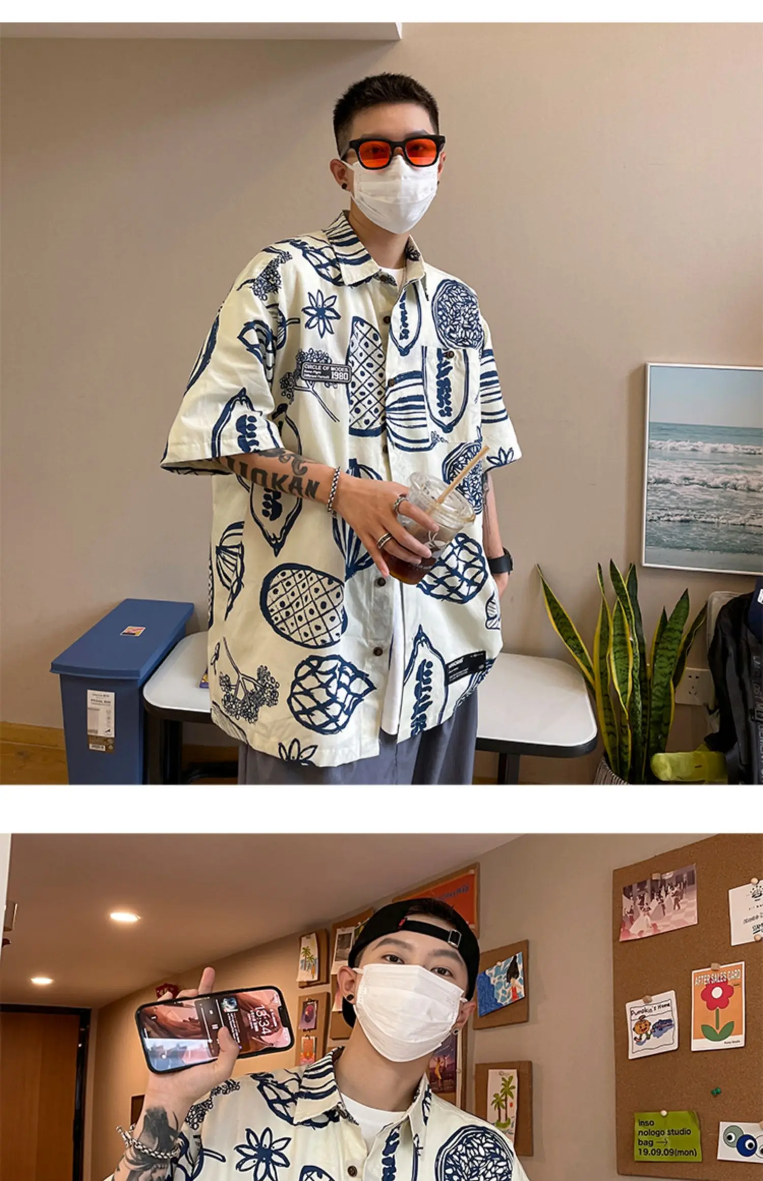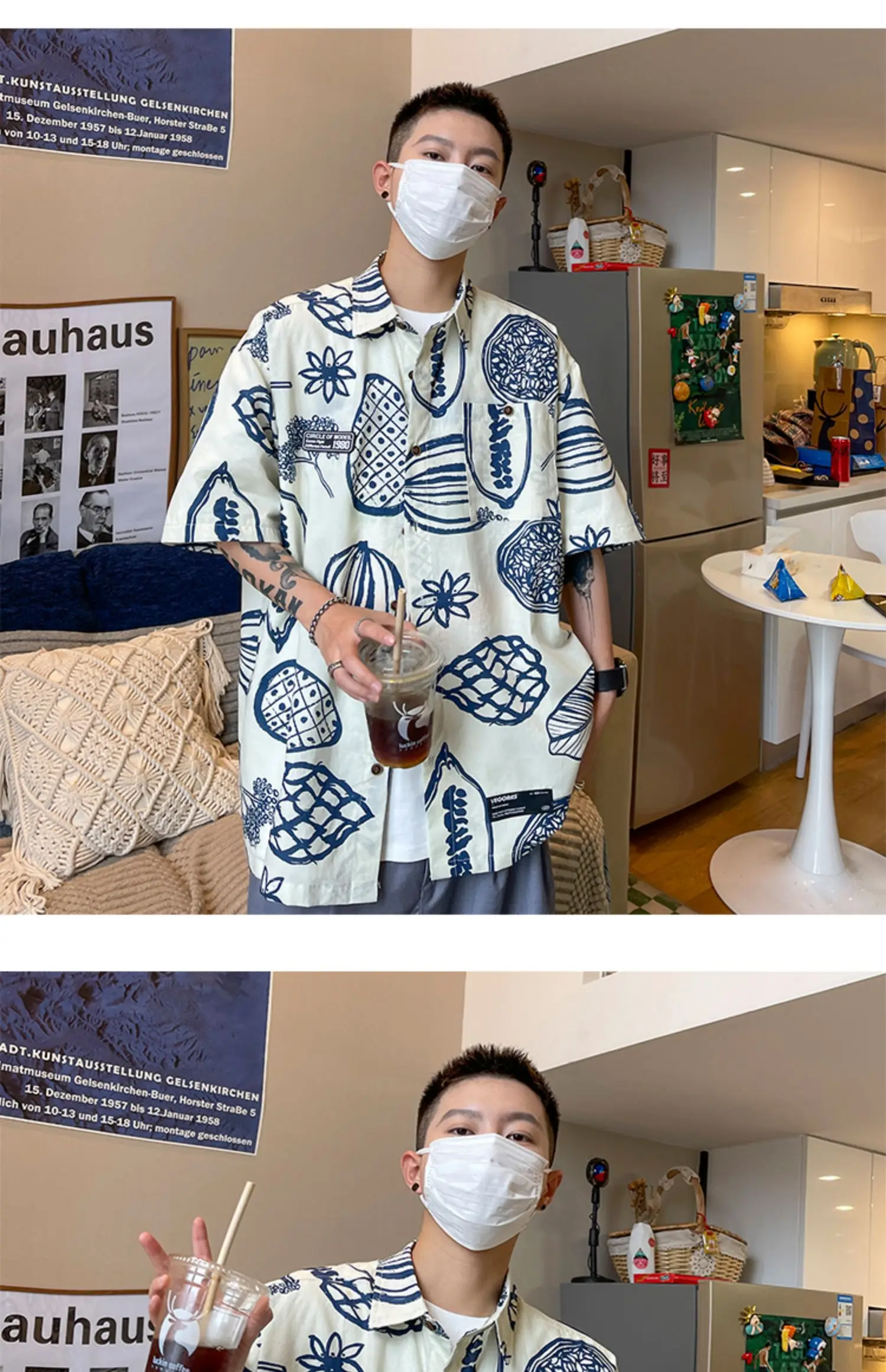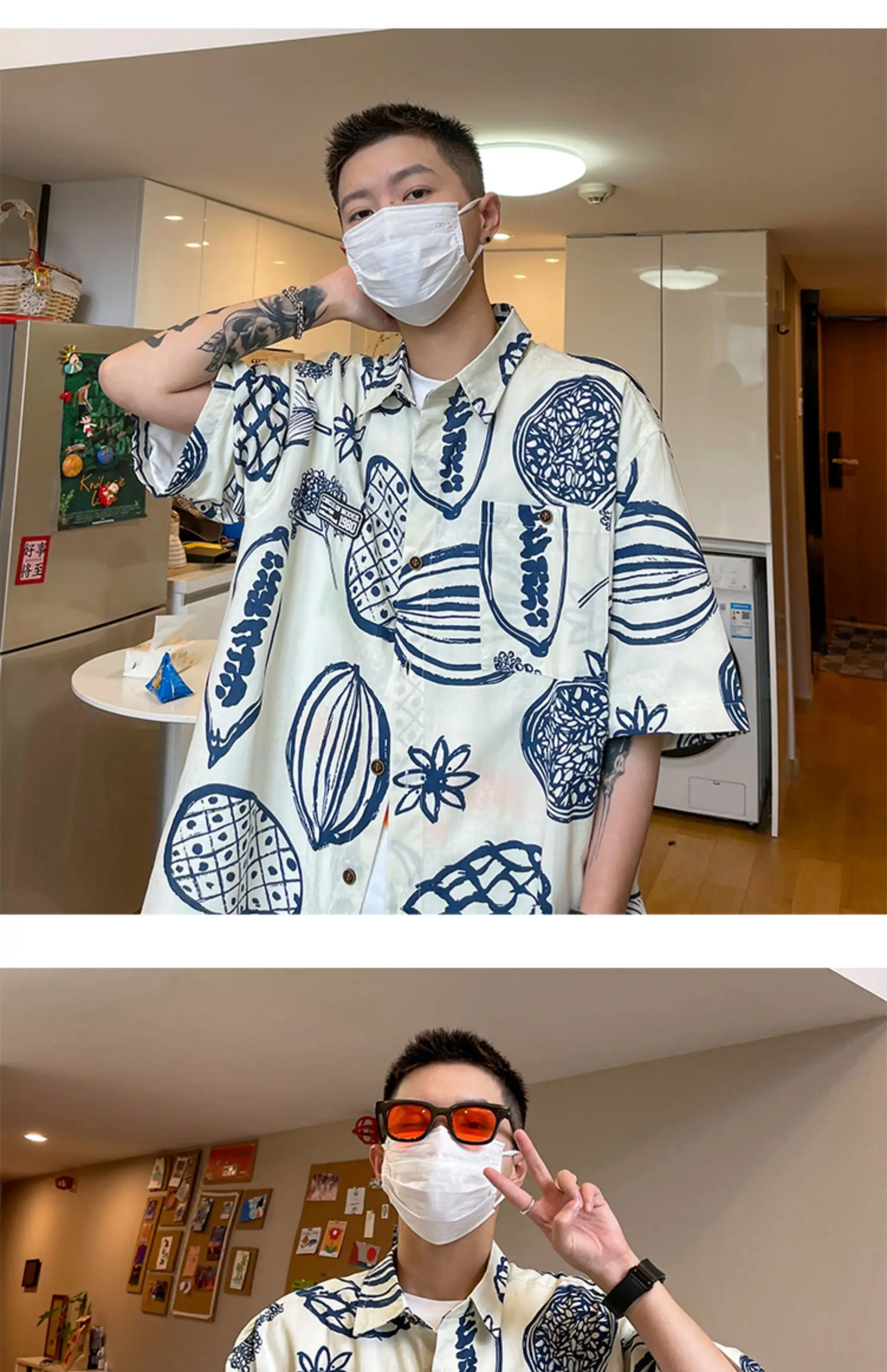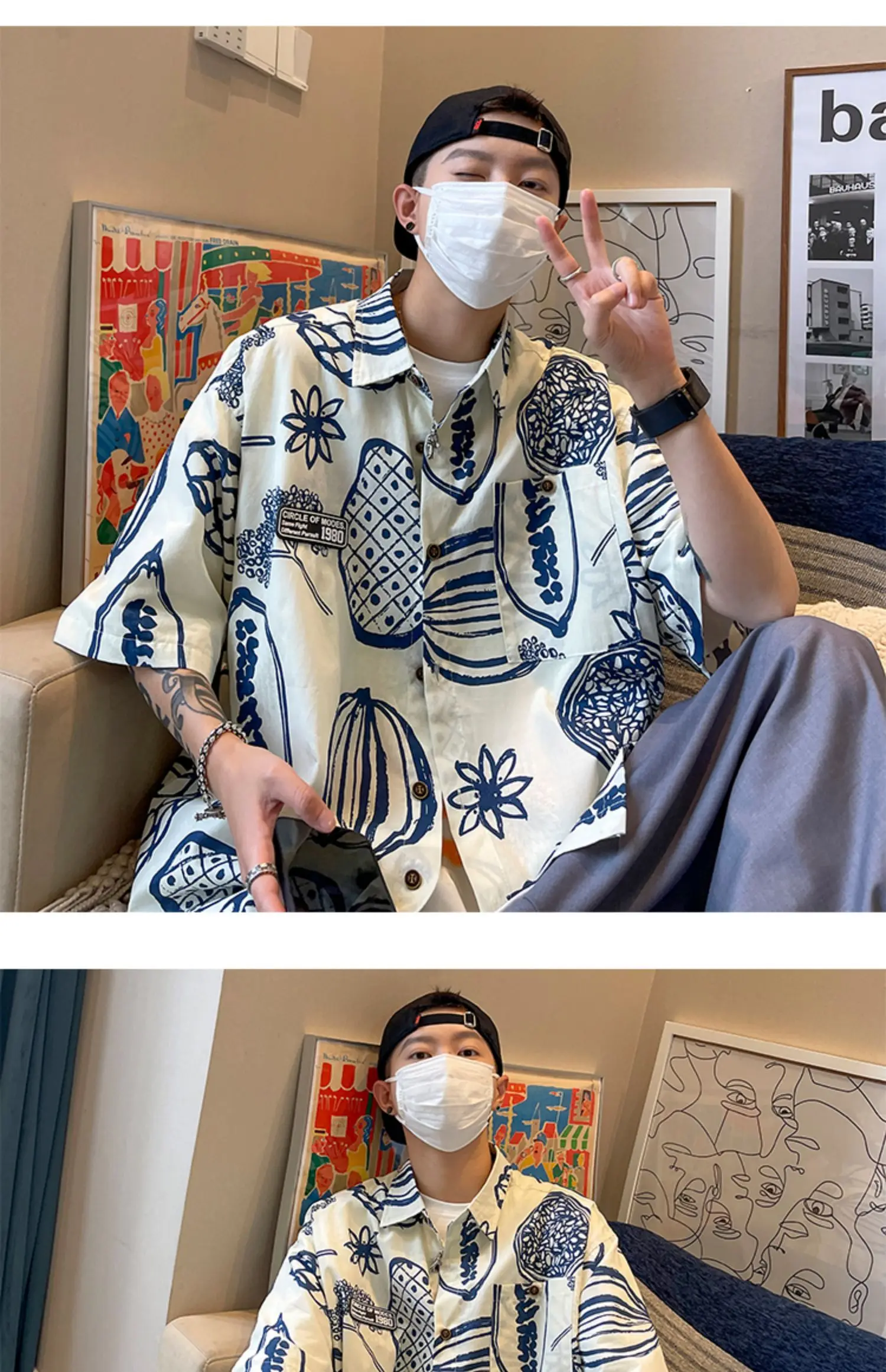 Advbridge Print Shirts Men Fashion Streetwear Handsome Summer Half Sleeve Turn-down Collar Korean Style Teenagers Popular Youthful Hipster