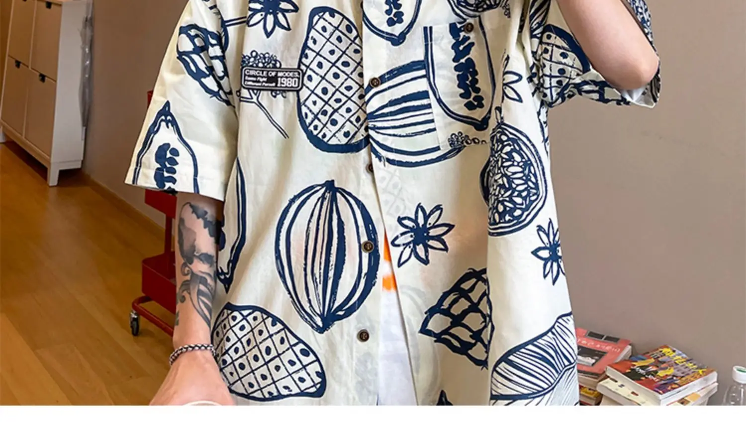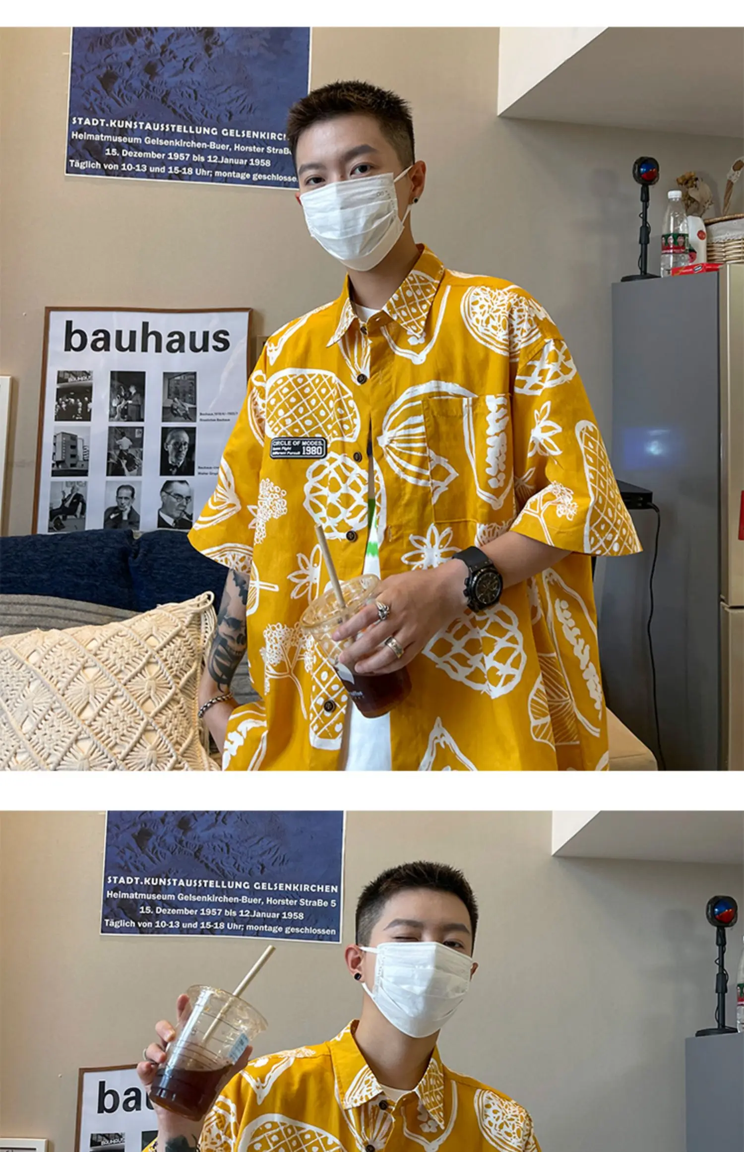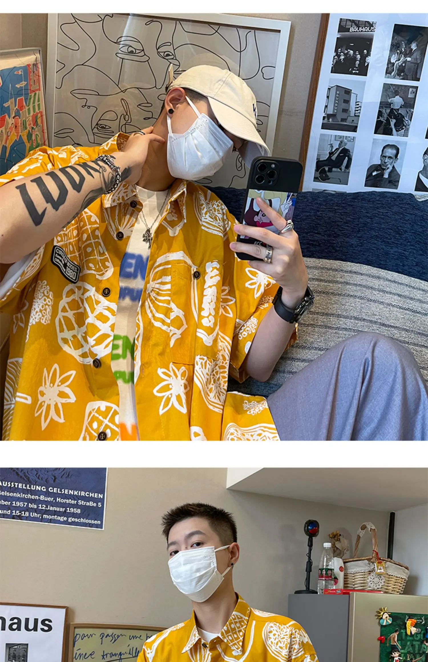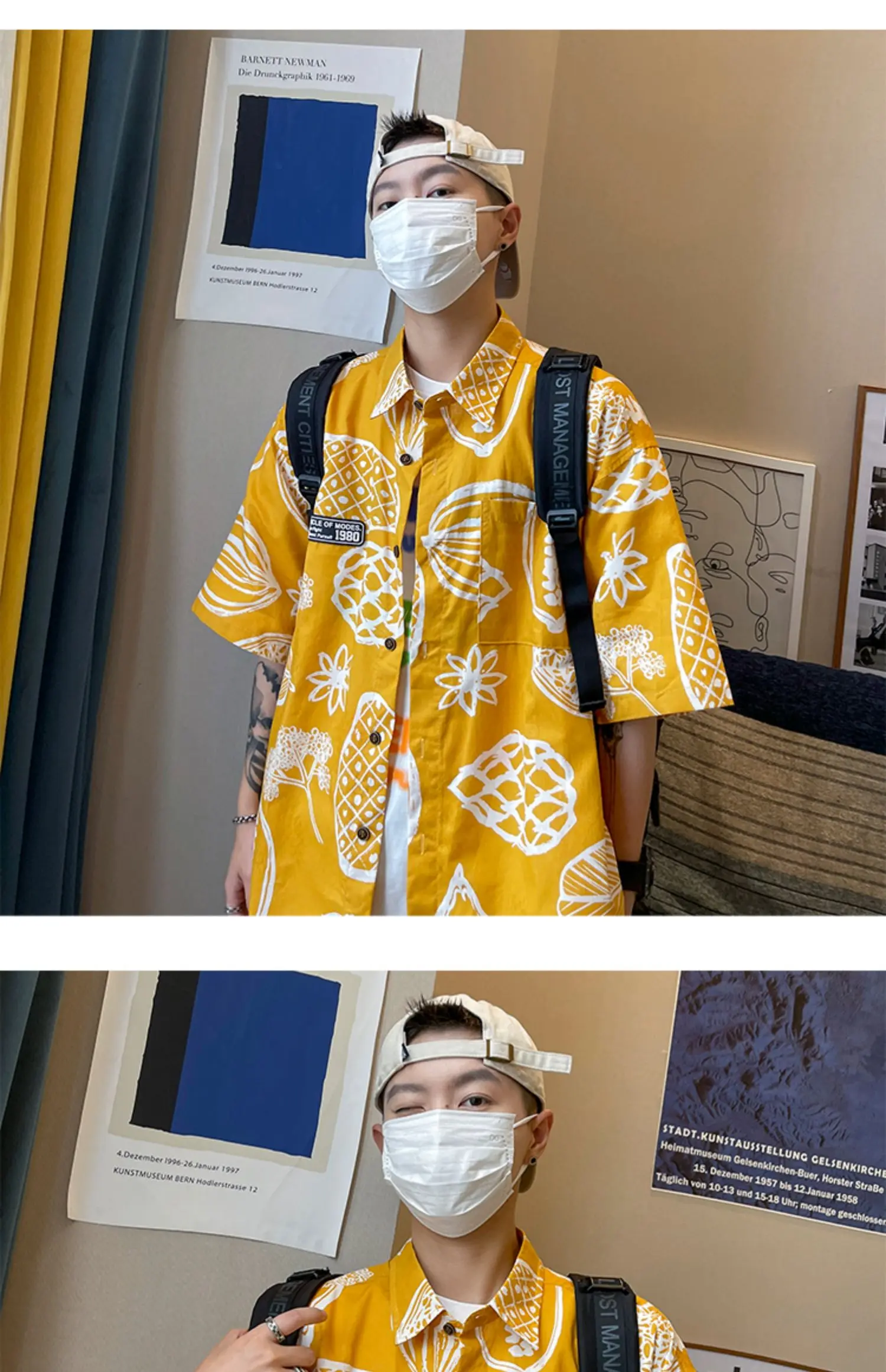 Advbridge Print Shirts Men Fashion Streetwear Handsome Summer Half Sleeve Turn-down Collar Korean Style Teenagers Popular Youthful Hipster
