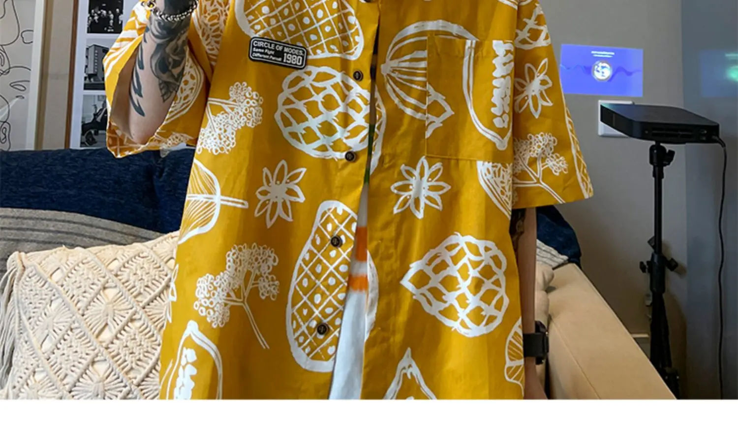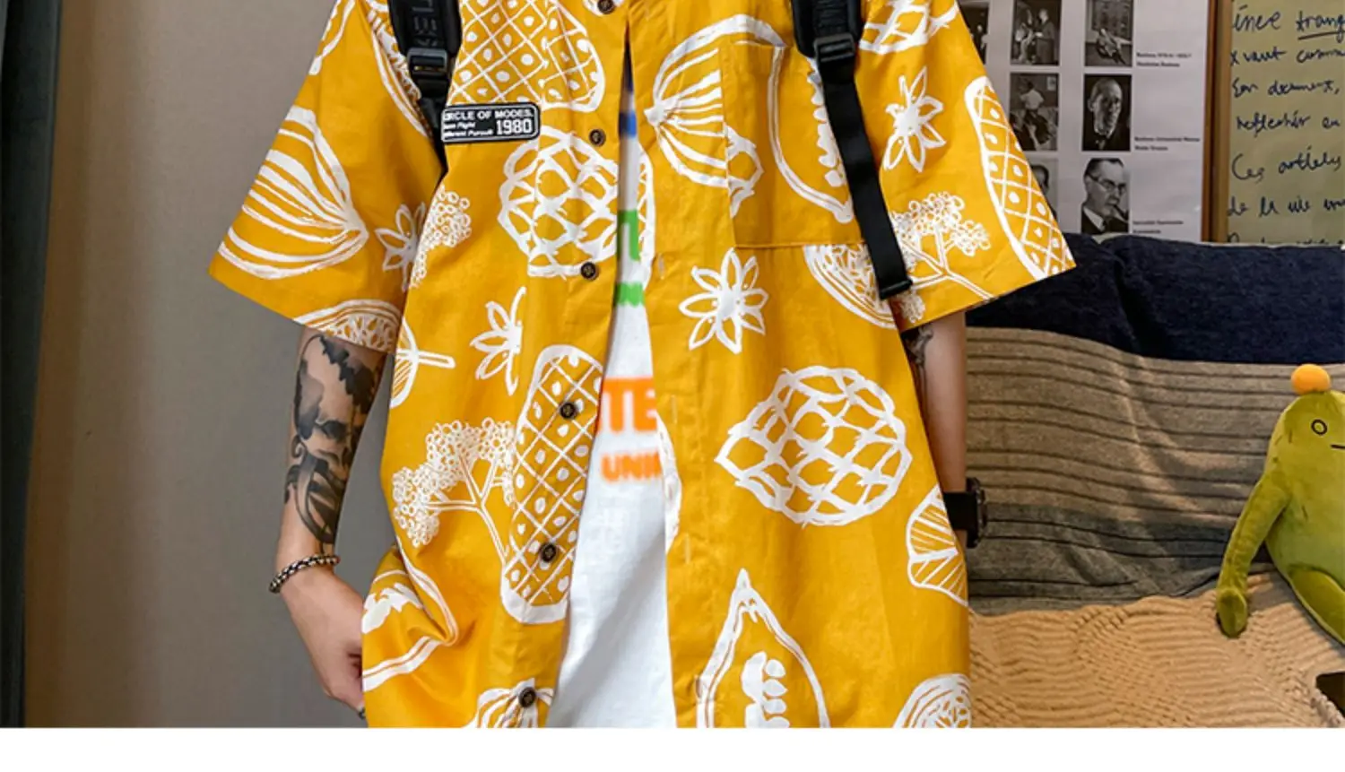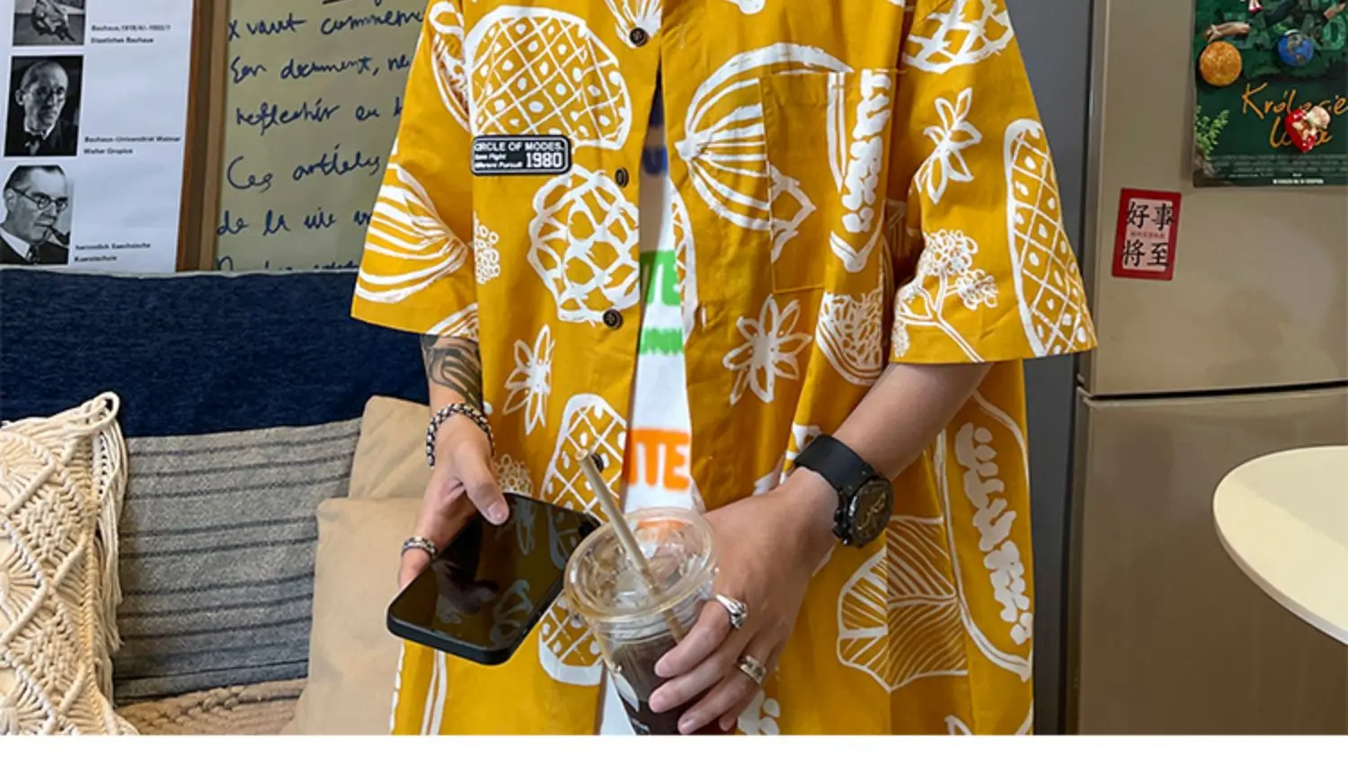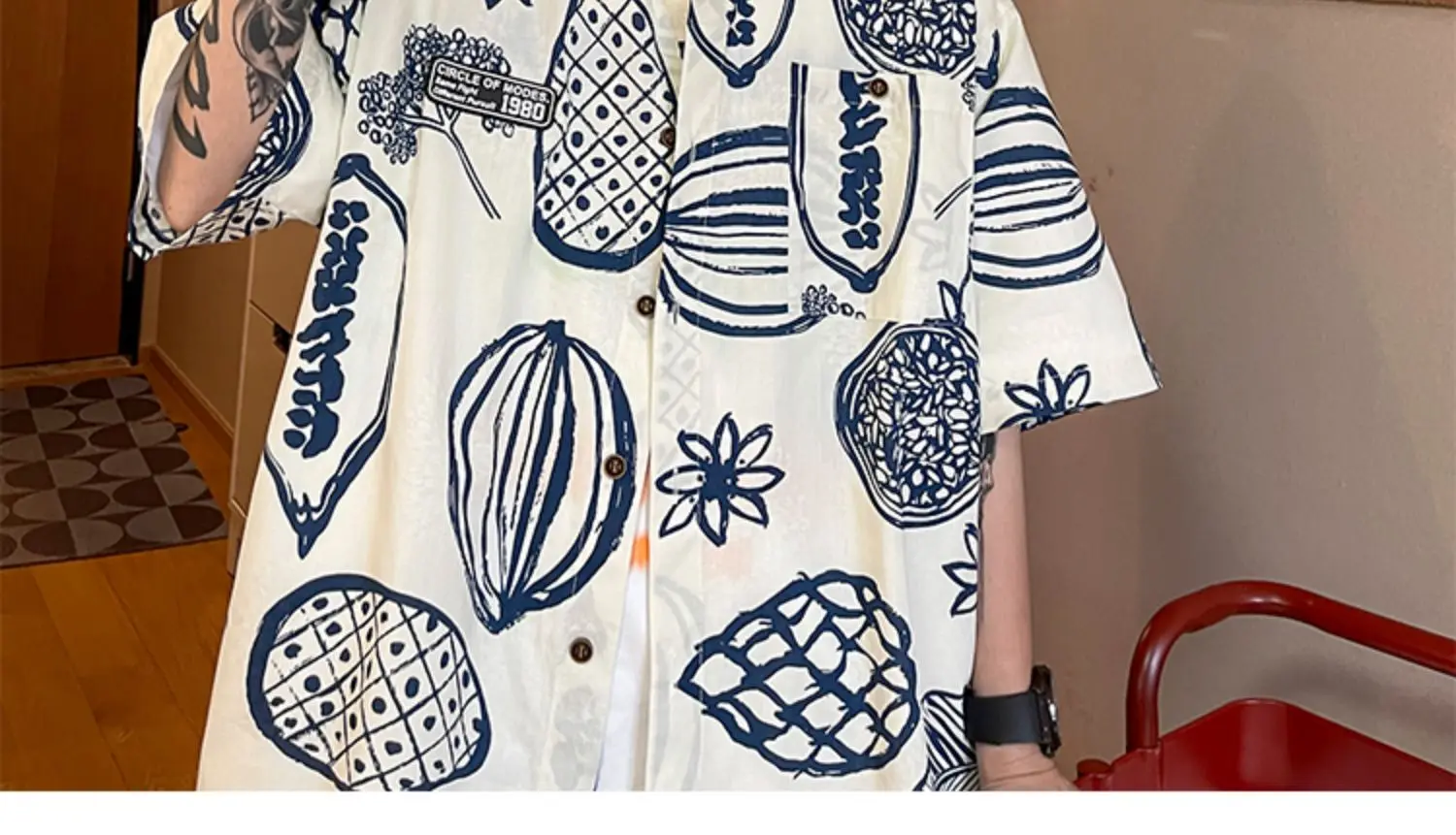 Advbridge Print Shirts Men Fashion Streetwear Handsome Summer Half Sleeve Turn-down Collar Korean Style Teenagers Popular Youthful Hipster