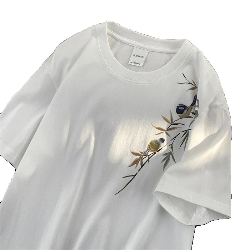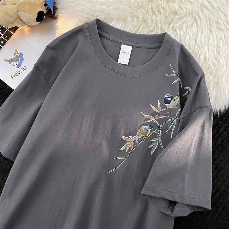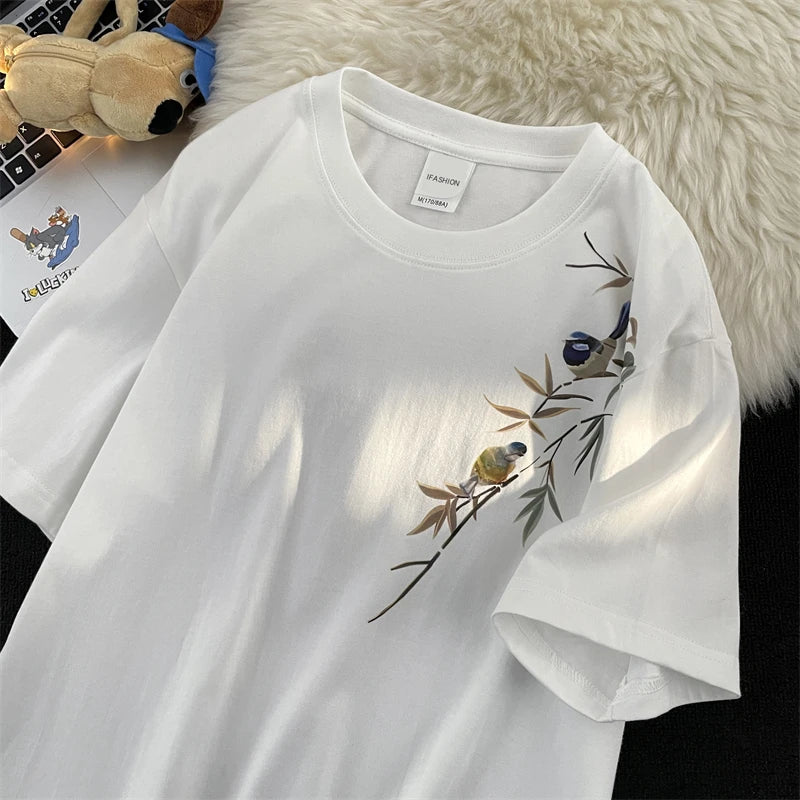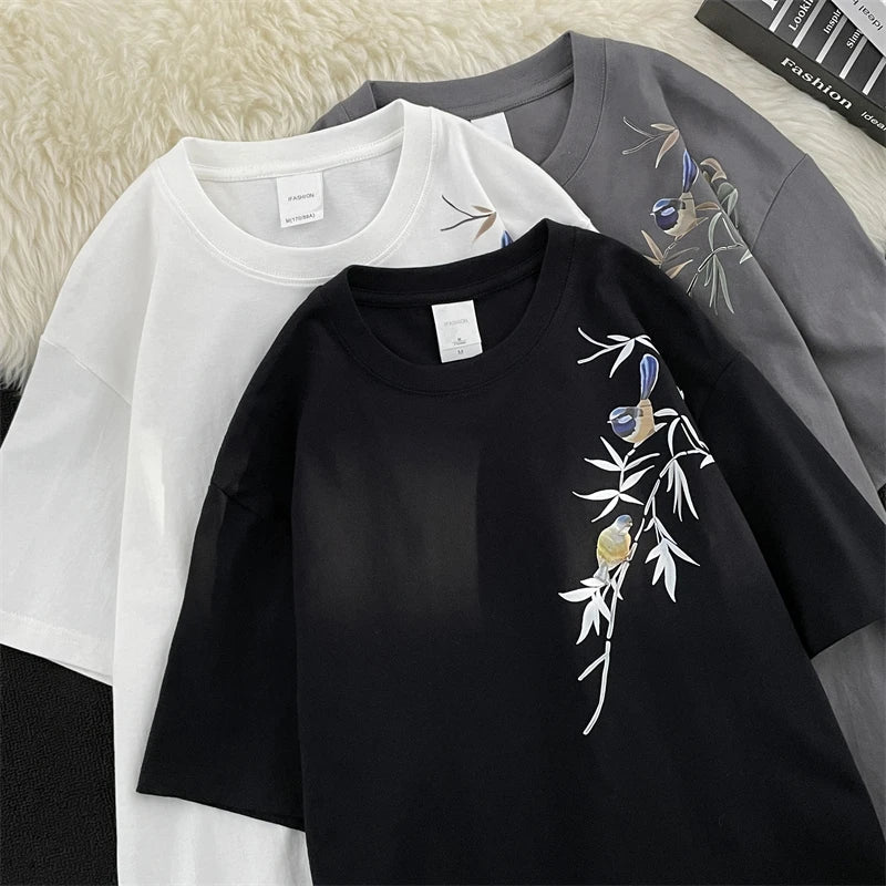 ADVBRIDGE  -  Printed Cotton Trendy Summer Autumn Travel Mountain and River Cat Line Short Sleeve T-shirt Men Trendy Brand Clothing Q105