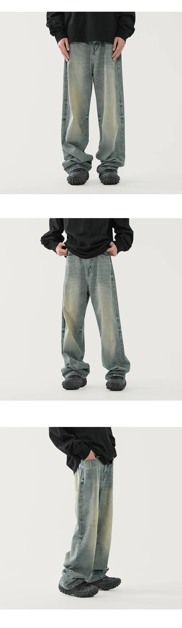 Advbridge Retro Jeans Men Autumn American Punk Style High Street Baggy Hip Hop Full Length All-match Washed Nostalgic Denim Trousers New