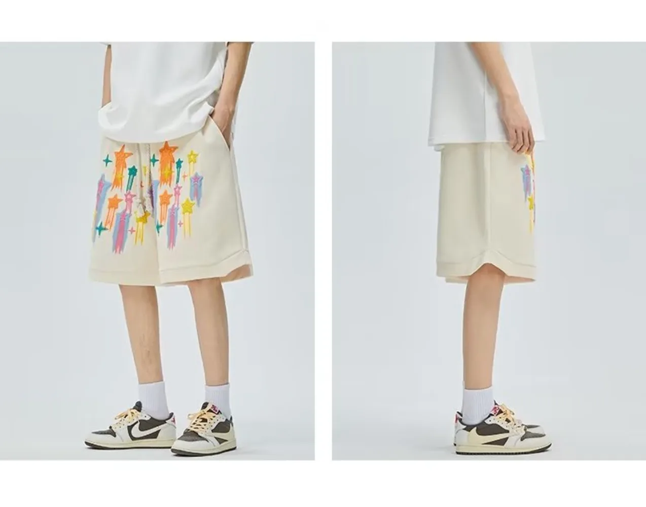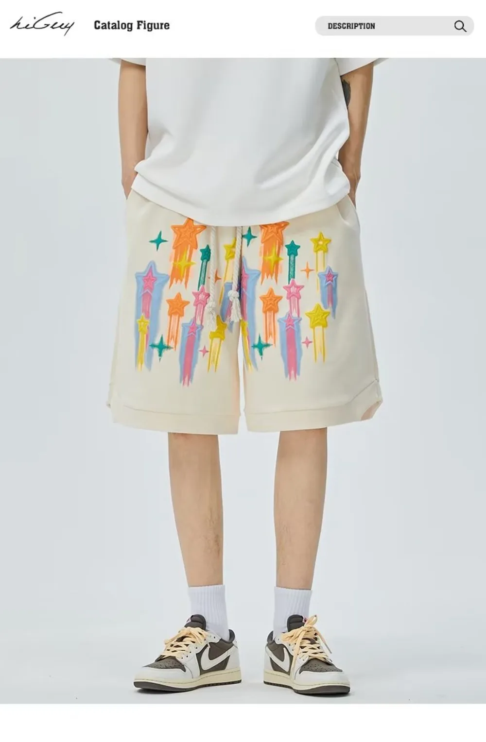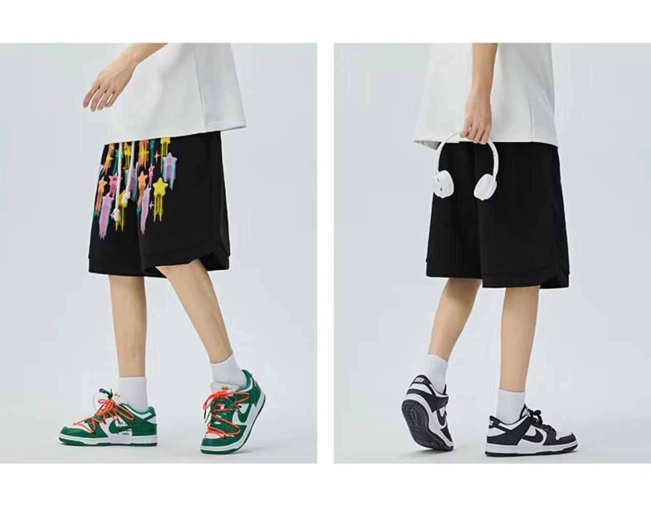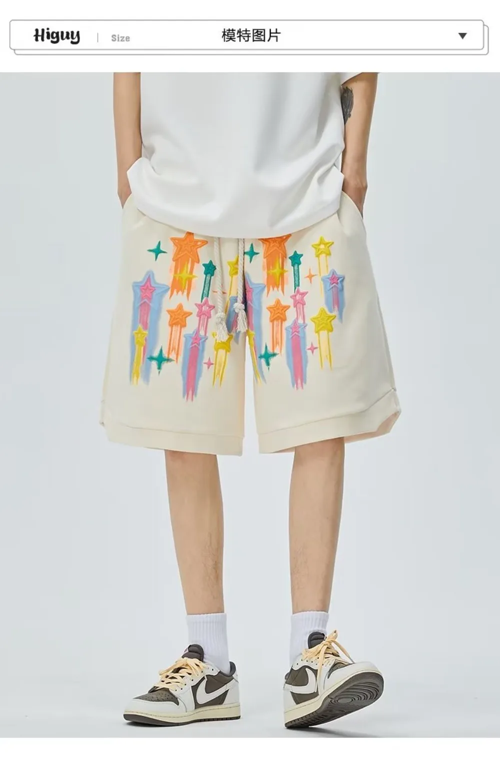 Advbridge Shorts Men Star-design Print American Style Baggy All-match Summer High Street Hip Hop Harajuku Knee Length Hipster College New
