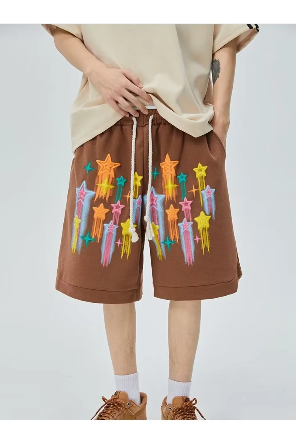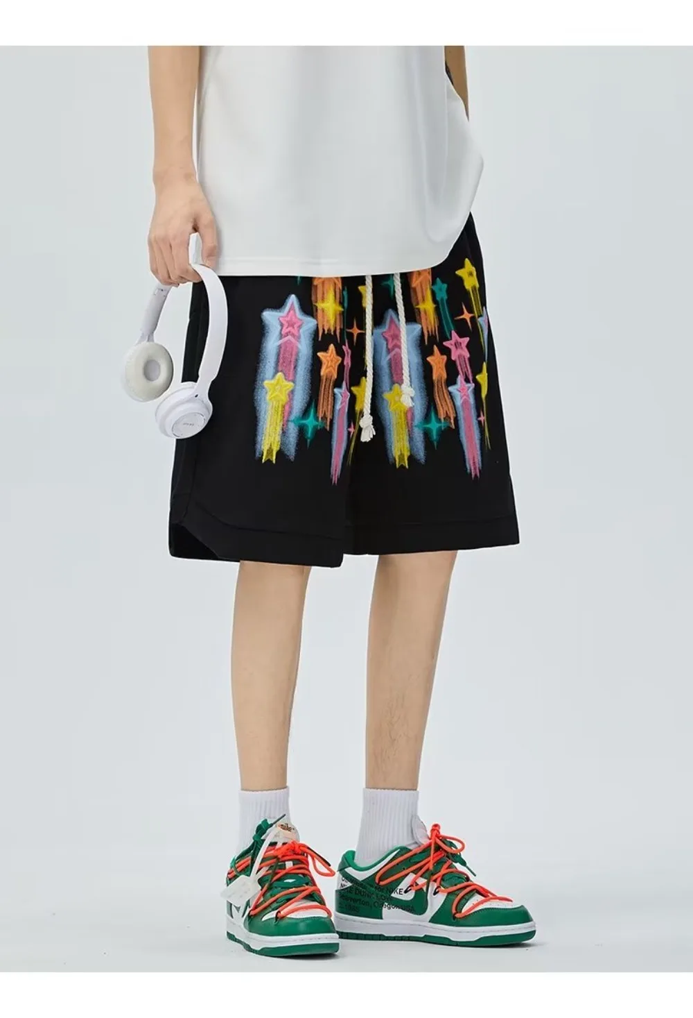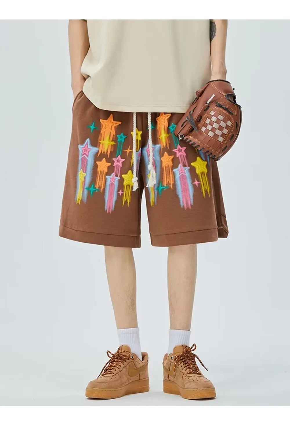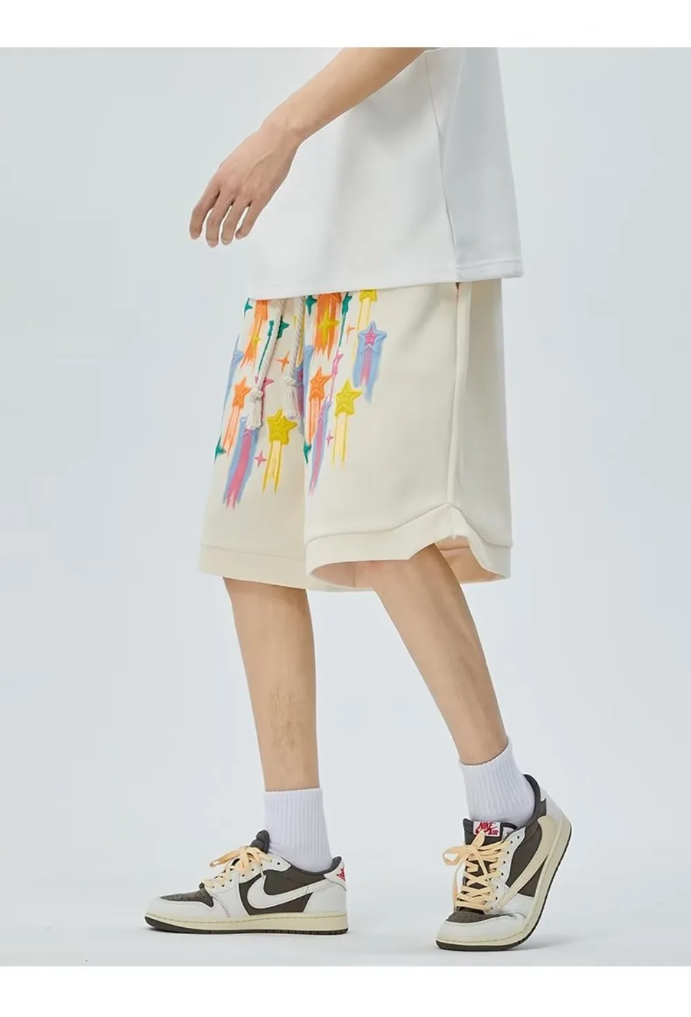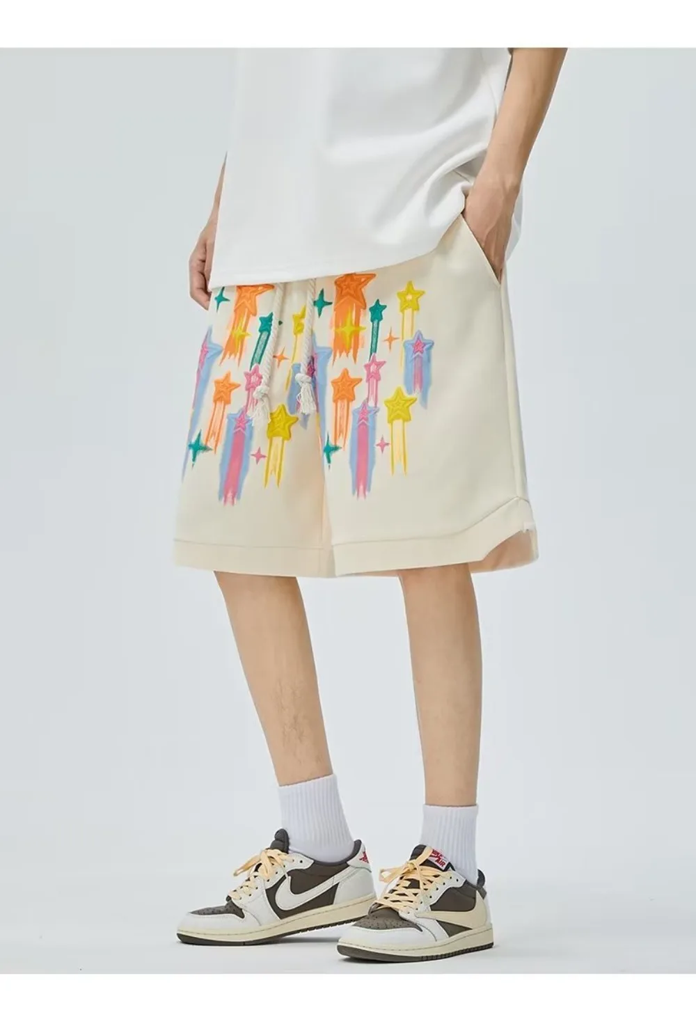 Advbridge Shorts Men Star-design Print American Style Baggy All-match Summer High Street Hip Hop Harajuku Knee Length Hipster College New