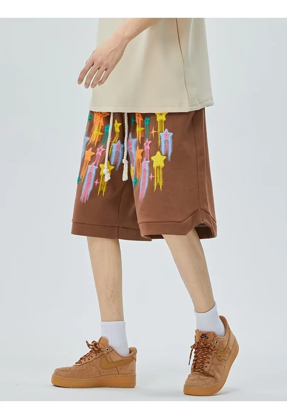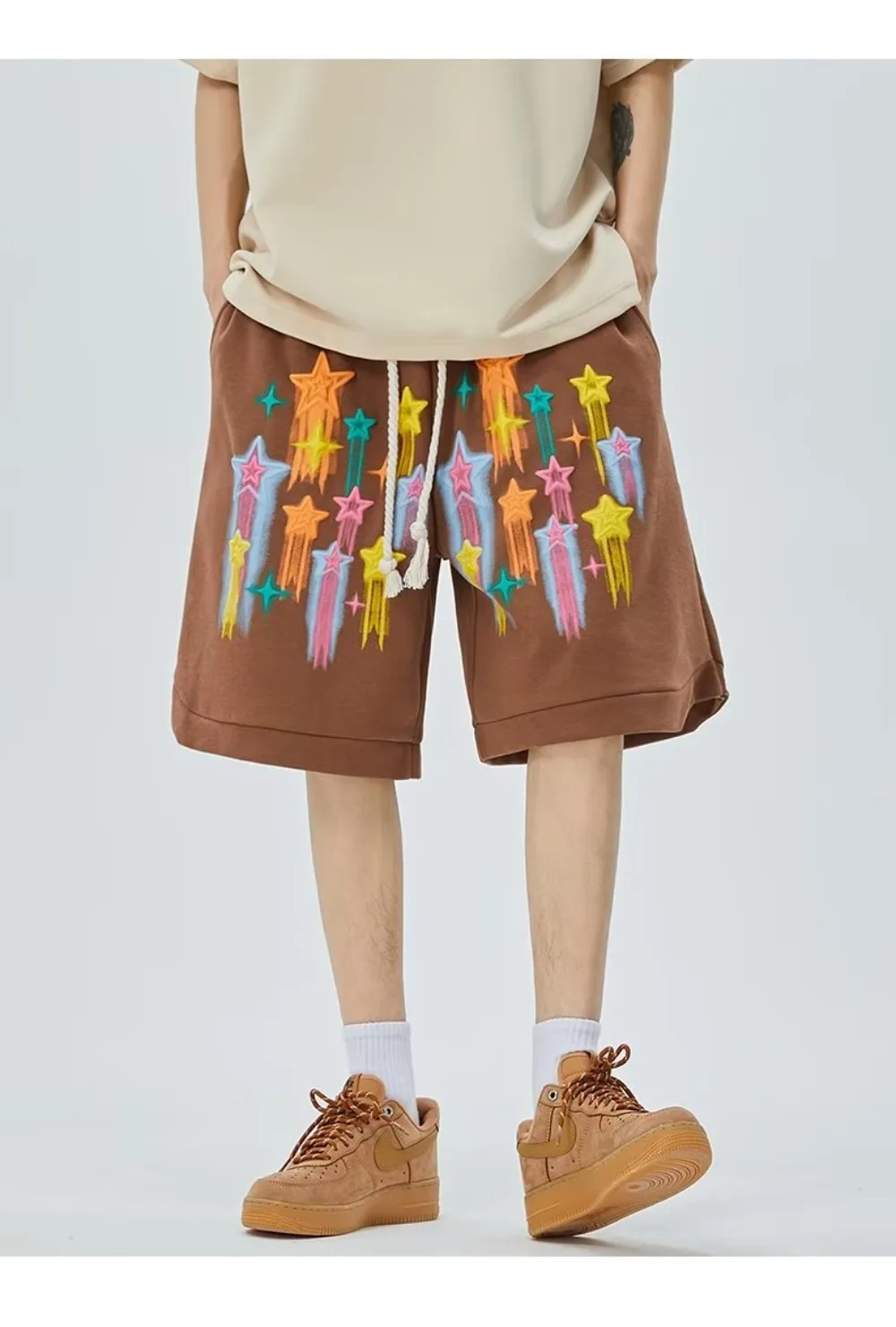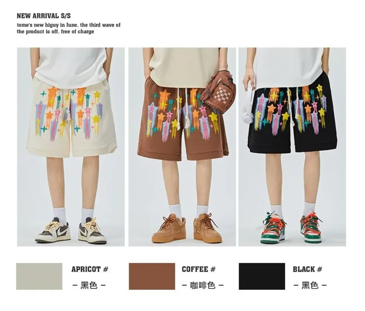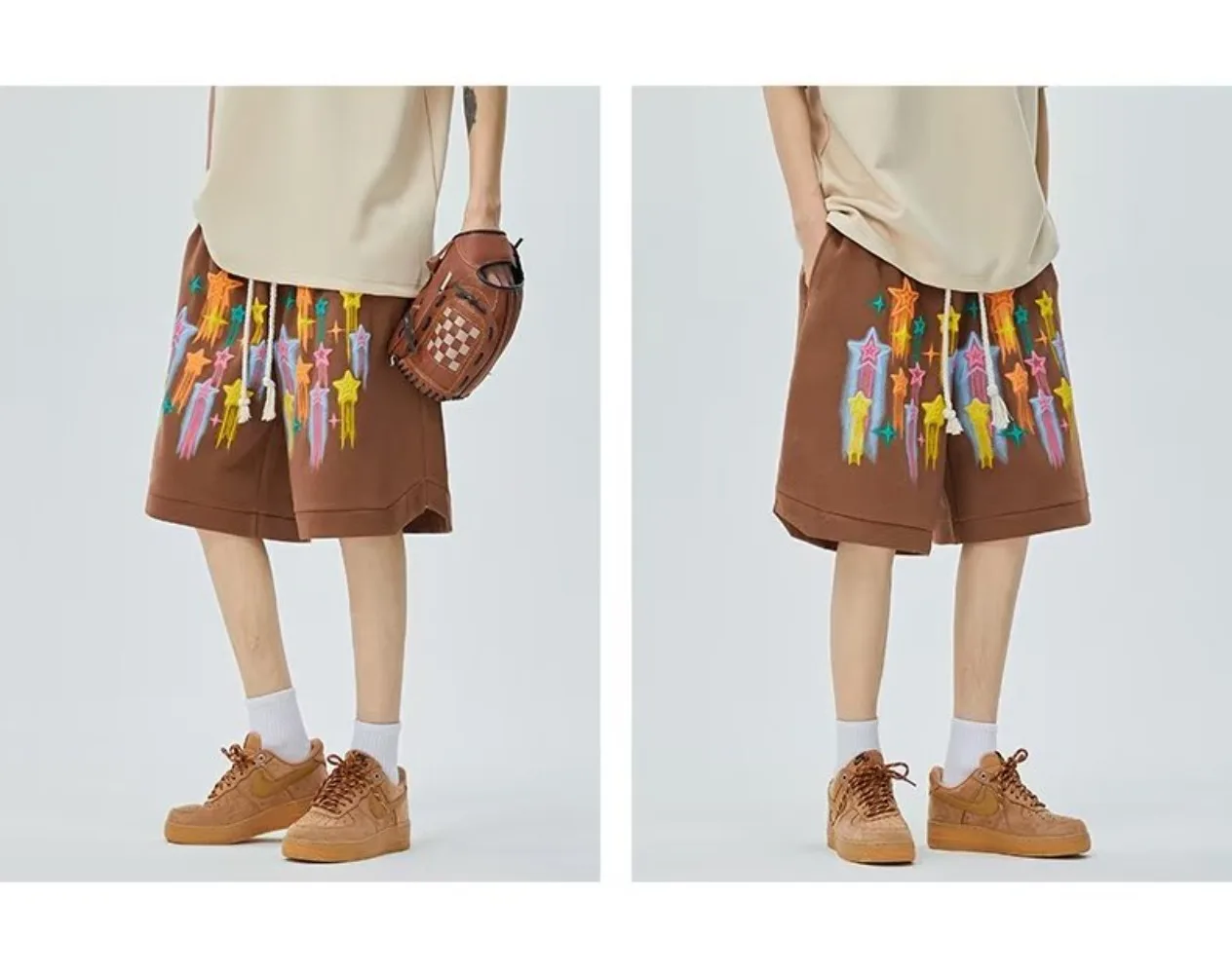 Advbridge Shorts Men Star-design Print American Style Baggy All-match Summer High Street Hip Hop Harajuku Knee Length Hipster College New