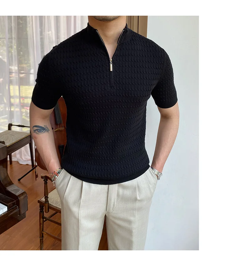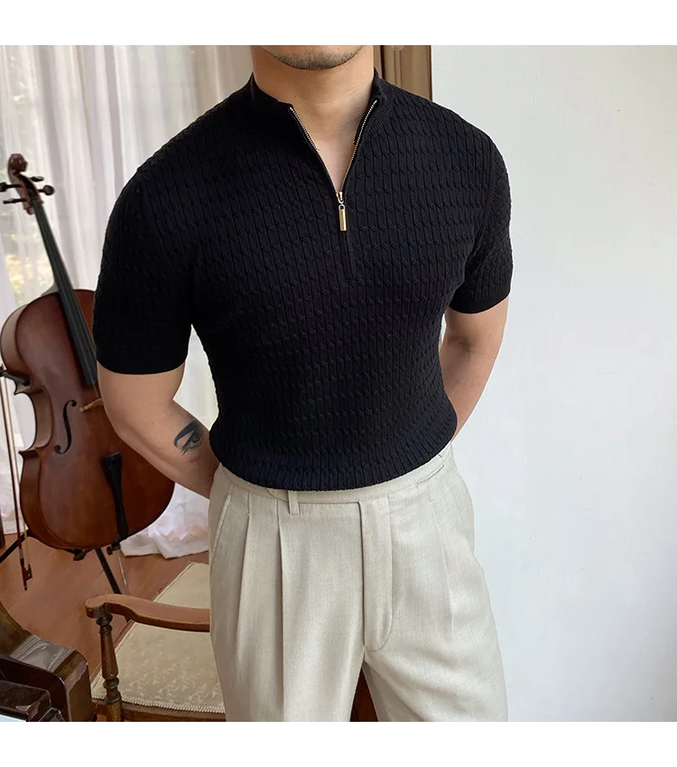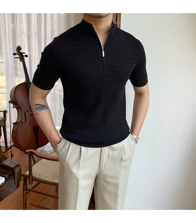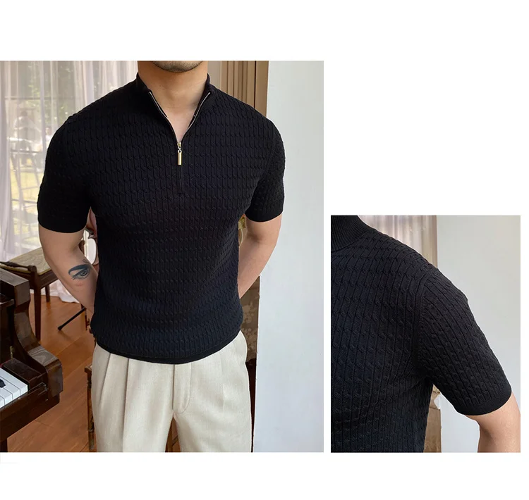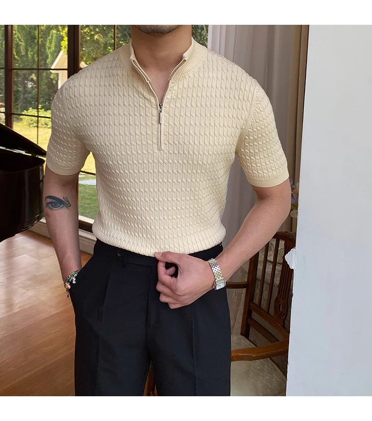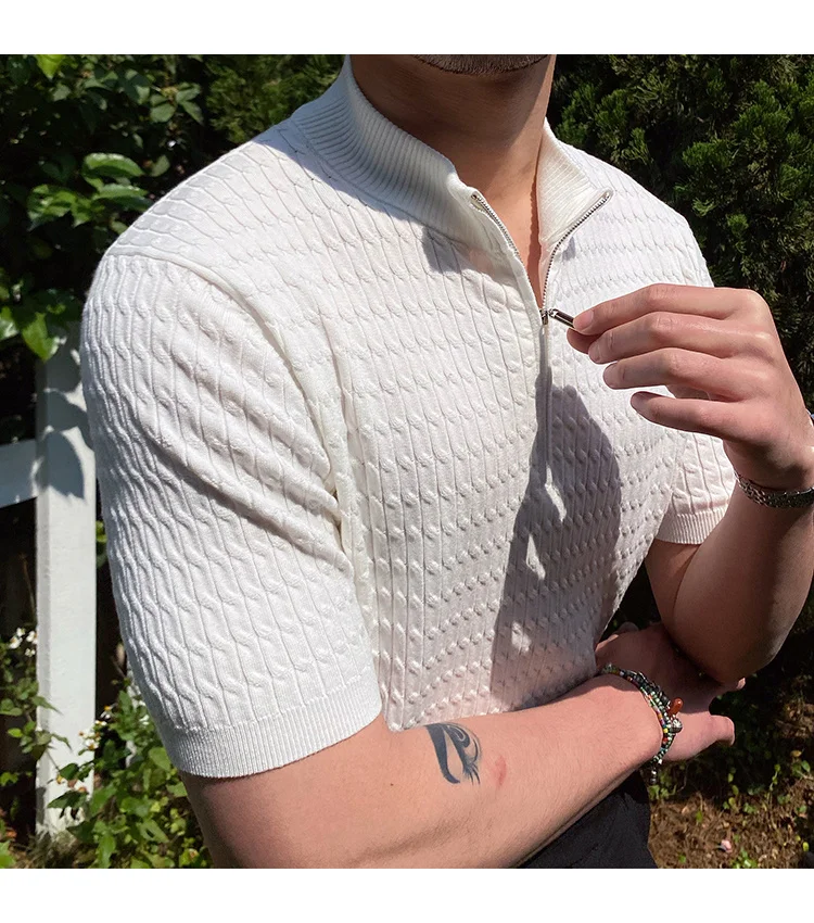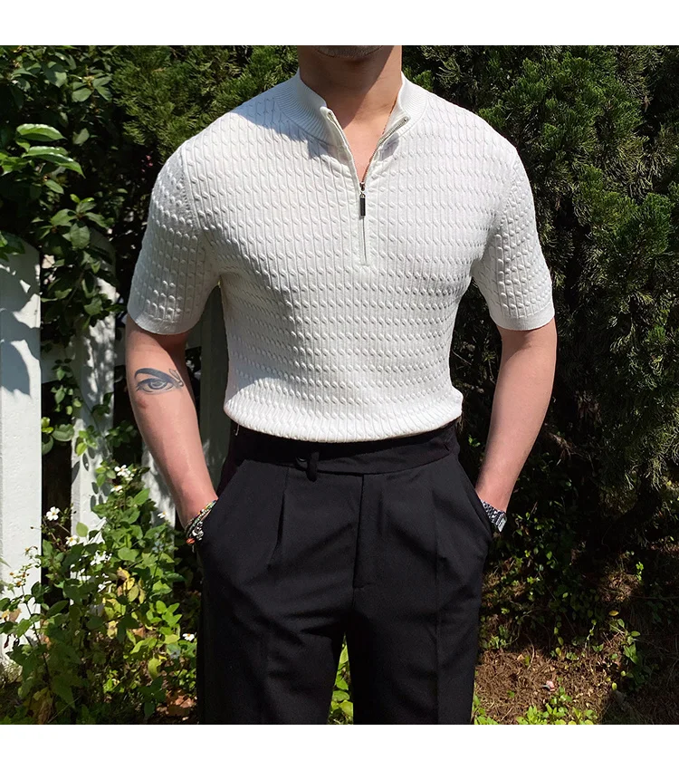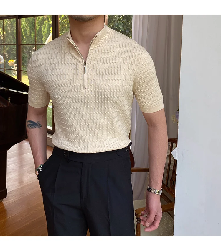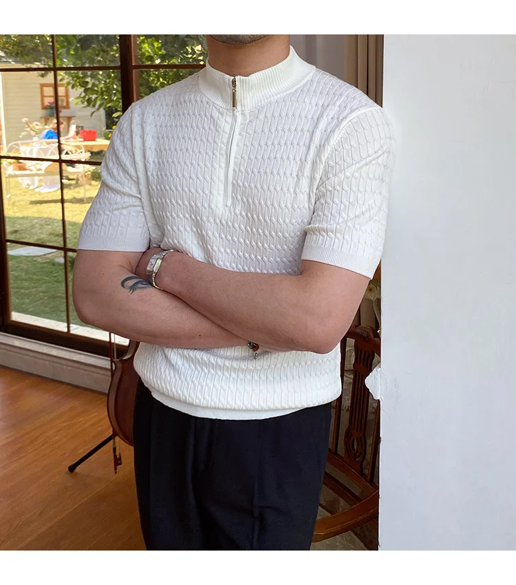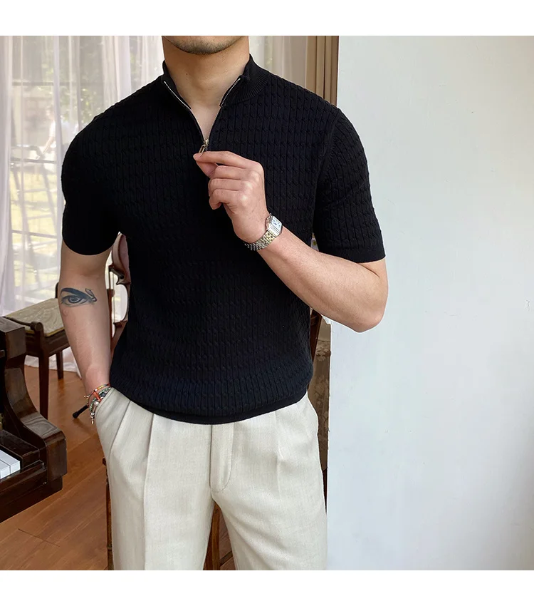 Advbridge Solid Color Business Leisure Herren Pullover 2023 Spring Knitted Short Sleeved Zipper Men's Slim Pull Homme Fashion T Shirts