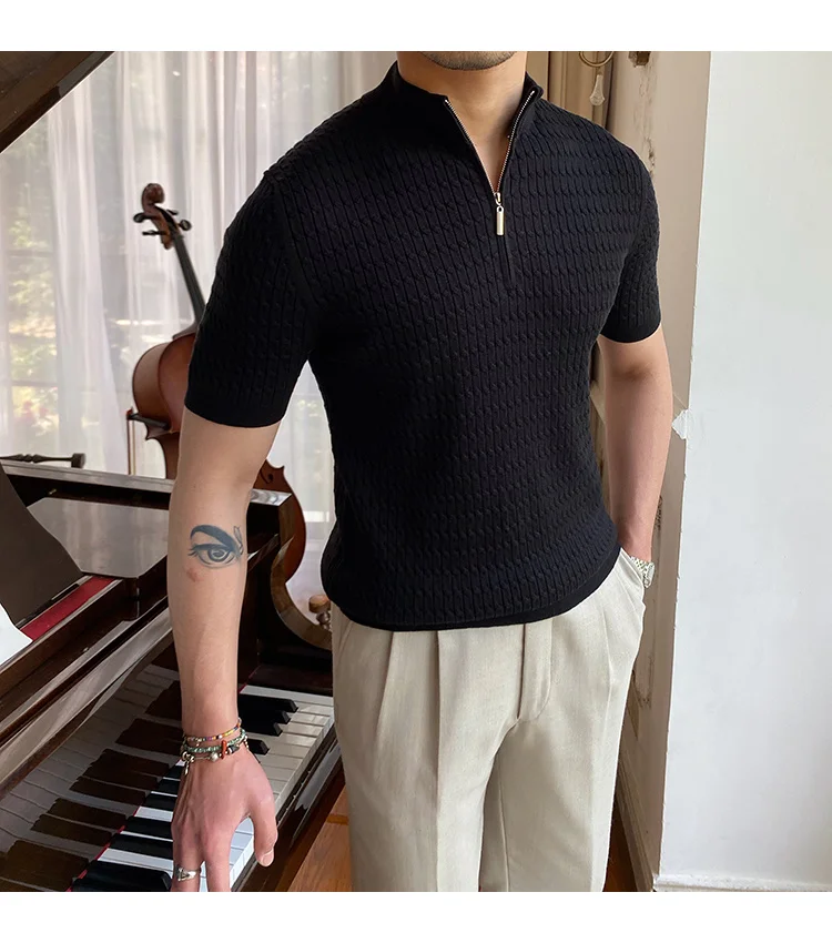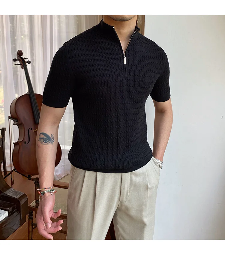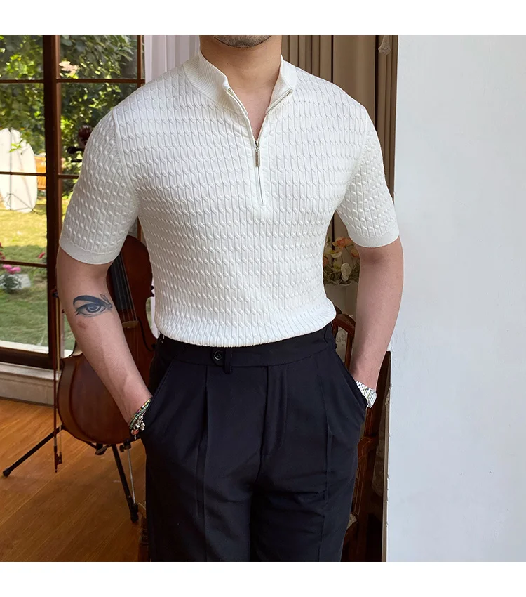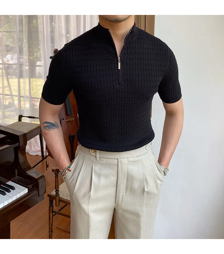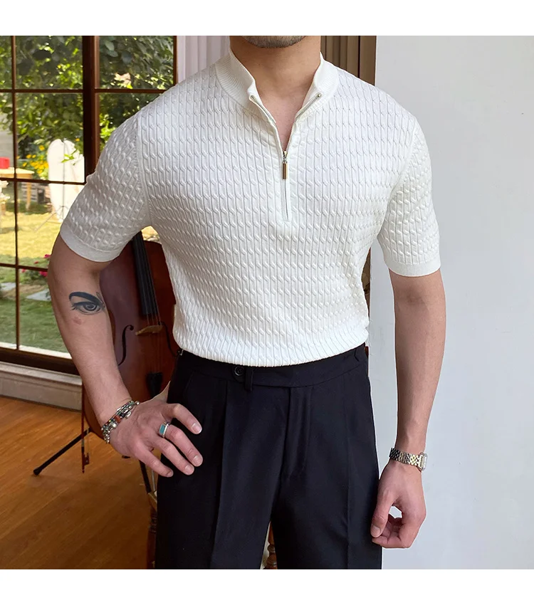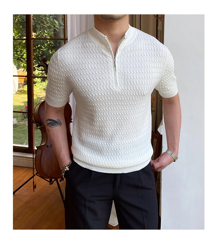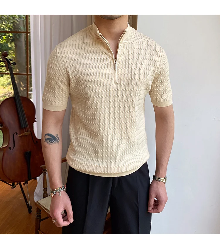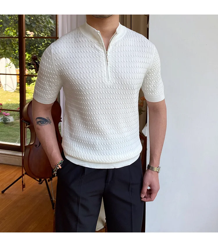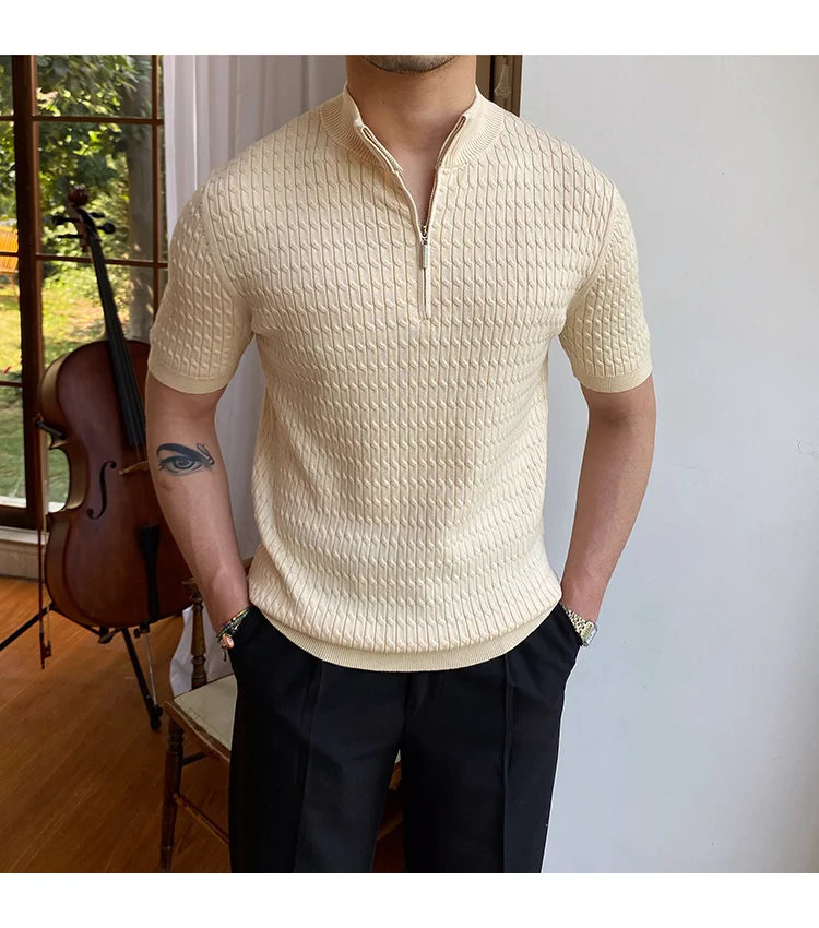 Advbridge Solid Color Business Leisure Herren Pullover 2023 Spring Knitted Short Sleeved Zipper Men's Slim Pull Homme Fashion T Shirts