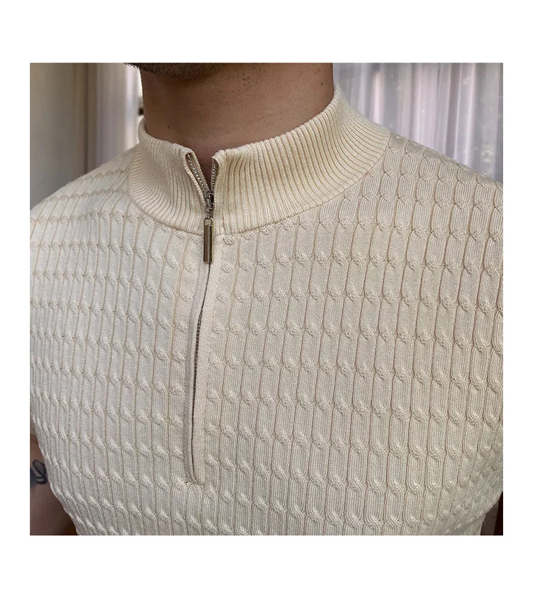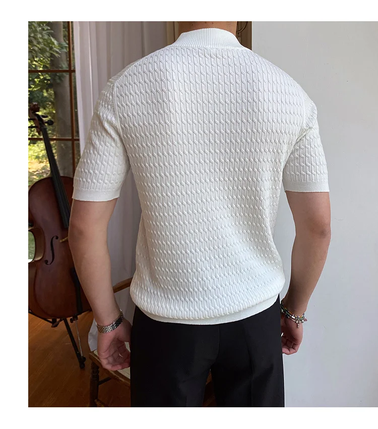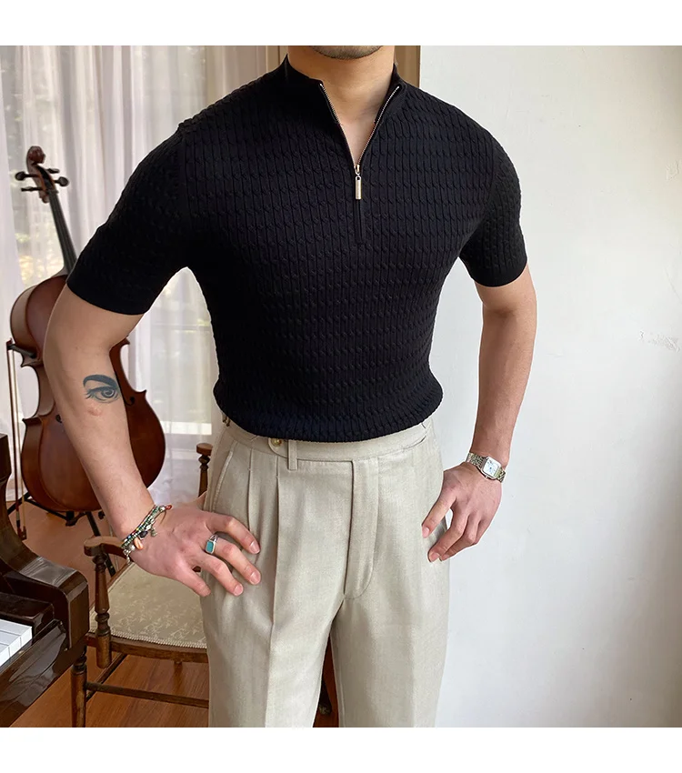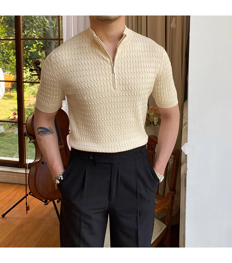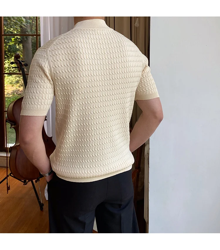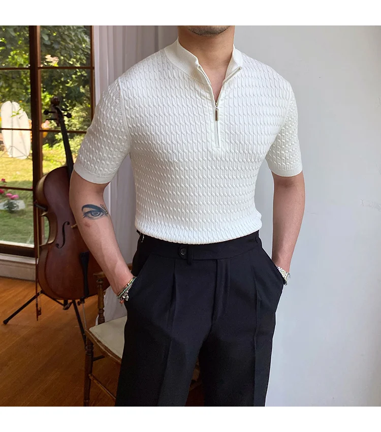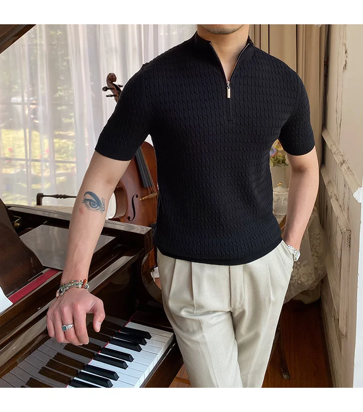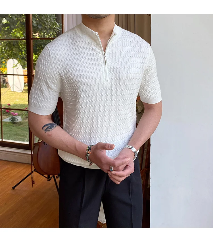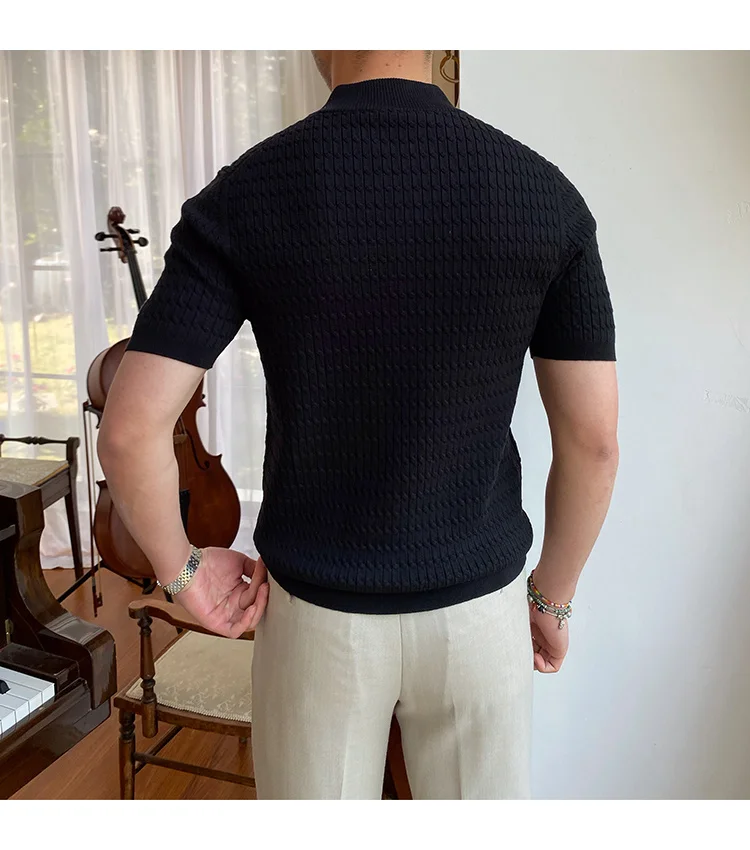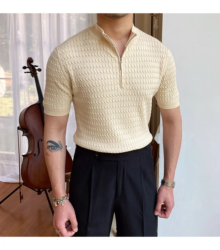 Advbridge Solid Color Business Leisure Herren Pullover 2023 Spring Knitted Short Sleeved Zipper Men's Slim Pull Homme Fashion T Shirts