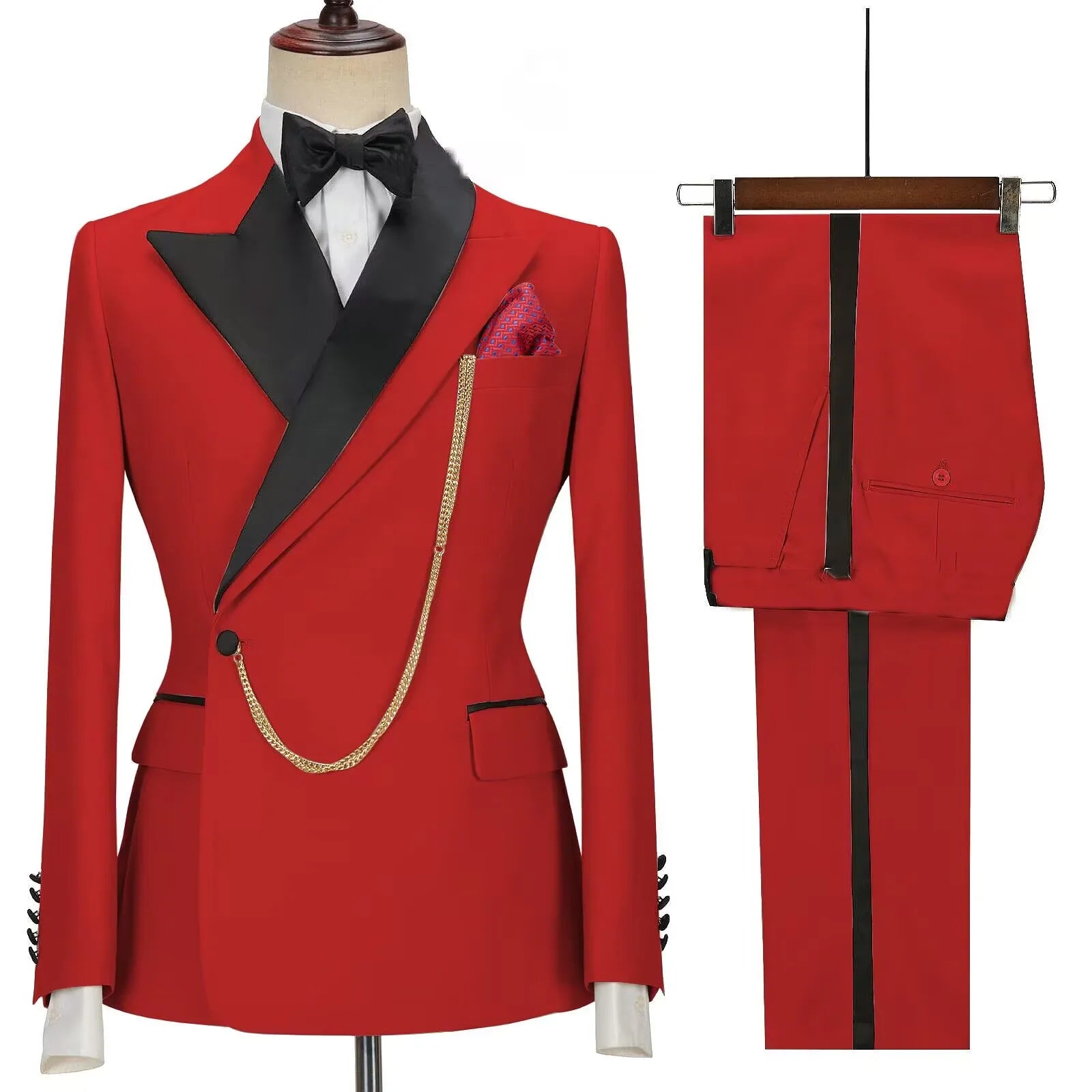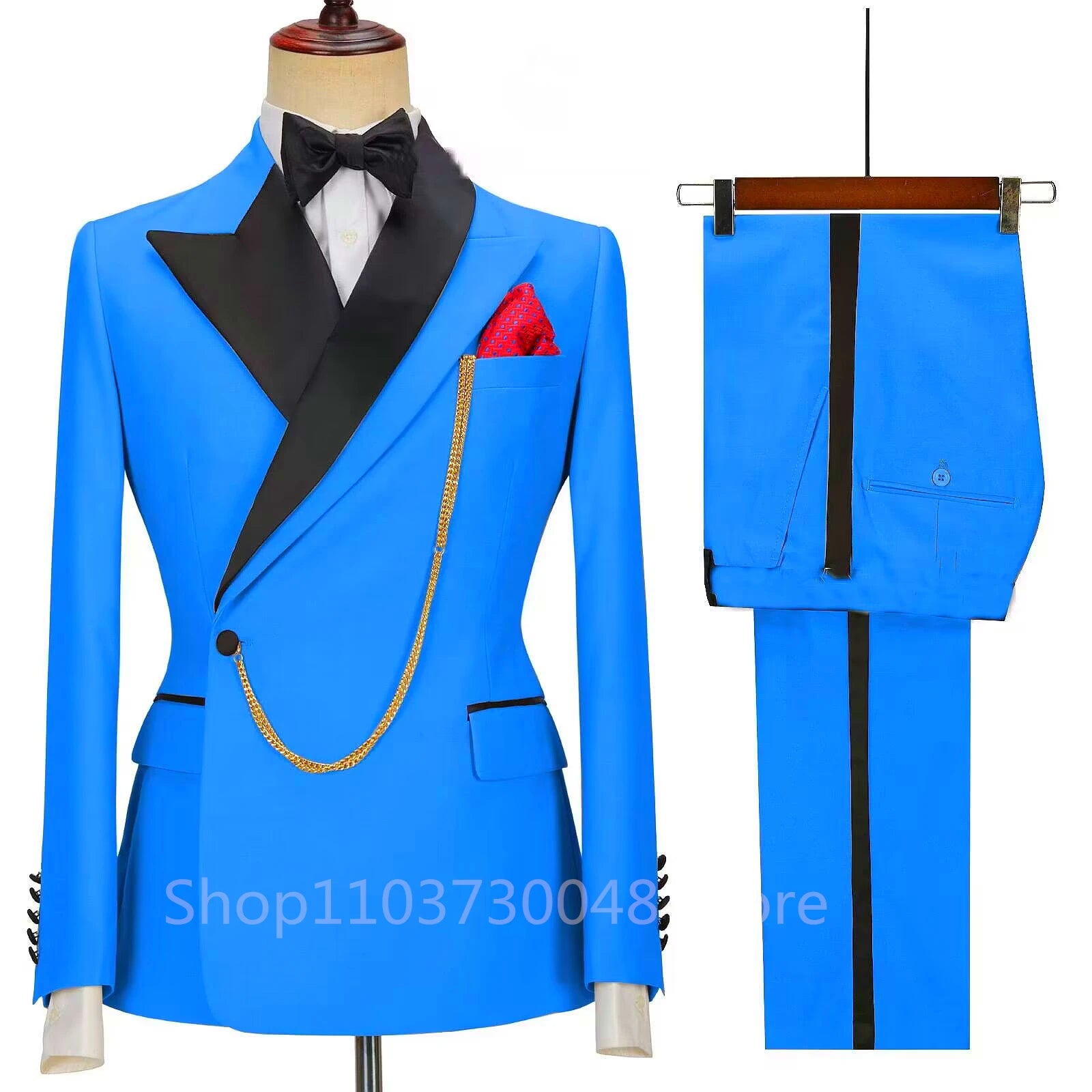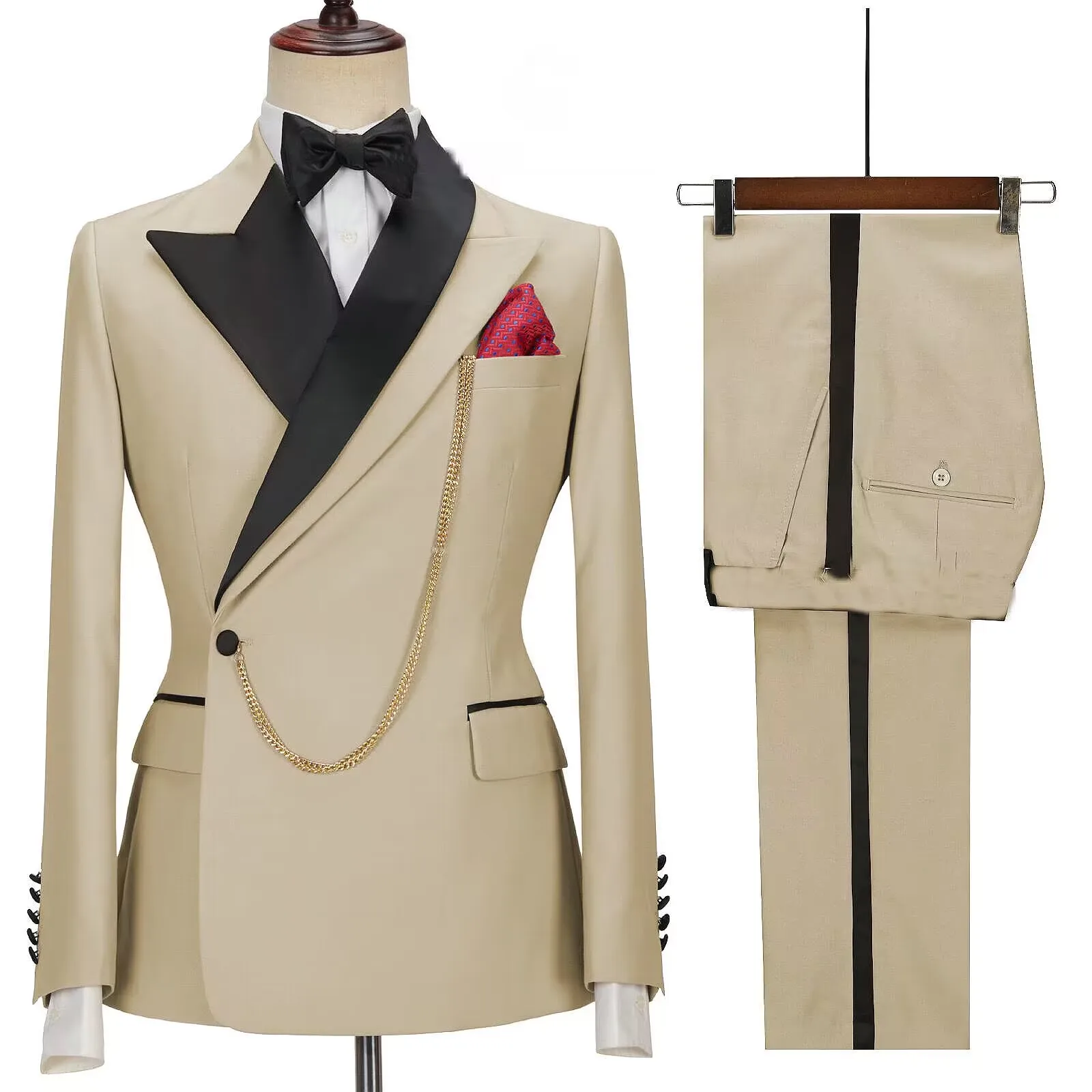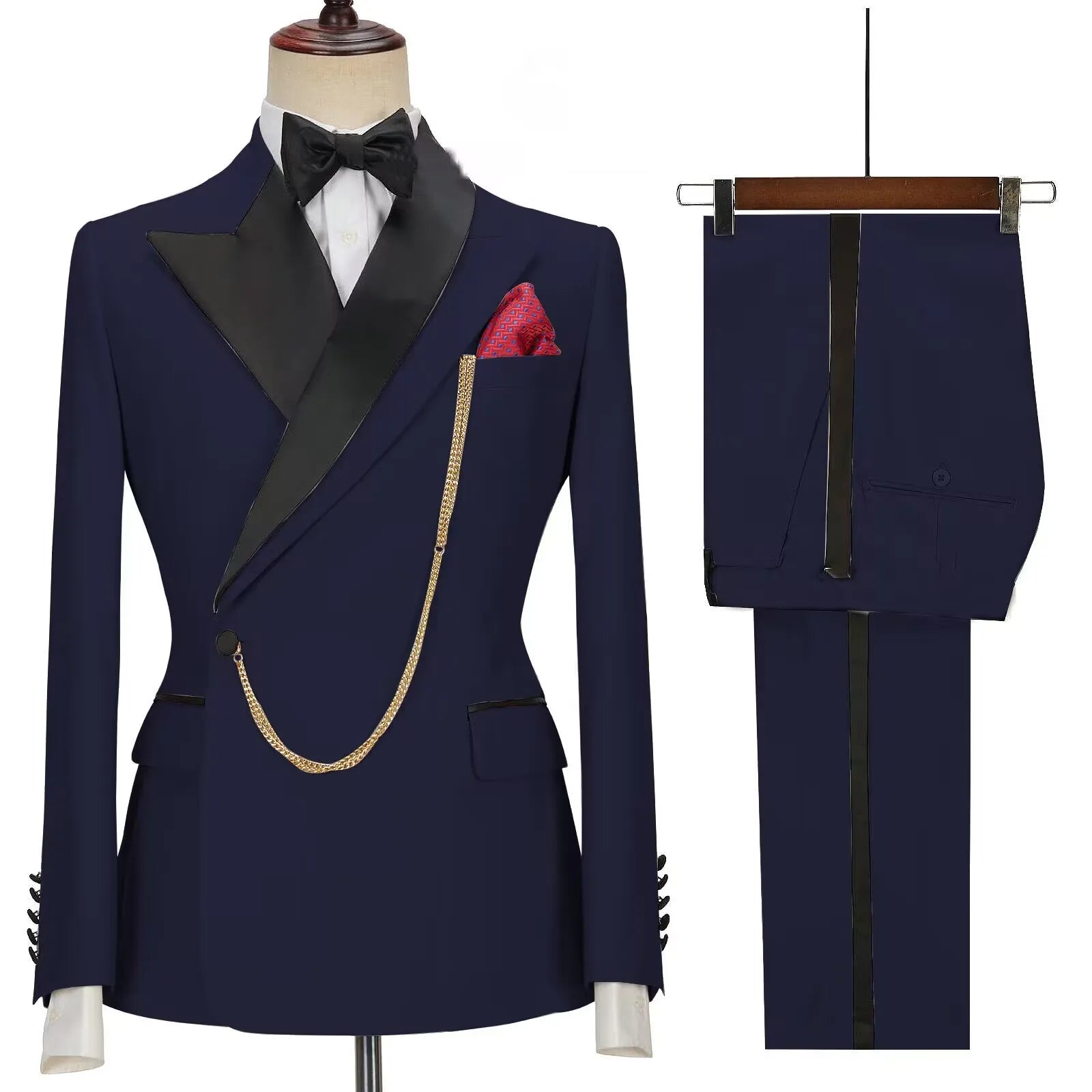 Advbridge Solid Men's 2 Pieces Suit Double Breasted Jacket and Trousers Dinner Party Wedding Groom Tuxedos Slim Fit Formal Business Suits