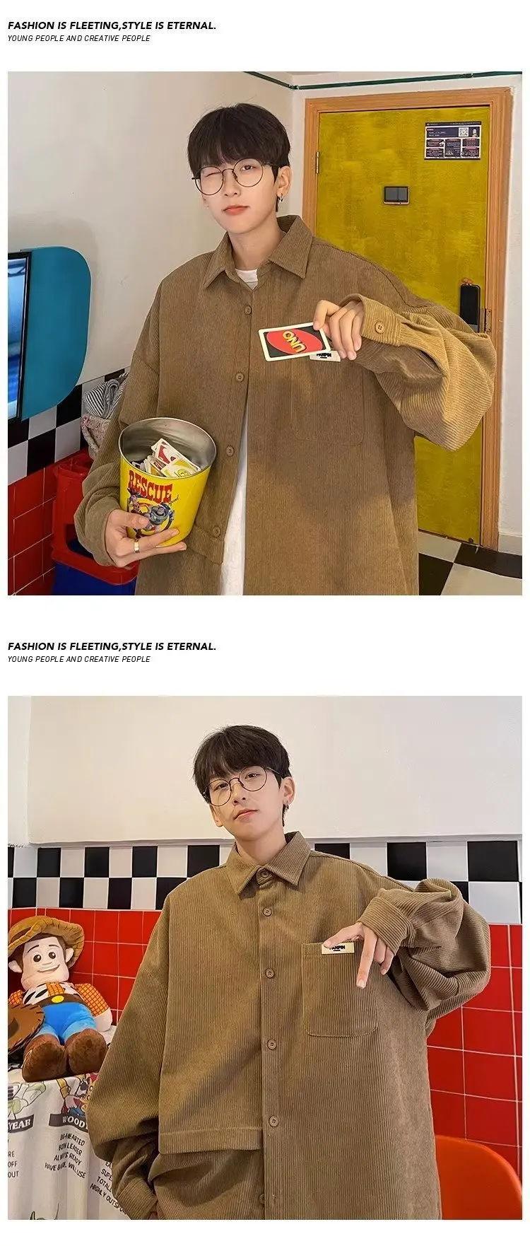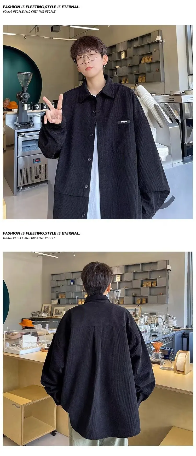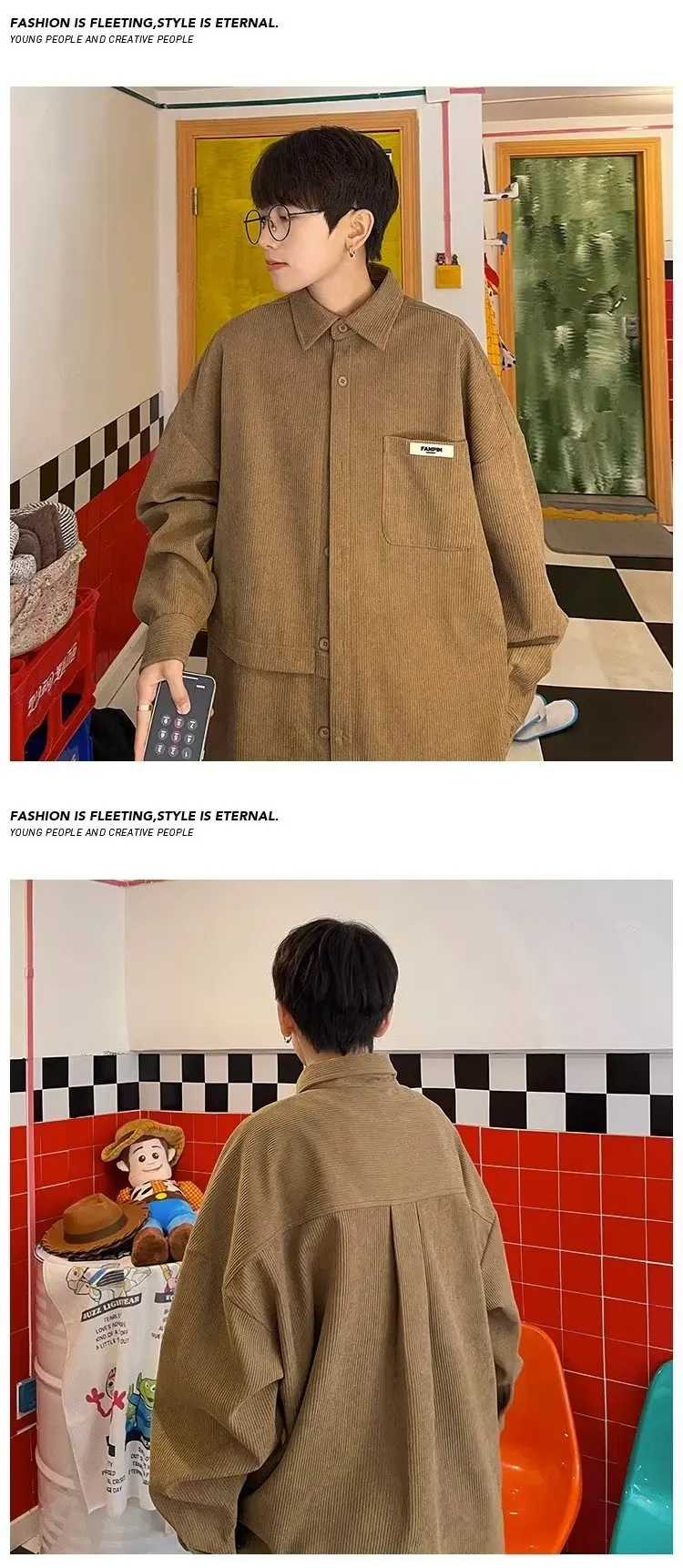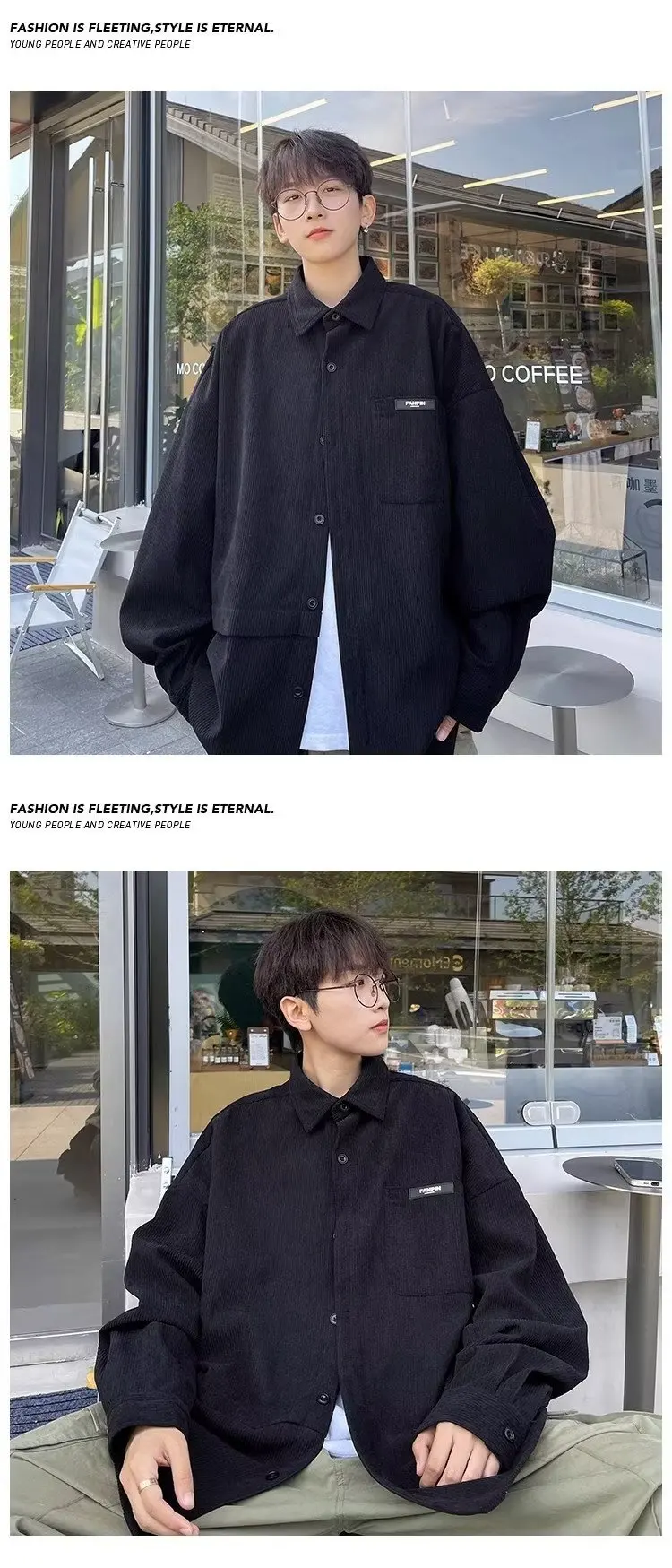 Advbridge Solid Shirts Men Daily Teenagers Cozy All-match Preppy Style Retro Japanese Lapel Long Sleeve Lace-up Harajuku Handsome