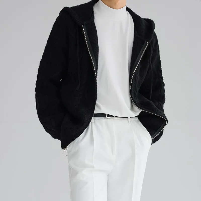 Advbridge Solid Twist Zip Sweatshirts Winter Fall Long Sleeve Knitted Cardigans Coat Fashion Hoodies Top Men Clothing New Sweater