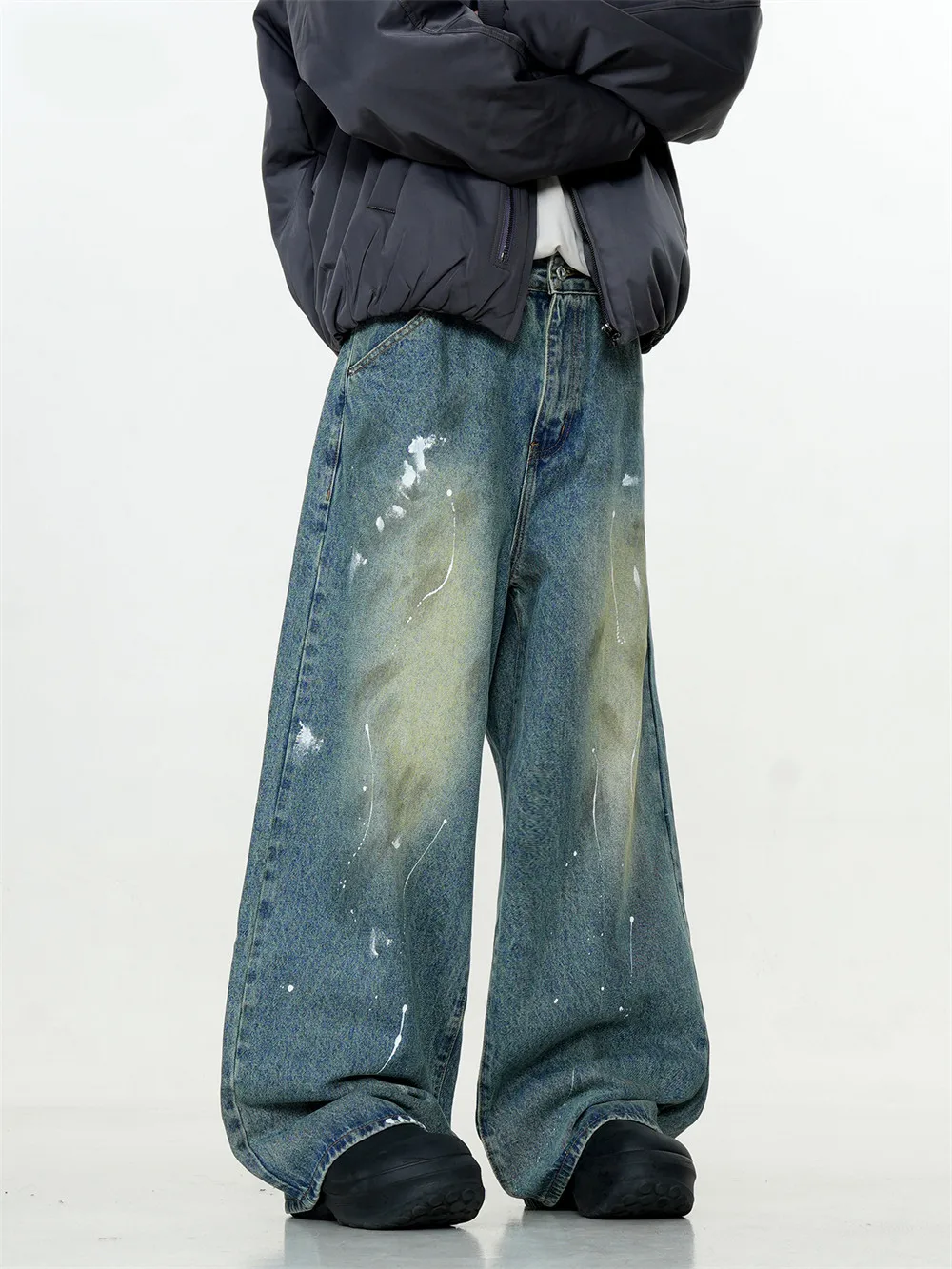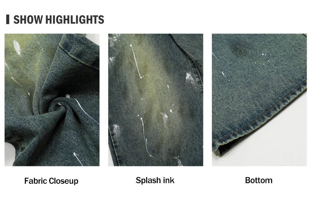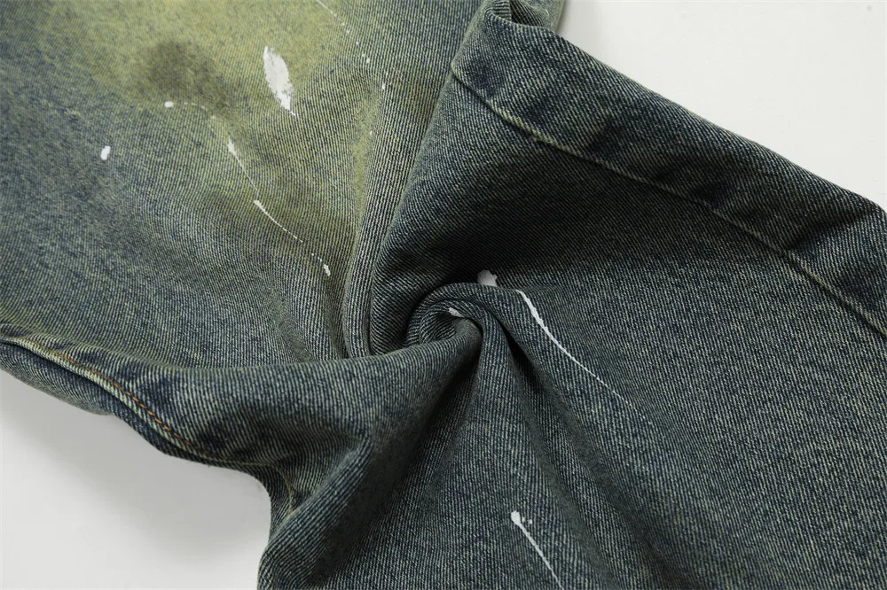 Advbridge Splash Ink Graffiti Washed Distressed Mens Retro High Street Loose Straight Wide Leg Dirty Wash Jeans Men