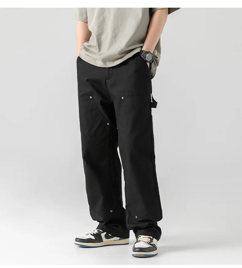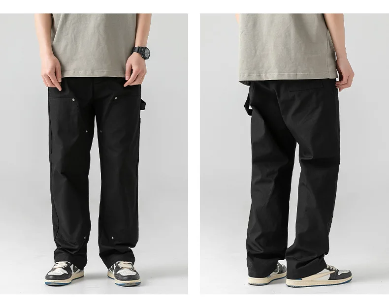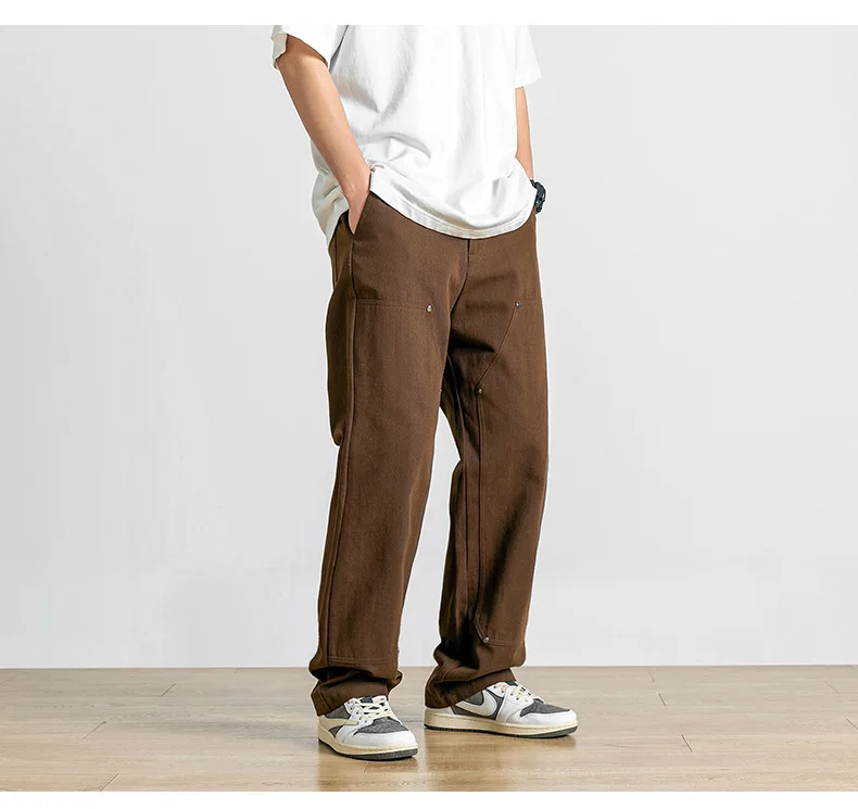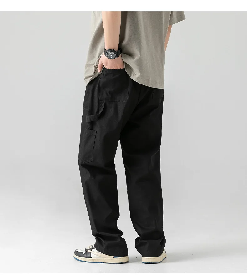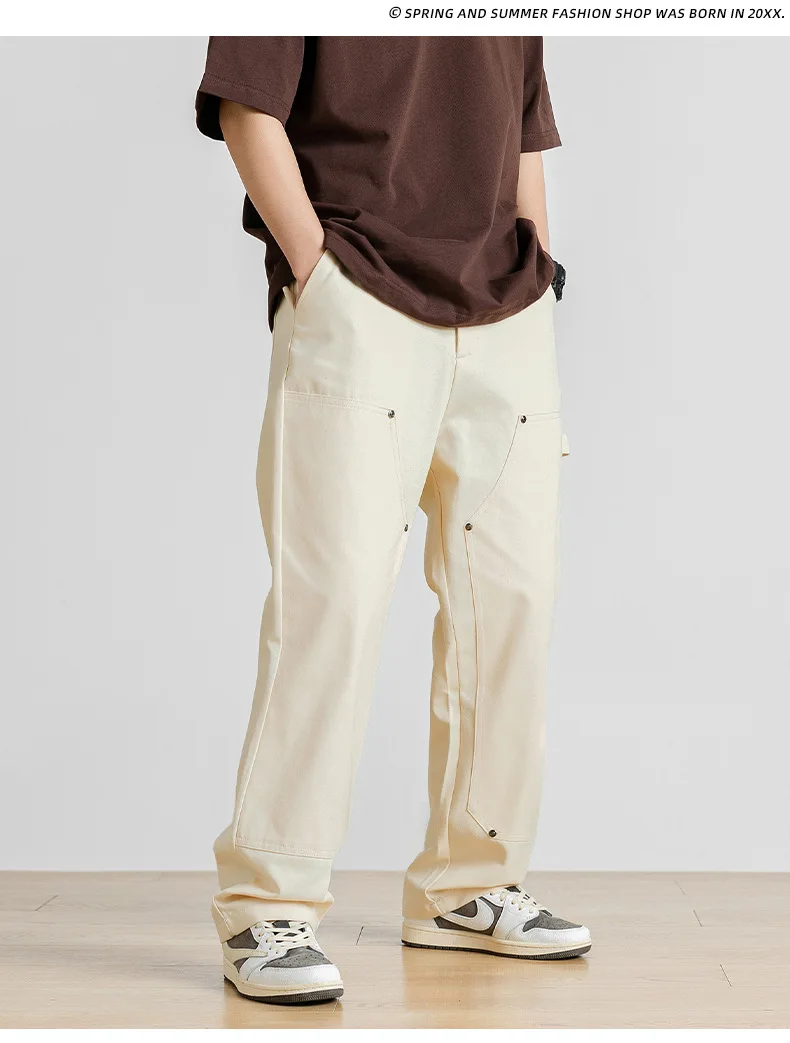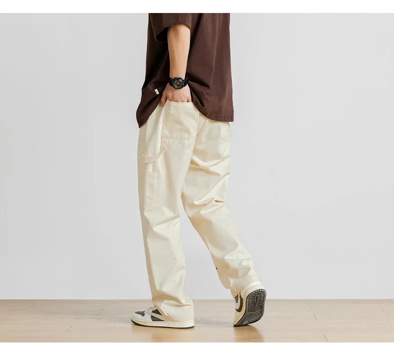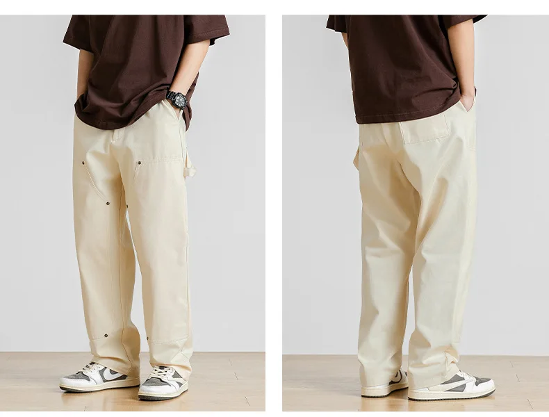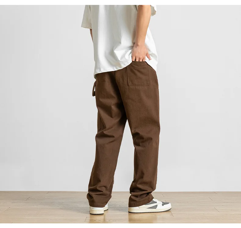 Advbridge Spring Autumn All Season Casual Soft Solid Men's Cool Boys Button Waist Pocket Safari Style Patchwork Straight Leg Pants