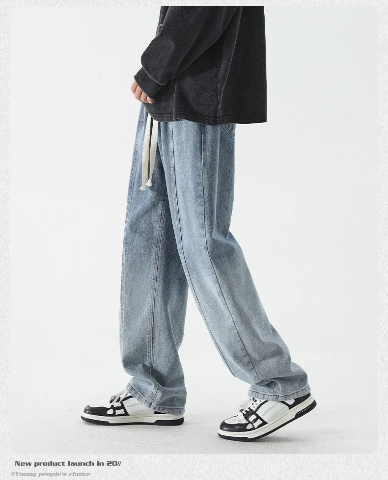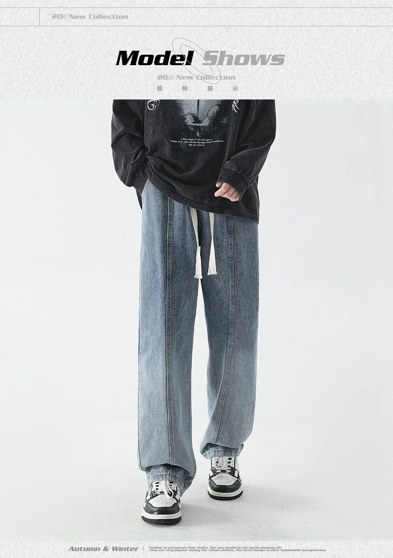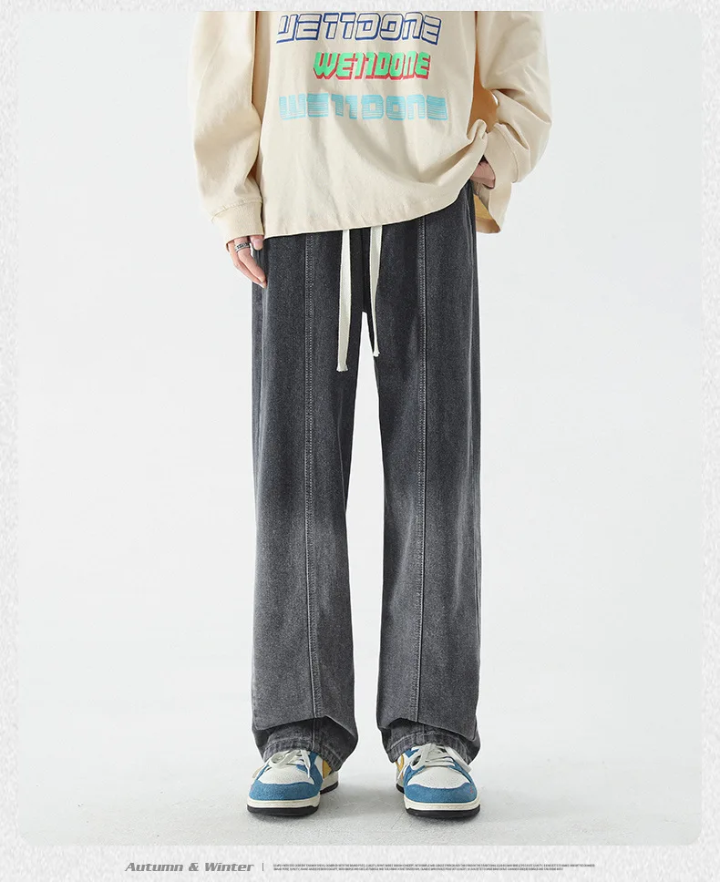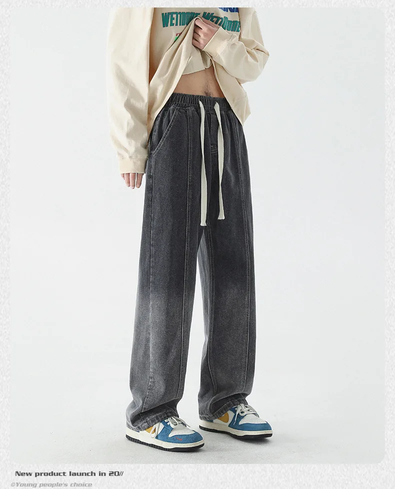 Advbridge Spring Autumn AllSeason Casual Soft Men's Cool Boys Loose Jeans Straight Pants Drawstring Gradient Solid Pocket Versatile