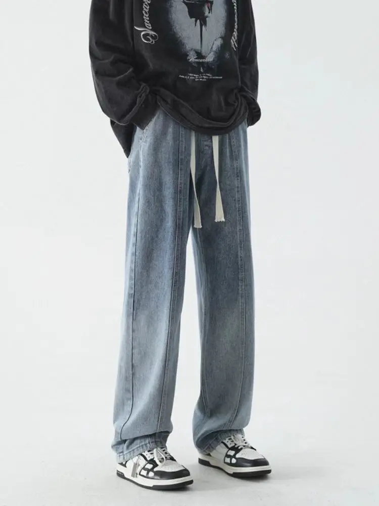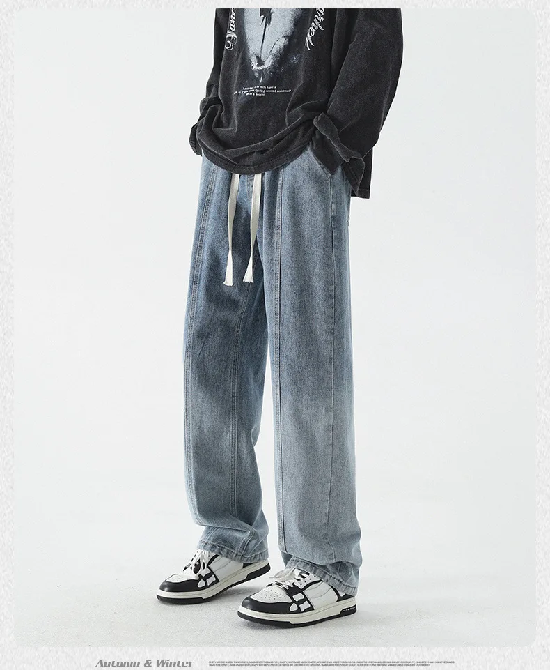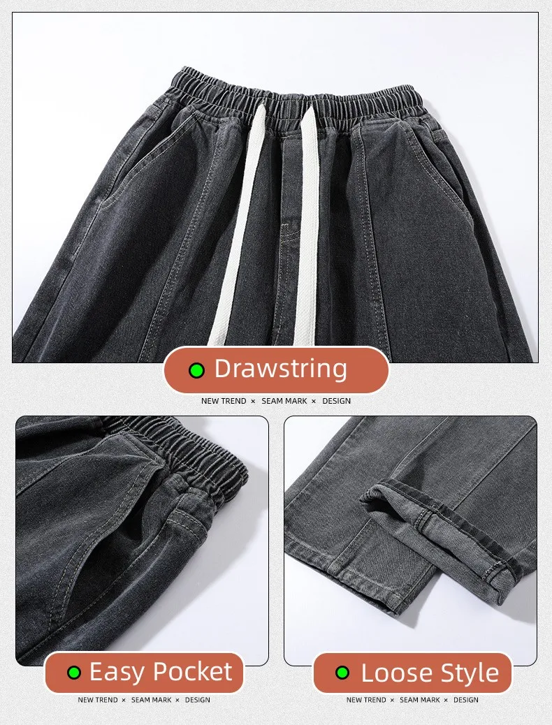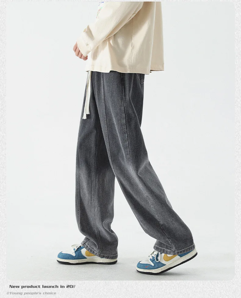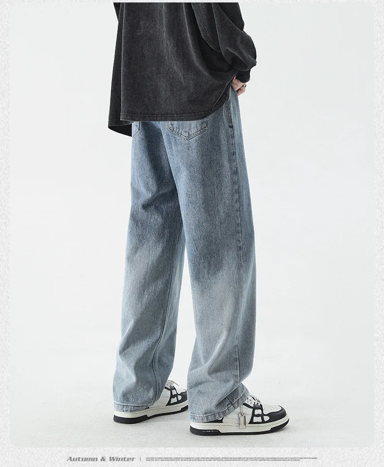 Advbridge Spring Autumn AllSeason Casual Soft Men's Cool Boys Loose Jeans Straight Pants Drawstring Gradient Solid Pocket Versatile