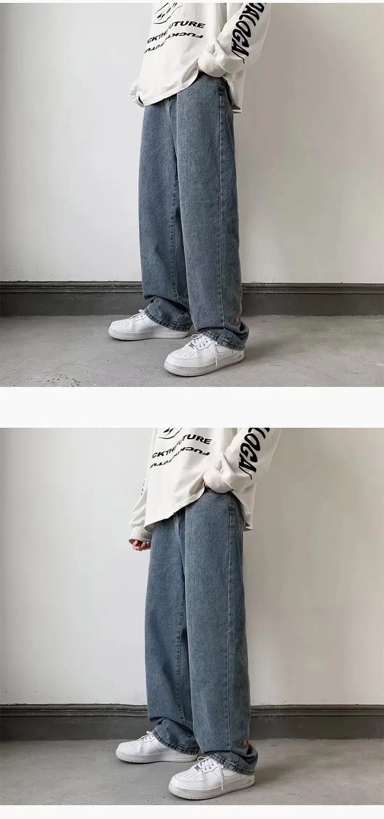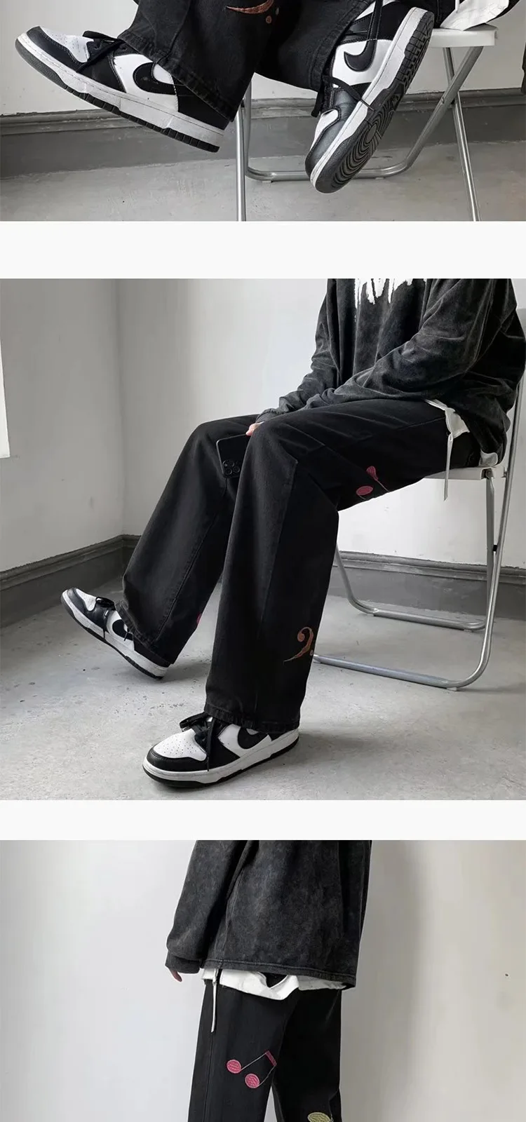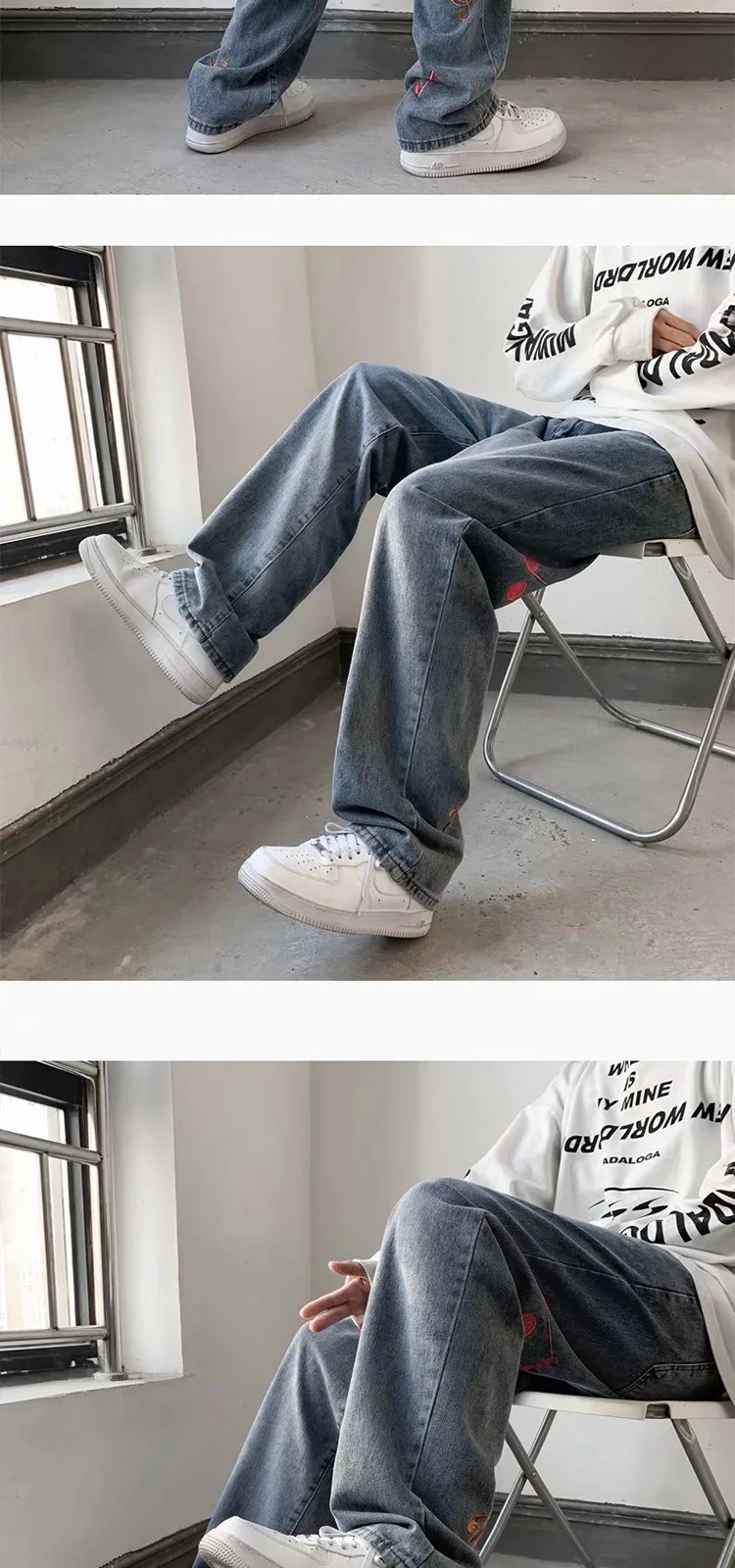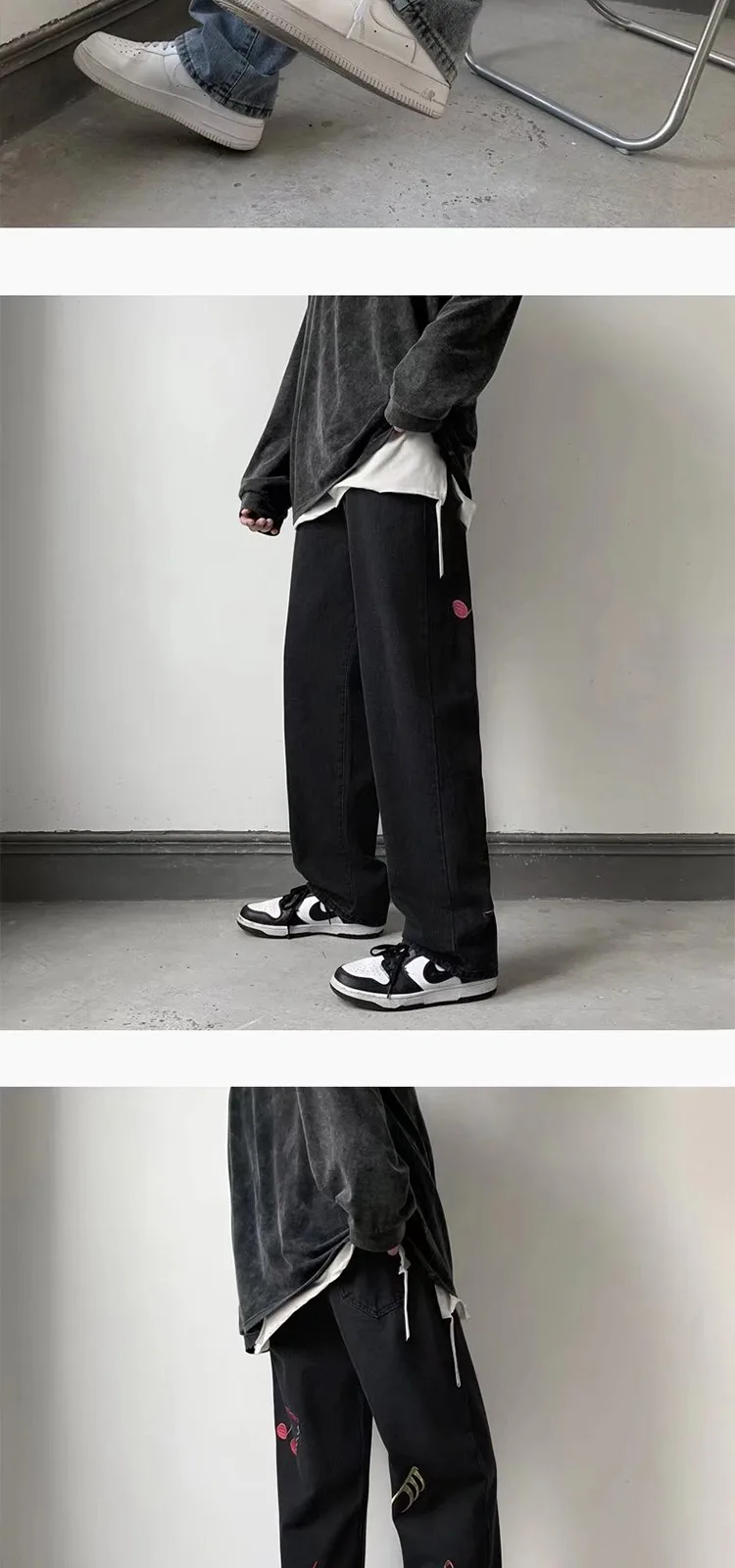 Advbridge Spring Autumn Embroidery Denim Pants Men New Fashion Streetwear Jean Pants Loose Straight Hip Hop Mopping Jeans Blue/Black