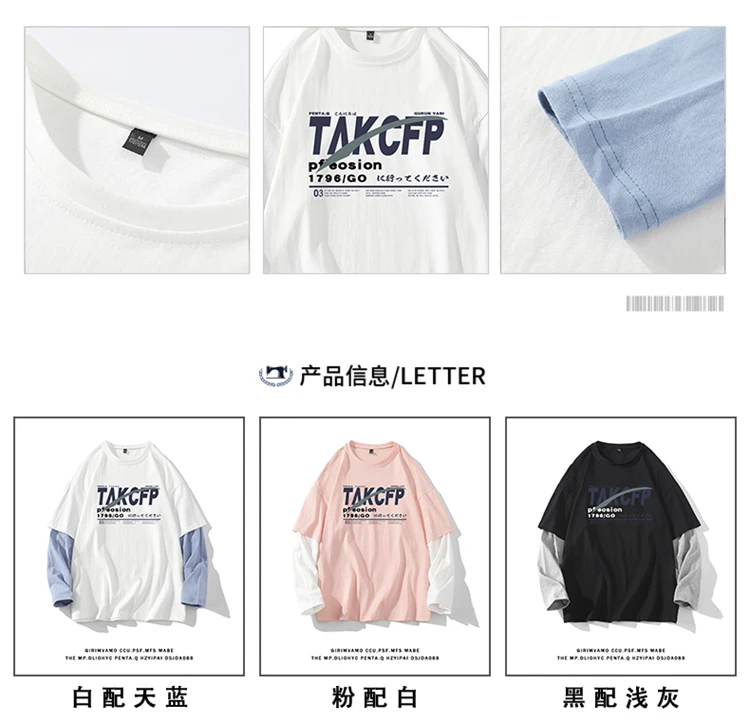 Advbridge Spring Autumn Fake Two Pieces Tshirt Men's Long Sleeve Casual O Neck Print Shirts Ins Simplicity Men Clothing