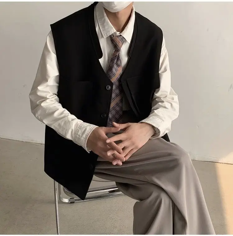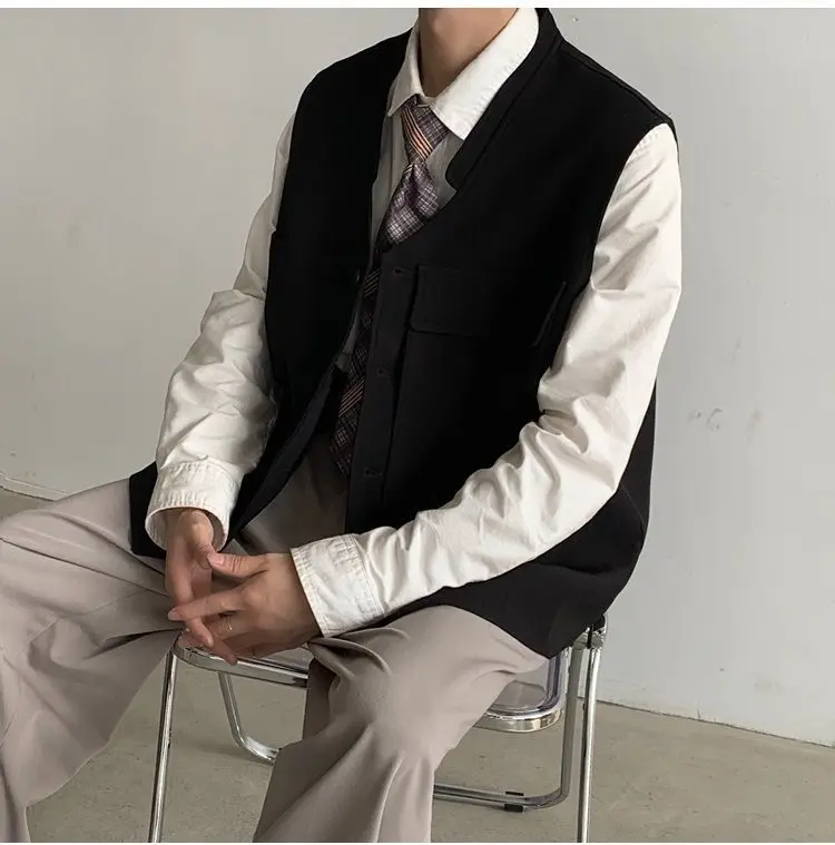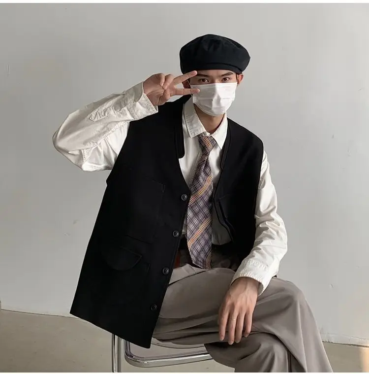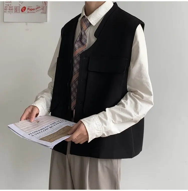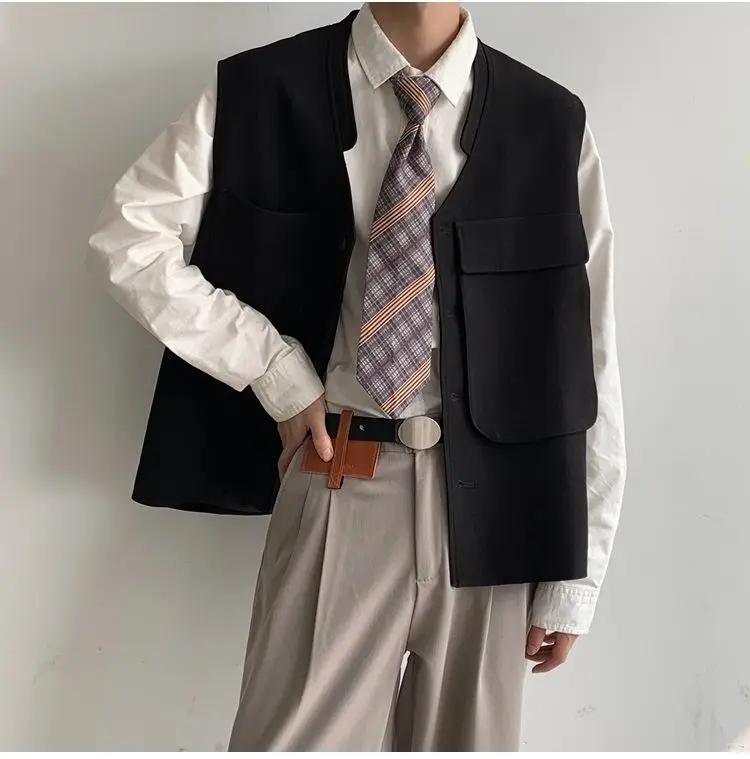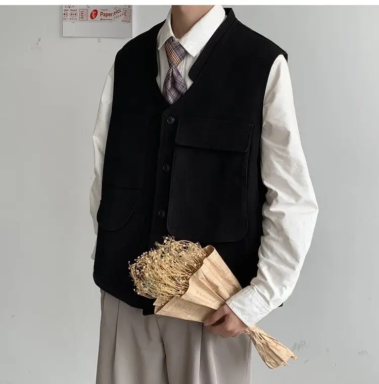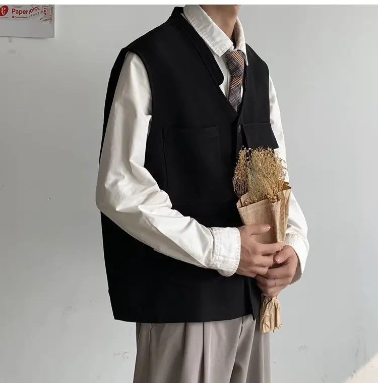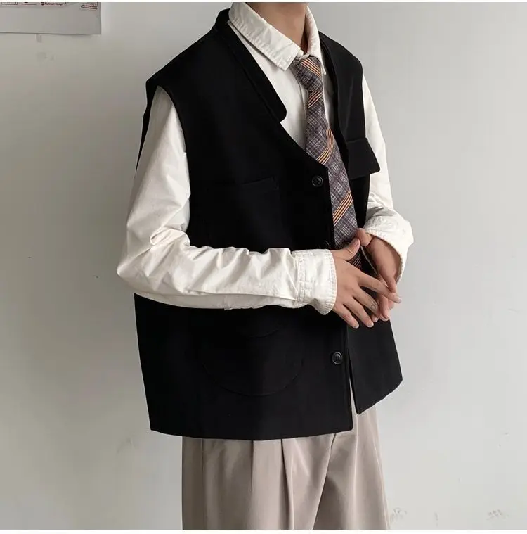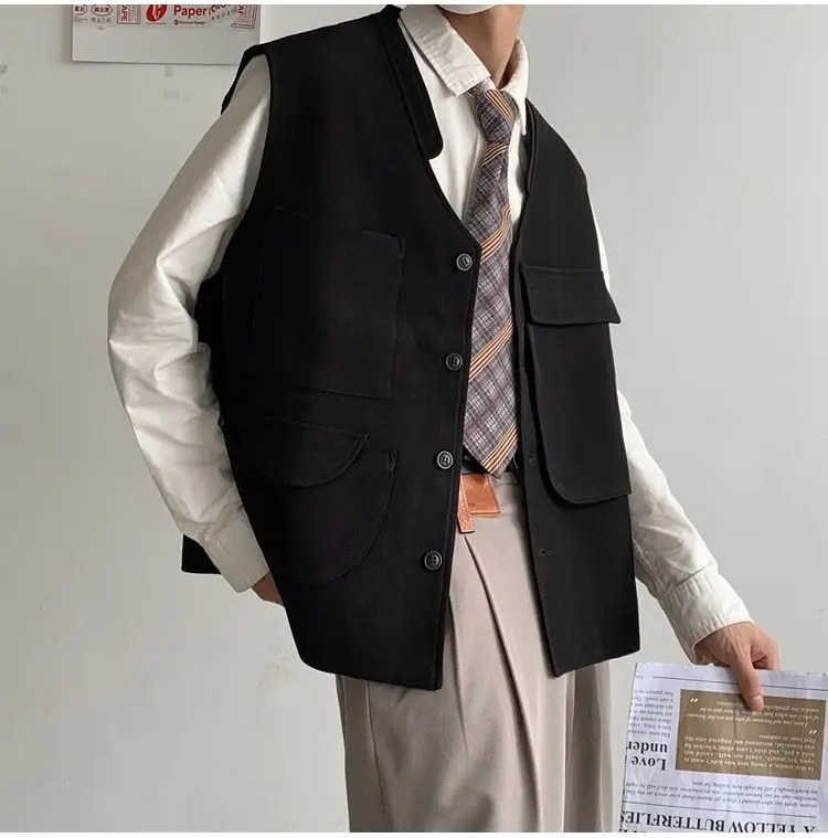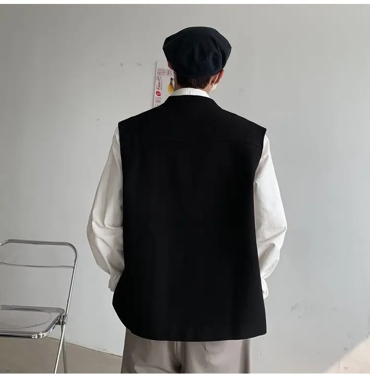 Advbridge Spring Autumn Fashion Men's Sloid Cool Boy Casual Loose Safari Style Tess Button Vest Jacket Pocket Versatile