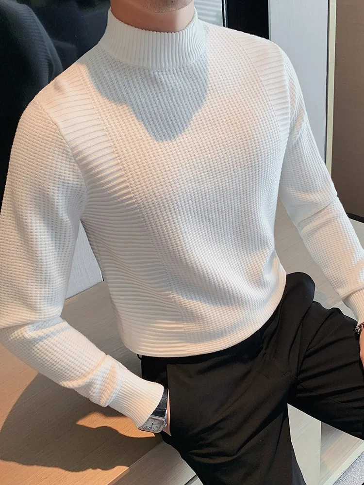 Advbridge Spring Autumn Solid Half Collar Knitted Tops Luxury Formal Long Sleeve Texture New Pullovers Men Clothing Slim Male Jumper