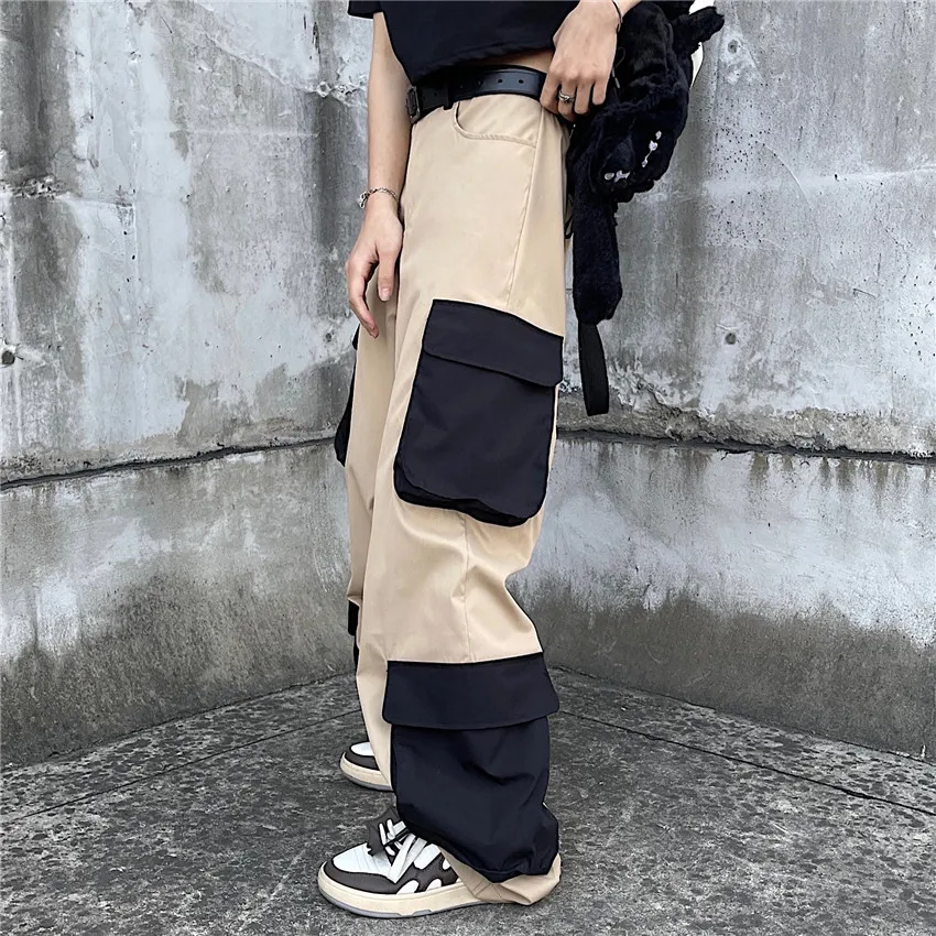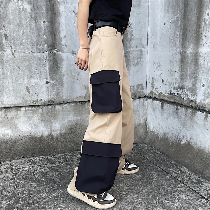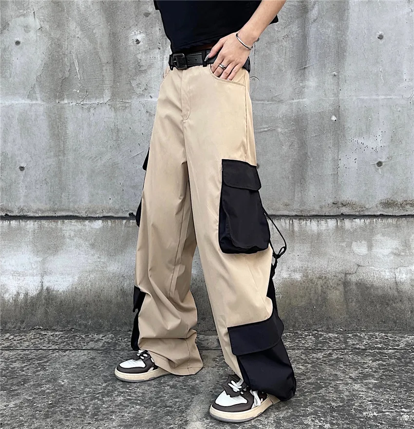 Advbridge Spring Cotton Cargo Pants Men Fashion Retro Pocket Casual Pants Men Streetwear Loose Hip Hop Wide Leg Pants Mens Straight Pants