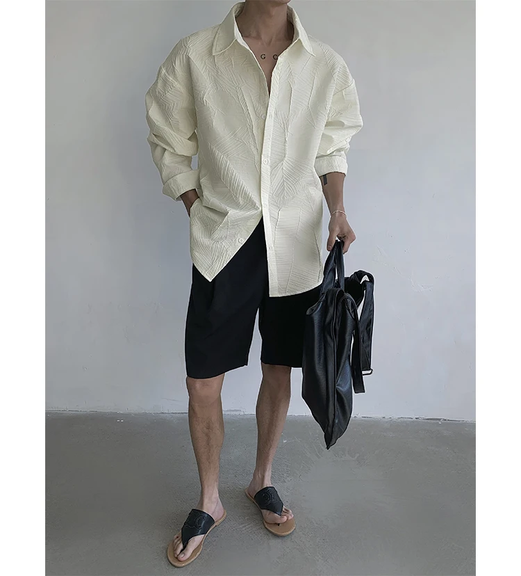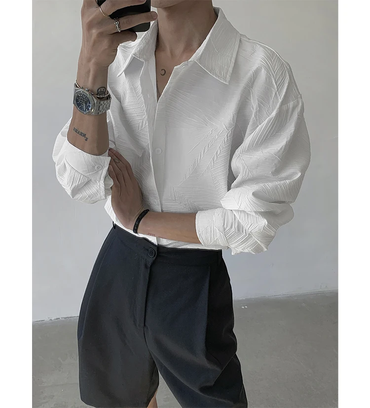 ADVBRIDGE - Spring Long Sleeved Shirt Men Fashion Society Mens Black Dress Shirt Korean Loose Casual Shirt Mens White Shirts M-3XL