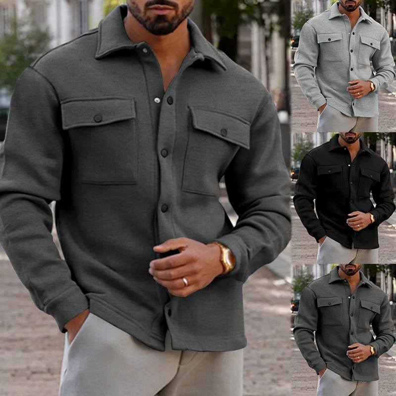 Advbridge Spring Men Cargo Jacket Streetwear Fashion Solid Color Breasted Collar Long Sleeve Coat For Men Casual Loose Outfits Outerwear