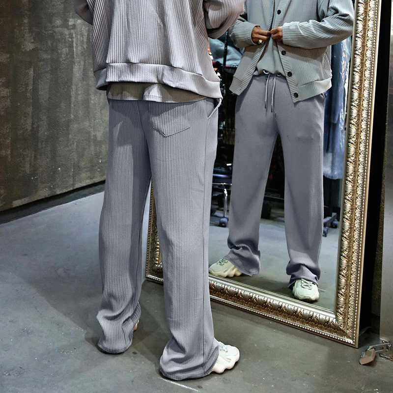 Advbridge Spring Summer Fashion Solid Color Men Jacquard Striped Drawstring Trouser Casual Pockets Slim Fit Long Pant 2024 Streetwear