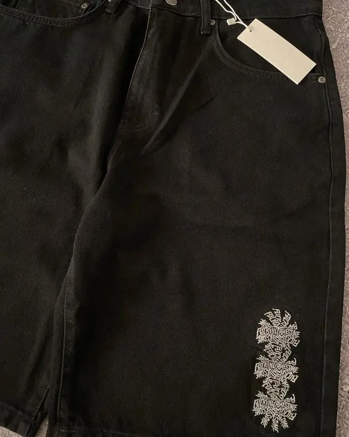 Advbridge Streetwear Shorts Y2K Harajuku Hip Hop Gothic Letter Baggy Jeans Denim Gym Shorts Mens New High Waist Basketball Casual Shorts