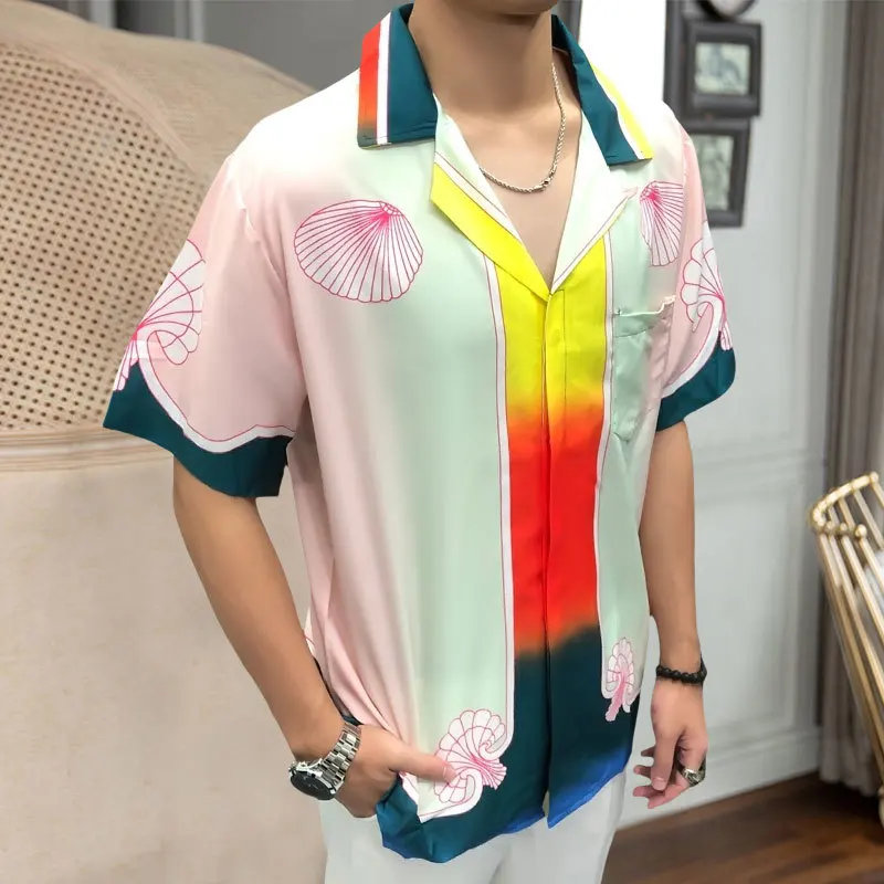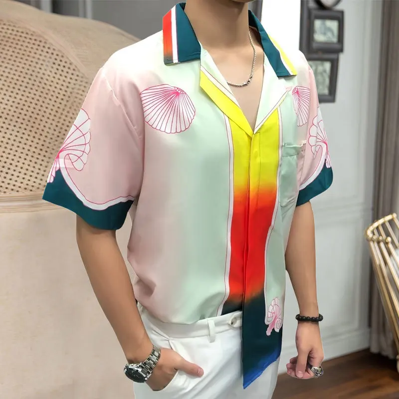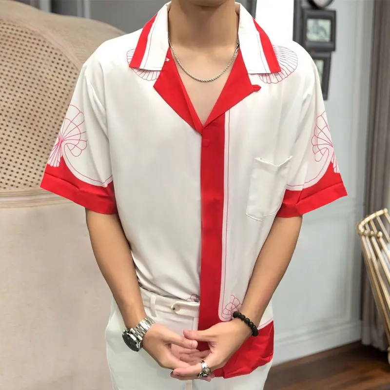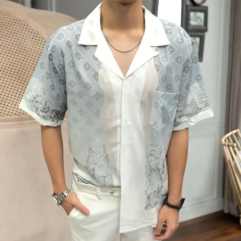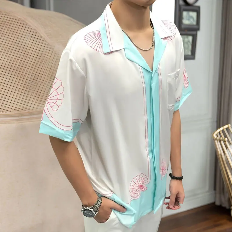 Advbridge Summer Contrast Stitching Print Shirt Short Sleeve Casual Men Shirt Streetwear Camisa Fashion Masculina Shirt Moda Hombre 2023