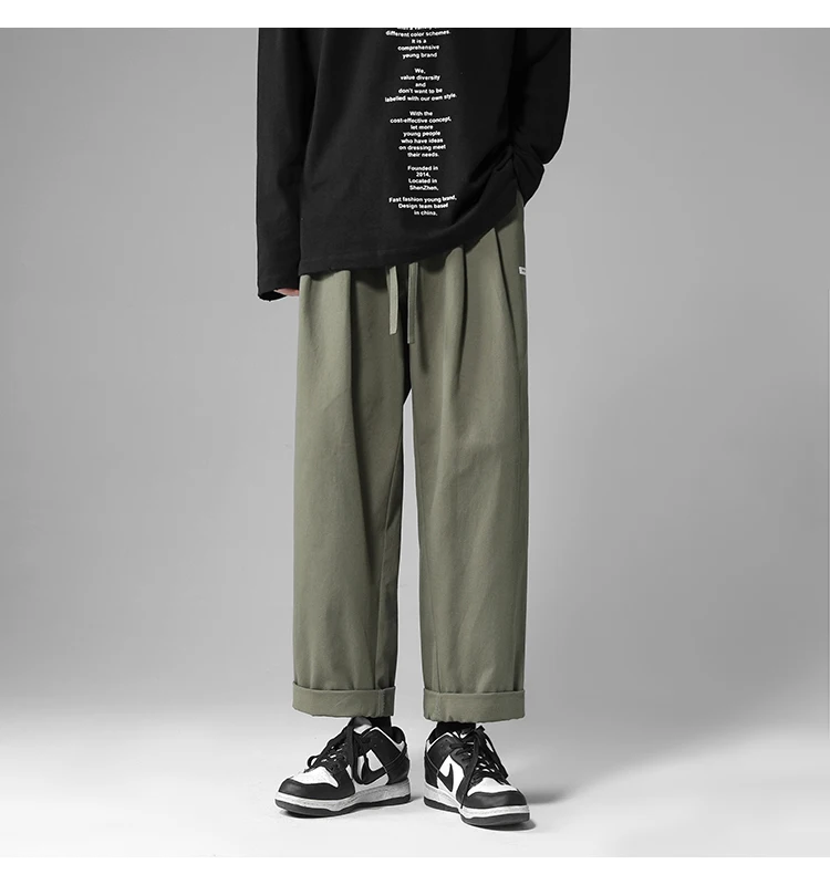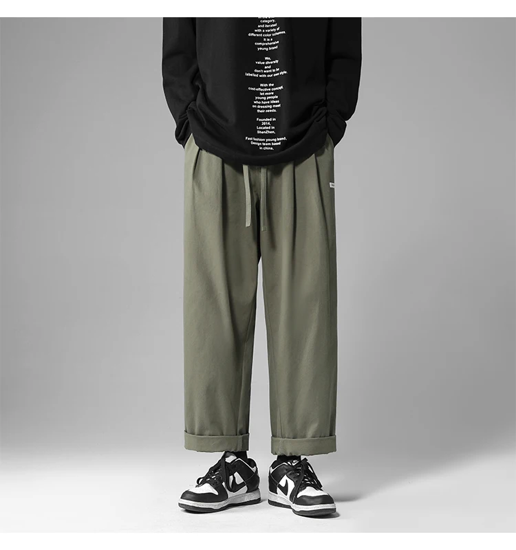 Advbridge Summer Cotton Casual Pants Men Fashion Retro Cargo Pants Men Japanese Streetwear Hip Hop Loose Straight Pants Mens Trousers