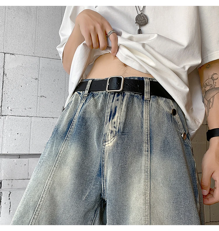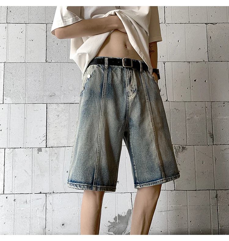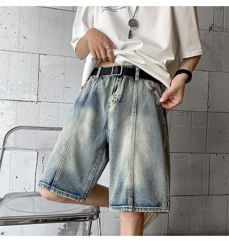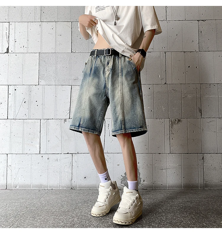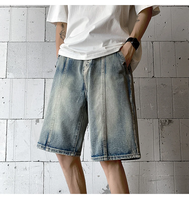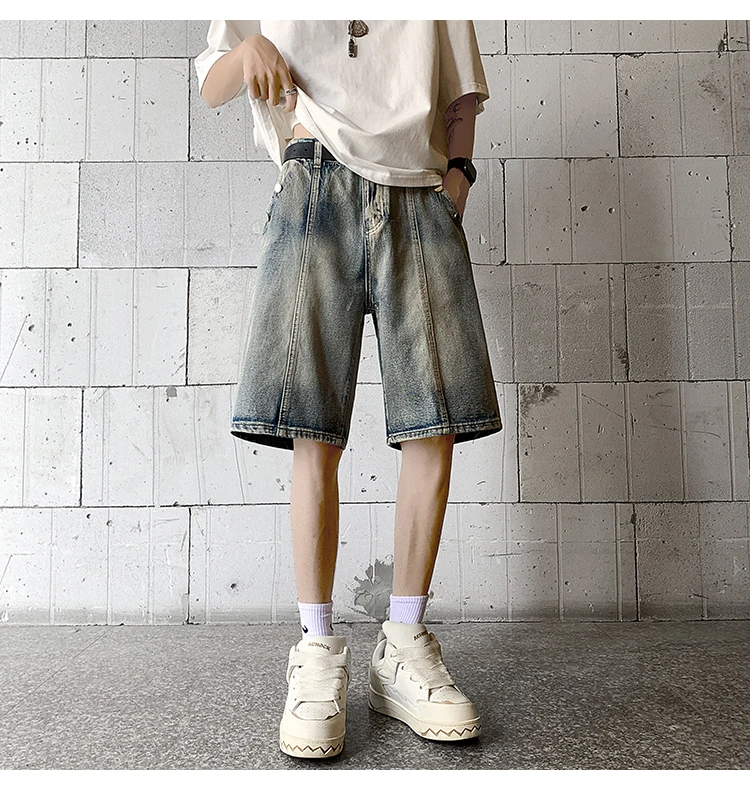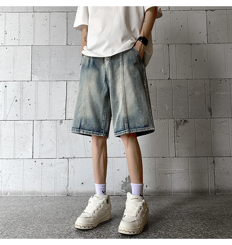 Advbridge Summer Denim Shorts Men Fashion Blue Retro Denim Shorts Mens Japanese Streetwear Hip-hop Loose Straigh Jeans Shorts Men S2XL