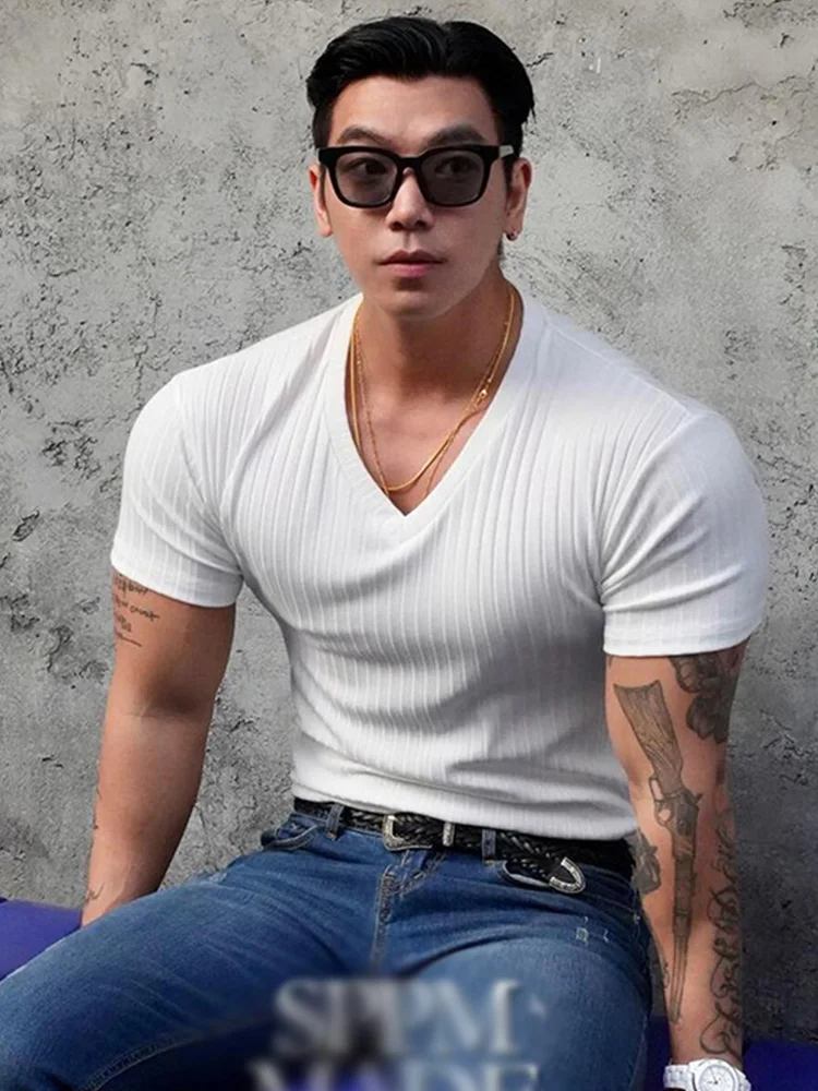 Advbridge Summer Gym Runing T-Shirt Mens Bodybuilding Sport Quick Dry Short Sleeve Tops Male Casual Striped Skinny Tee Shirt Man Clothing