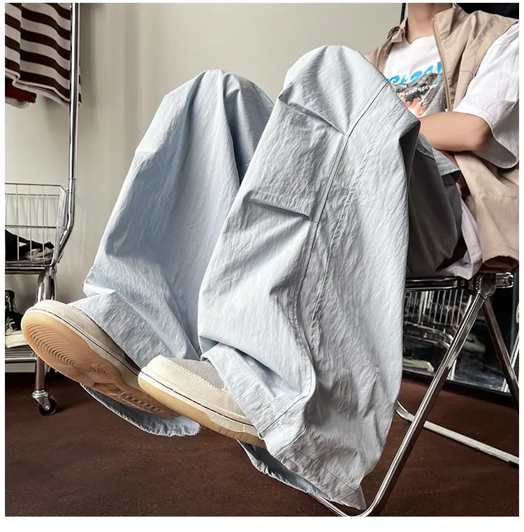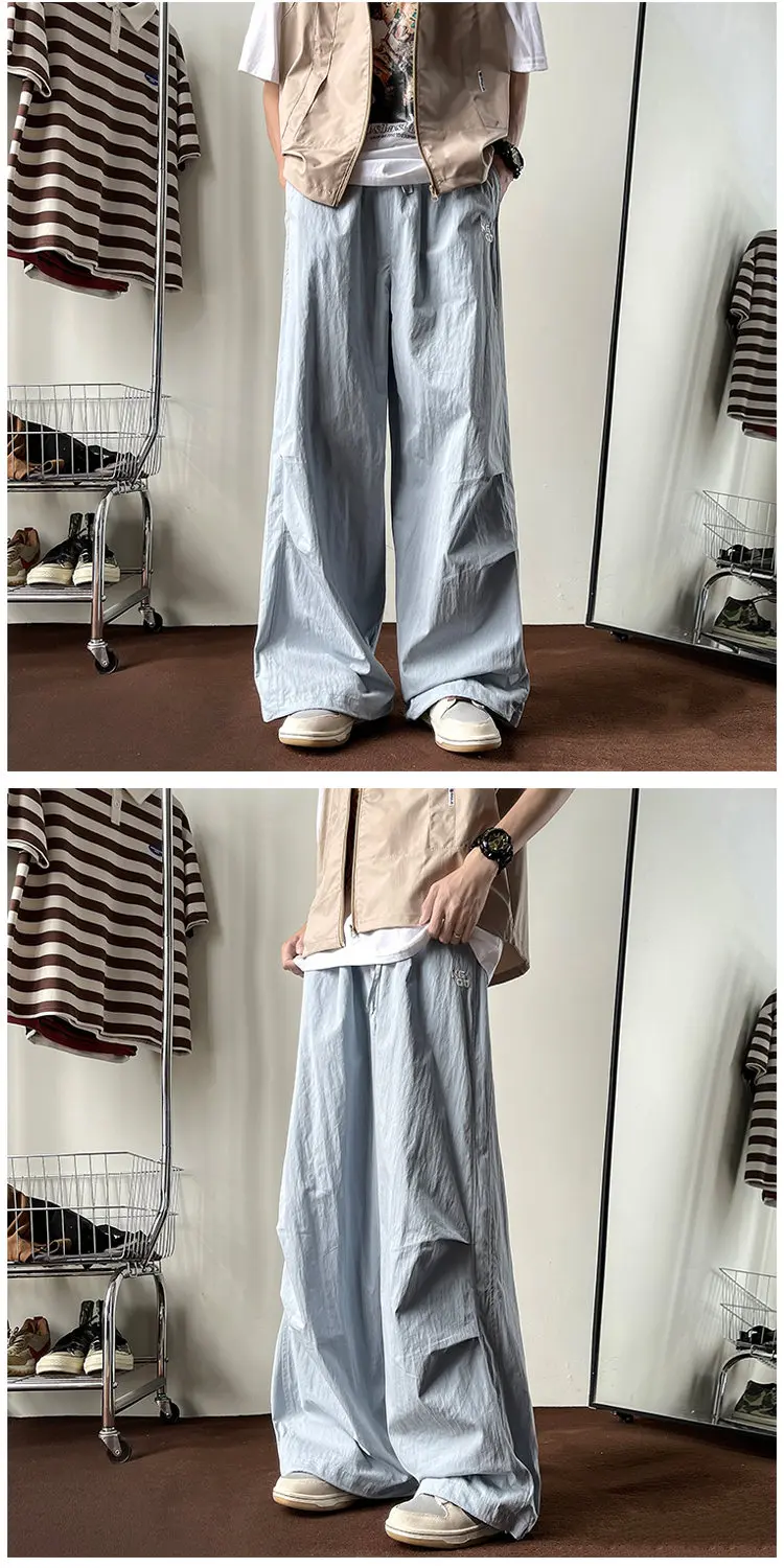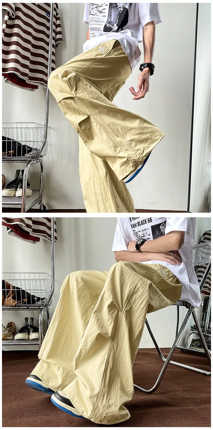 Advbridge Summer Korean Style New Men's Casual Pants Elastic Waist Loose Male Trousers Straight Wide Leg Bottom Fashion 2024