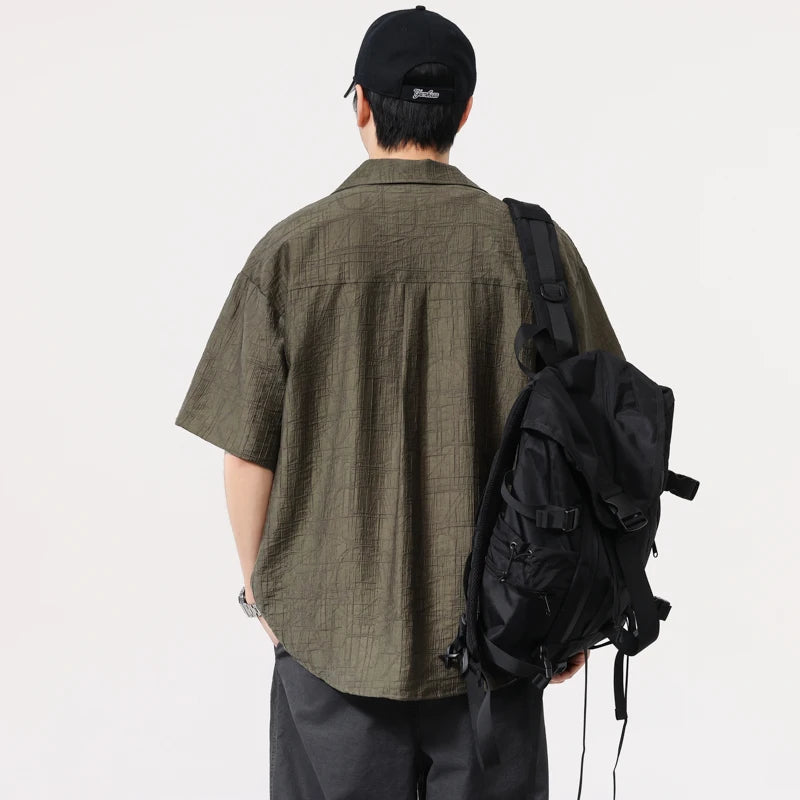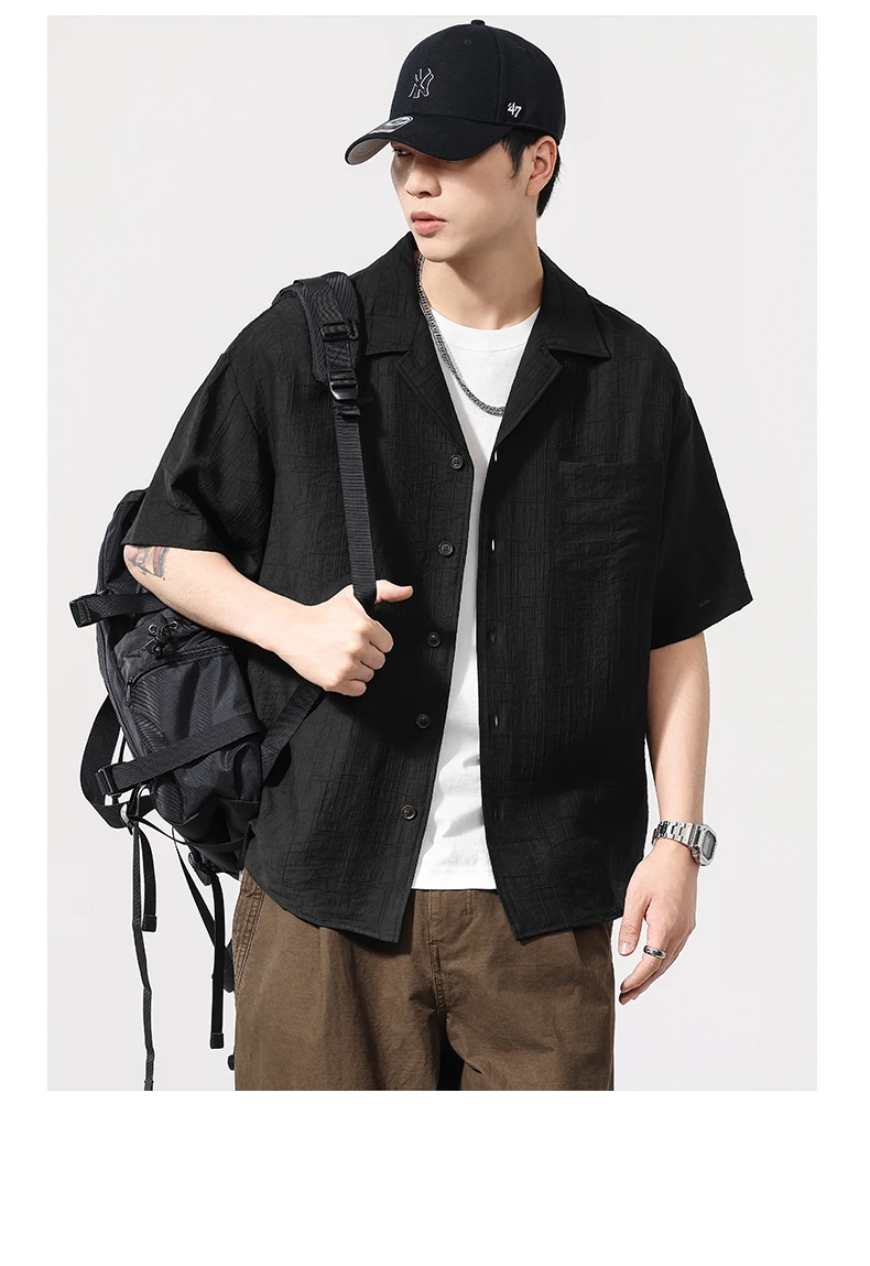 ADVBRIDGE - Summer Lightweight Thin Cool Shirts Men Retro Loose Casual Short Sleeve Cargo Shirt Cityboy Streetwear Plus Size Shirts Blouses