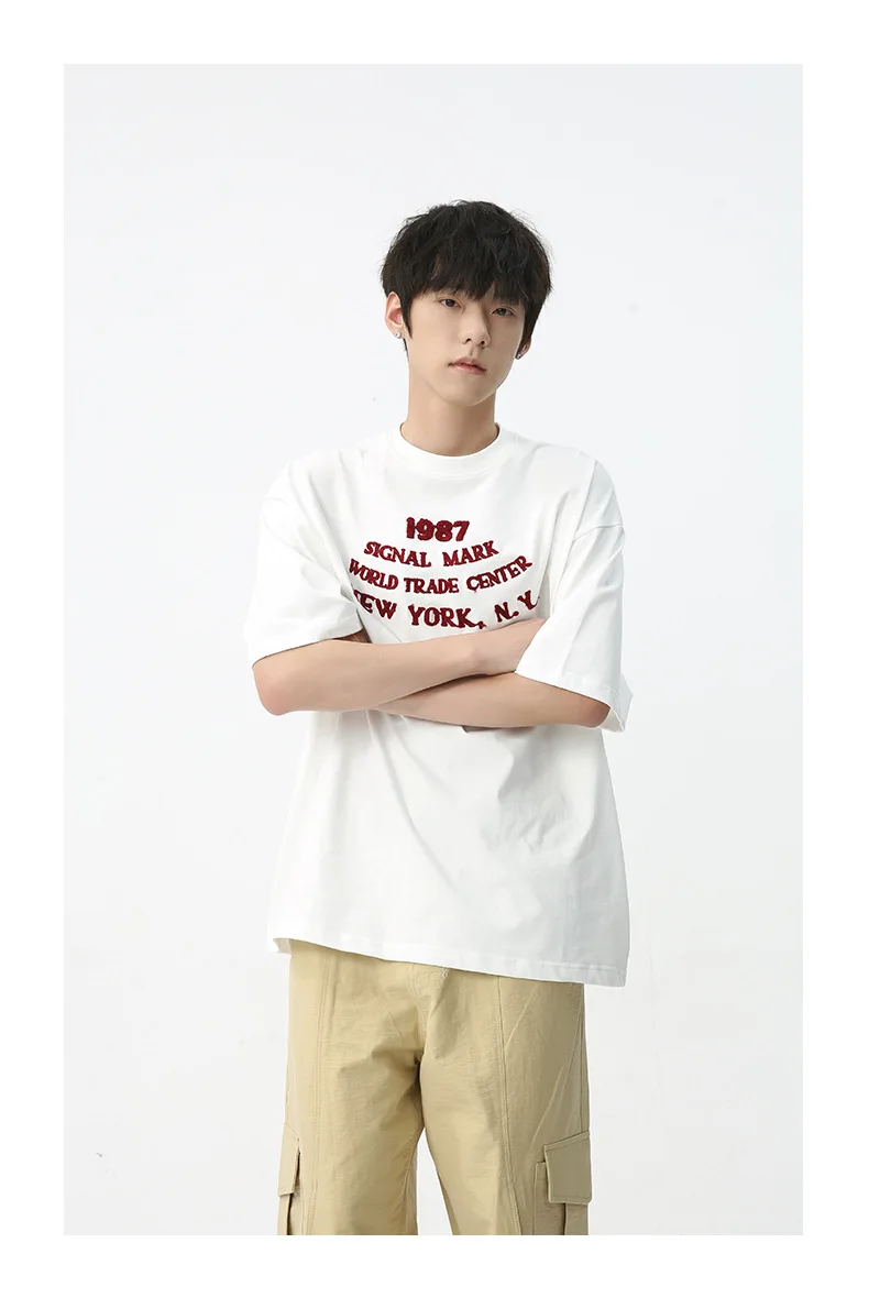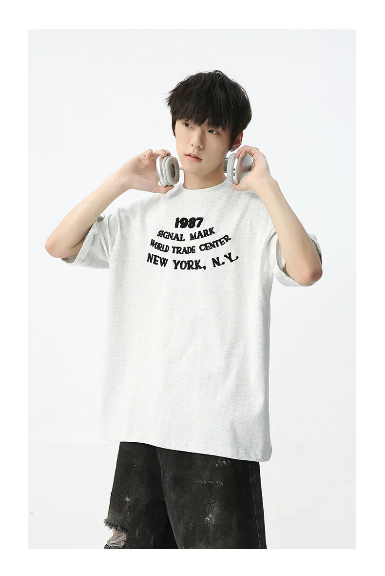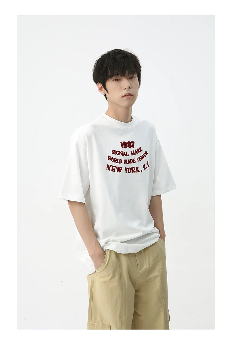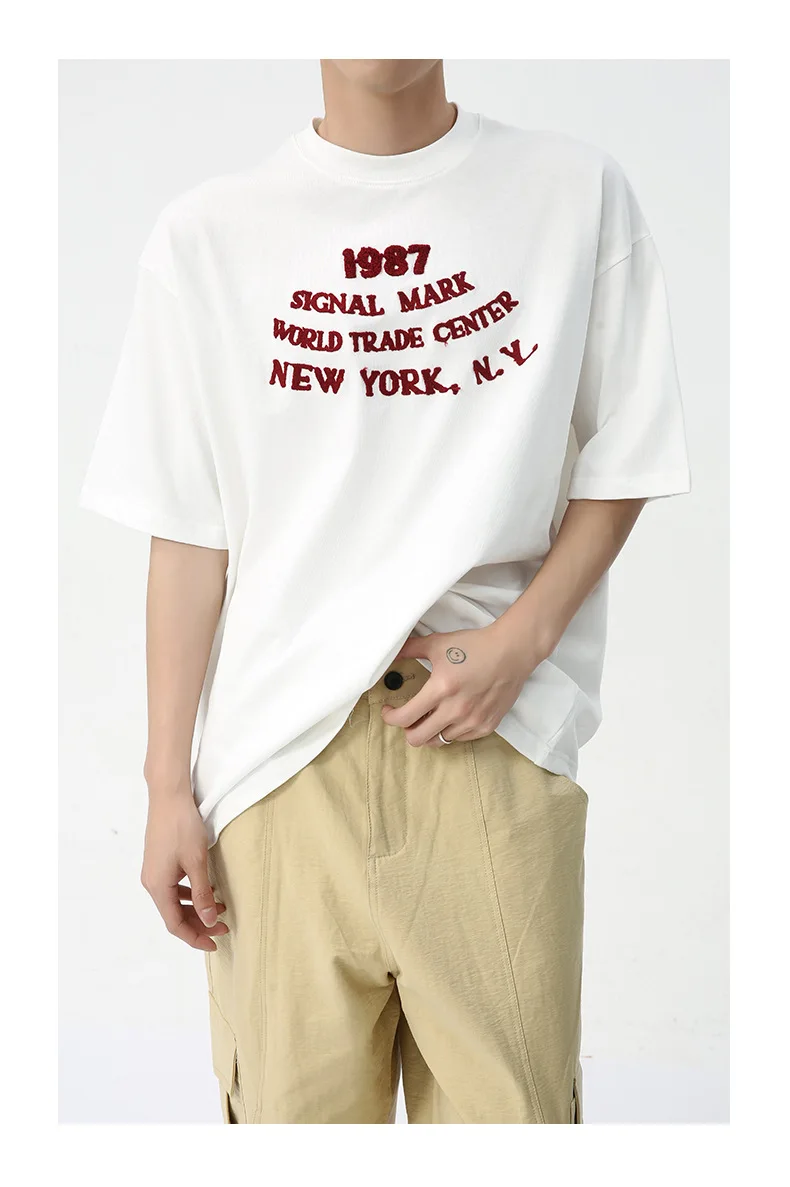 Advbridge Summer Loose Men's T-shirt Korean Style Casual Round Neck Letter Printed Embroidery Short Sleeved Male Tops 2024 New Fashion