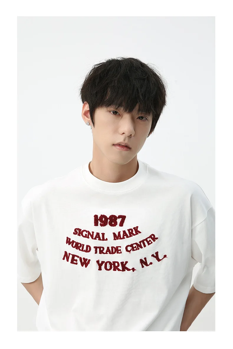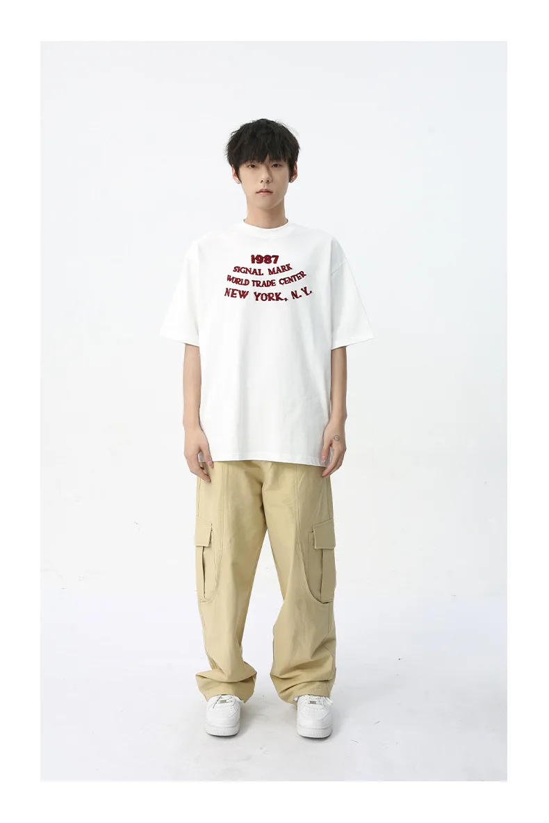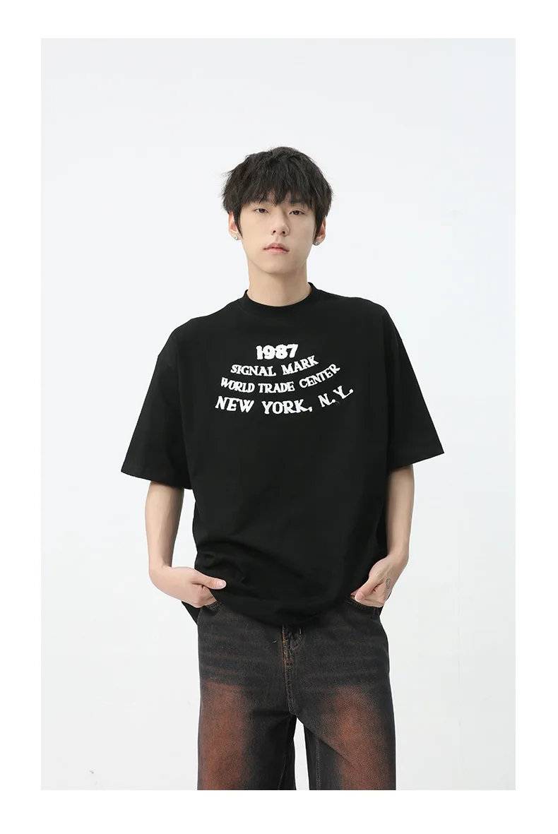 Advbridge Summer Loose Men's T-shirt Korean Style Casual Round Neck Letter Printed Embroidery Short Sleeved Male Tops 2024 New Fashion