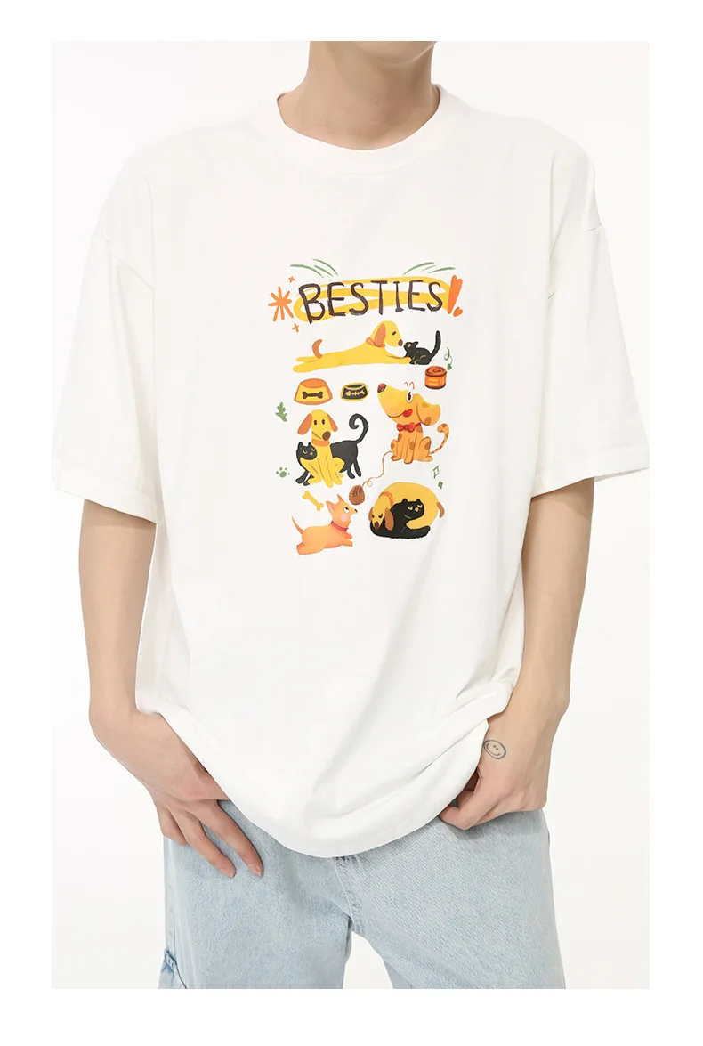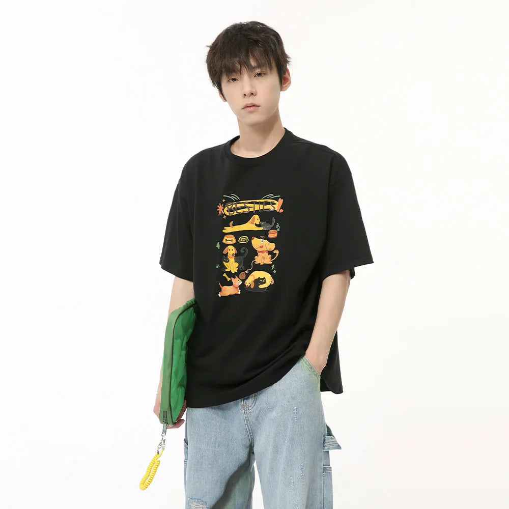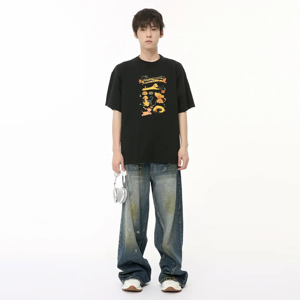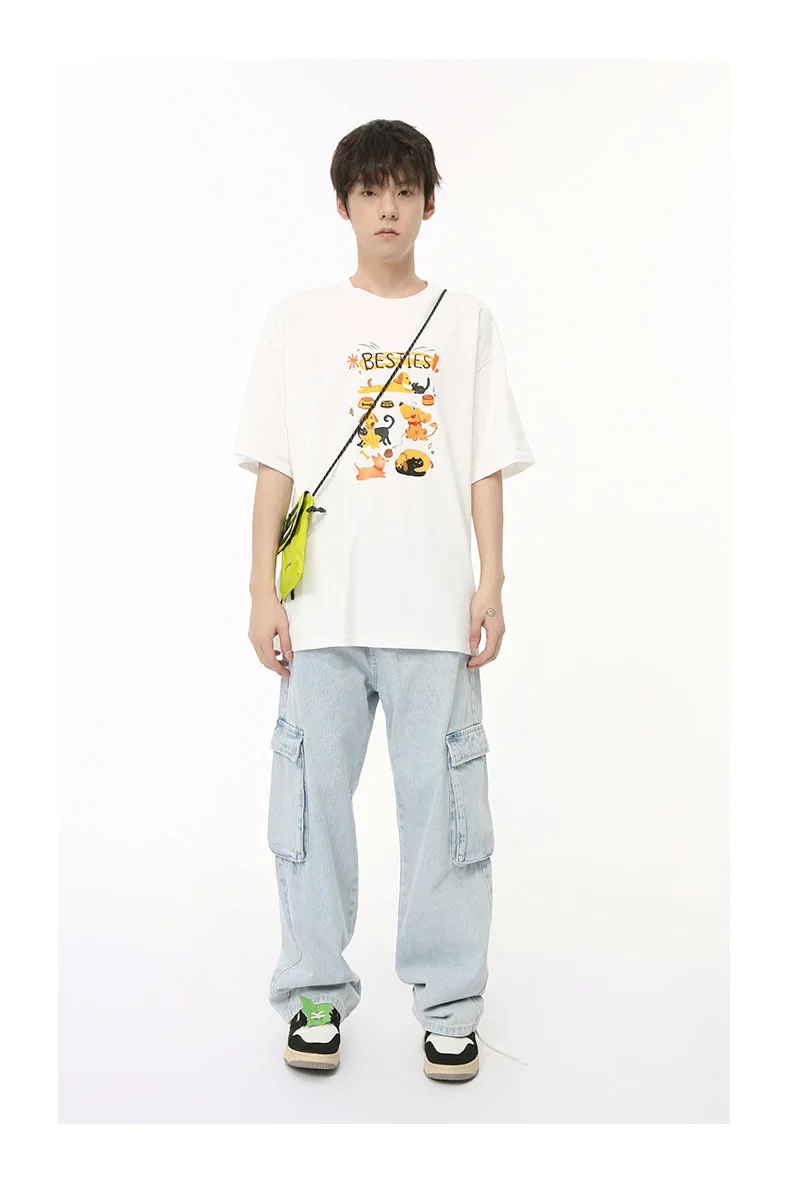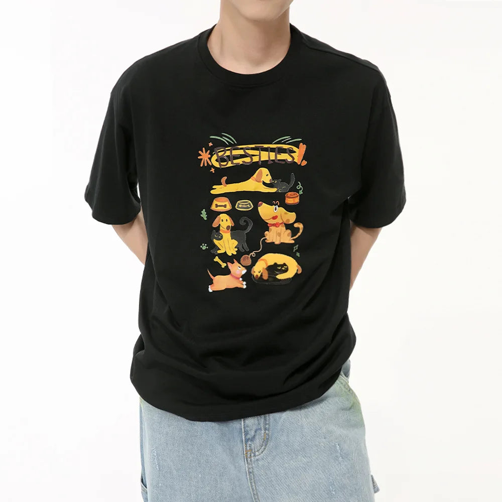 Advbridge Summer Loose Men's T-shirt Korean Style High Street Casual Round Collar Cartoon Print Short Sleeved Male Tops 2024 New Fashion