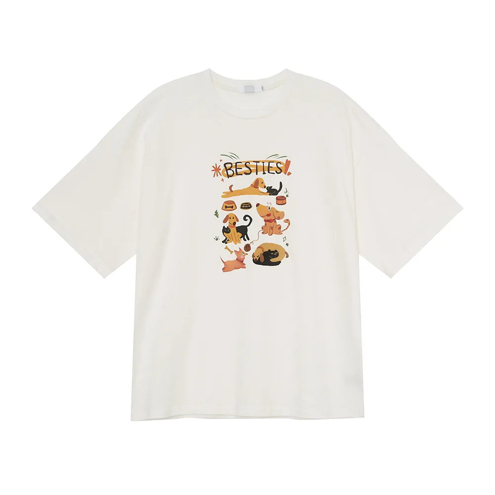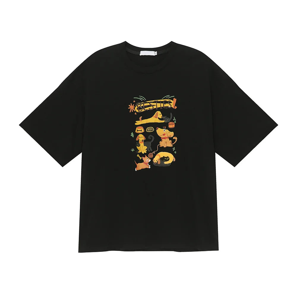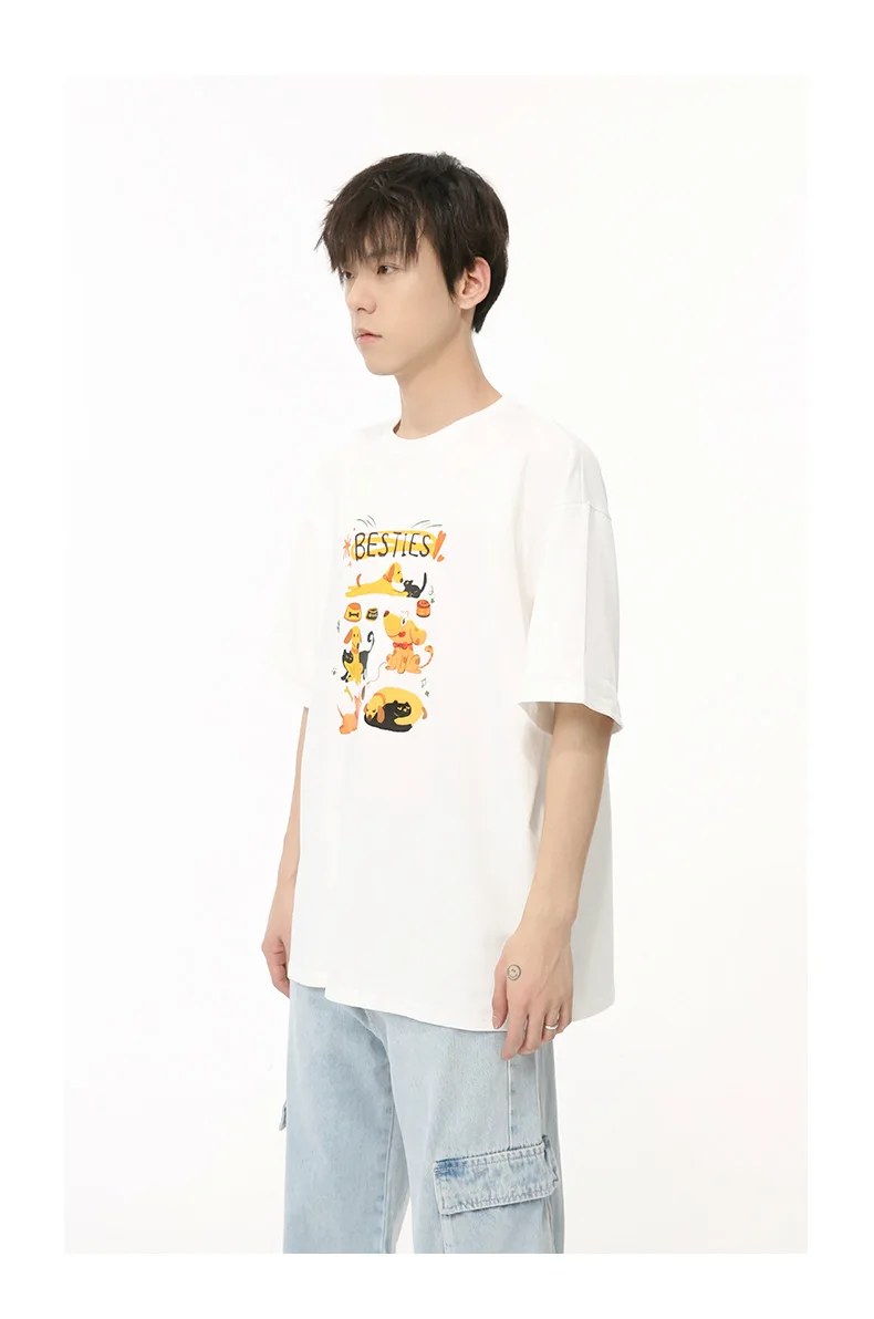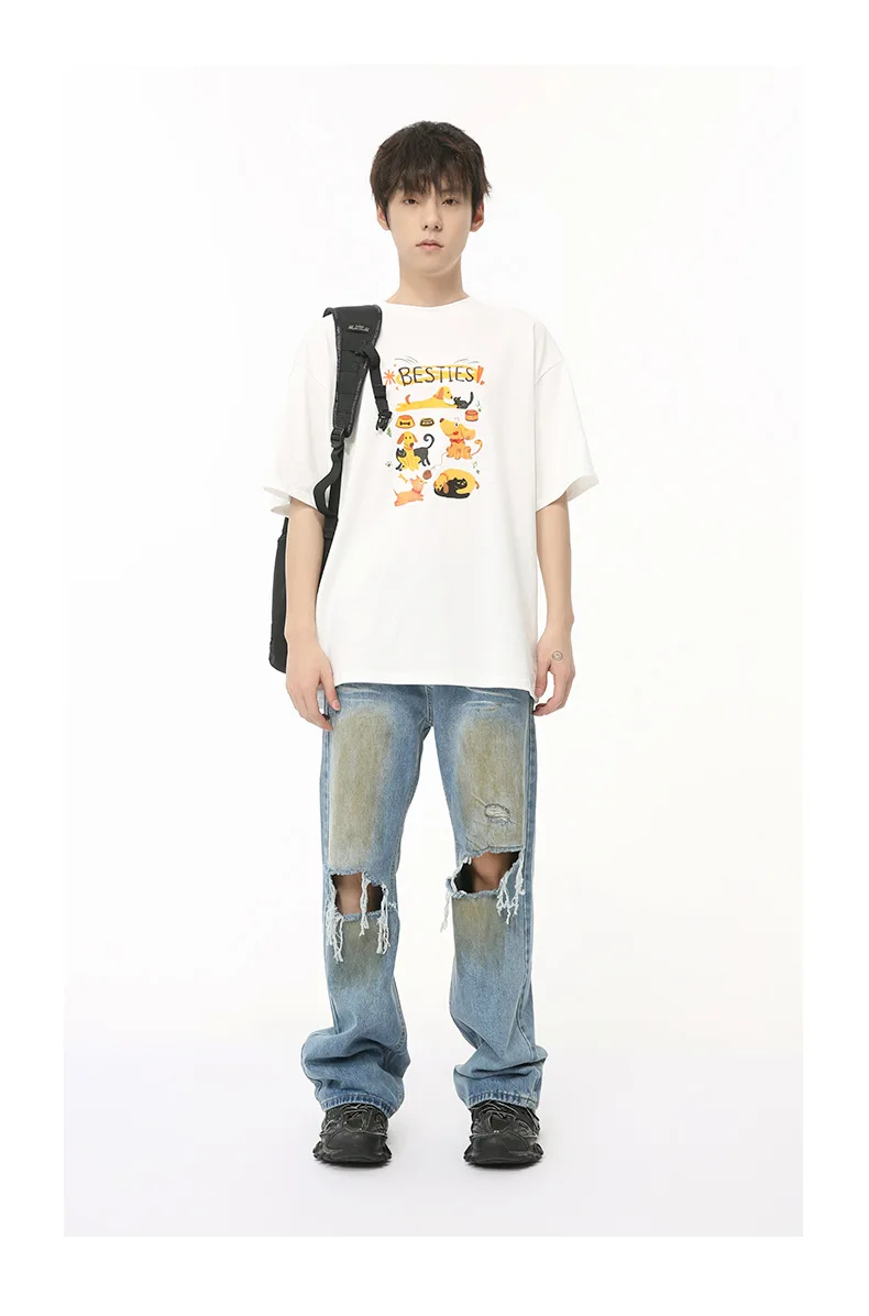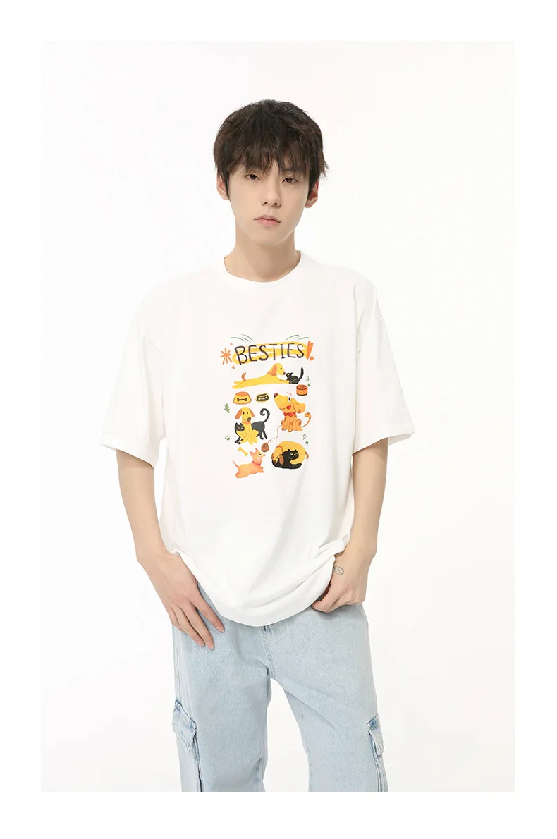 Advbridge Summer Loose Men's T-shirt Korean Style High Street Casual Round Collar Cartoon Print Short Sleeved Male Tops 2024 New Fashion