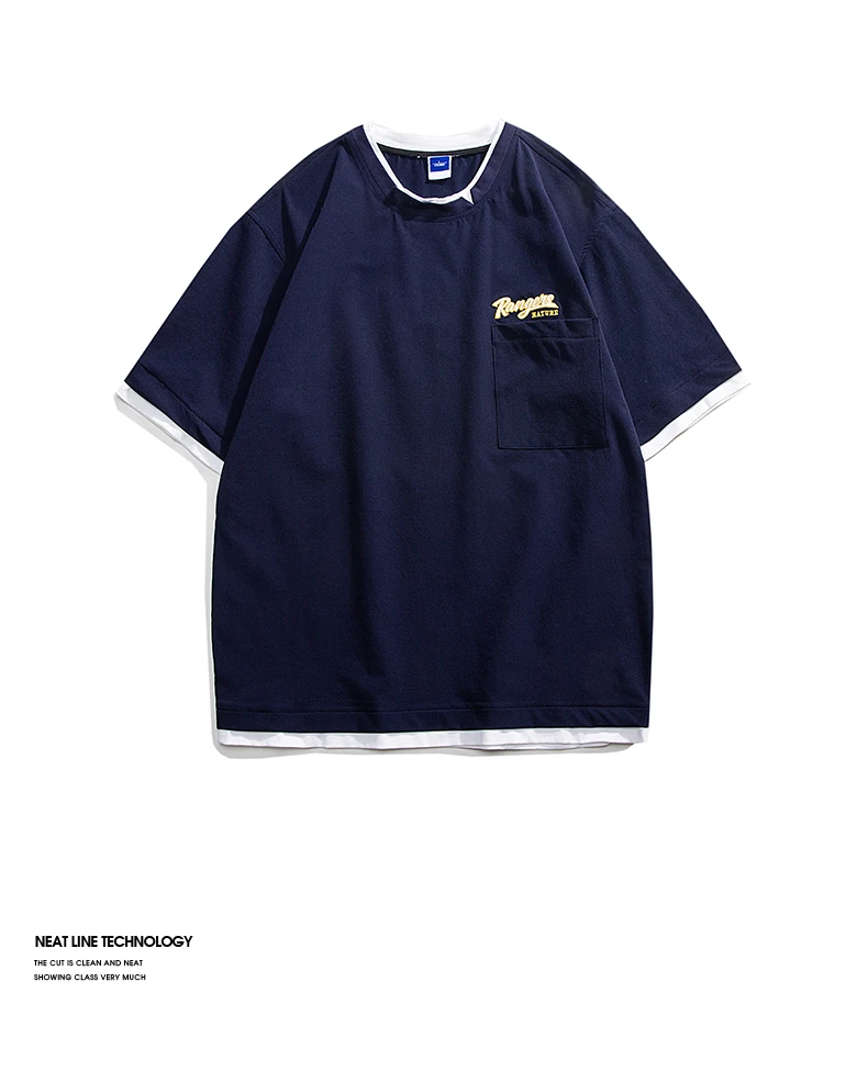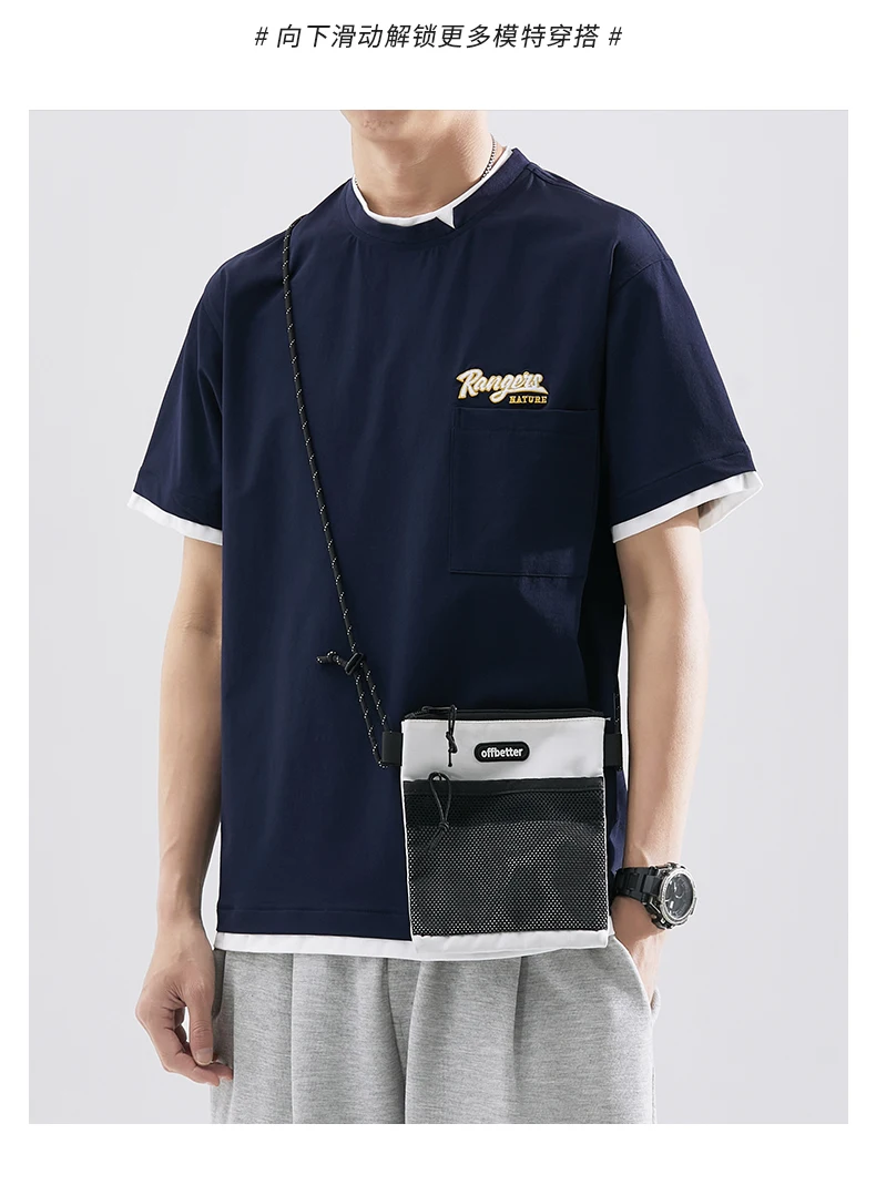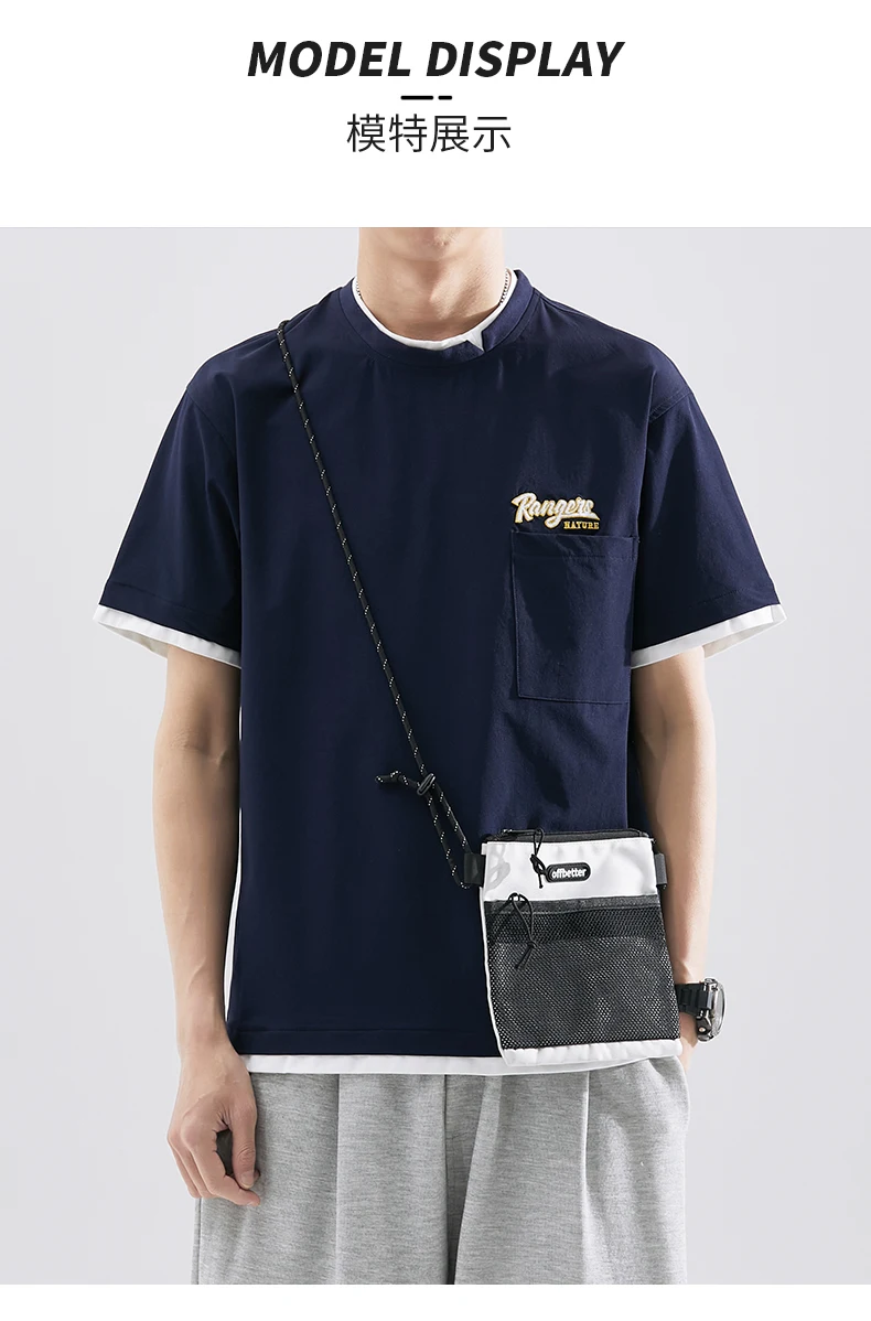 Advbridge Summer Men's T-Shirt Young Chest Pocket Design Losse Casual Short Sleeved Shirt Fashion Hip Hop Unisex College Simple Top 2023