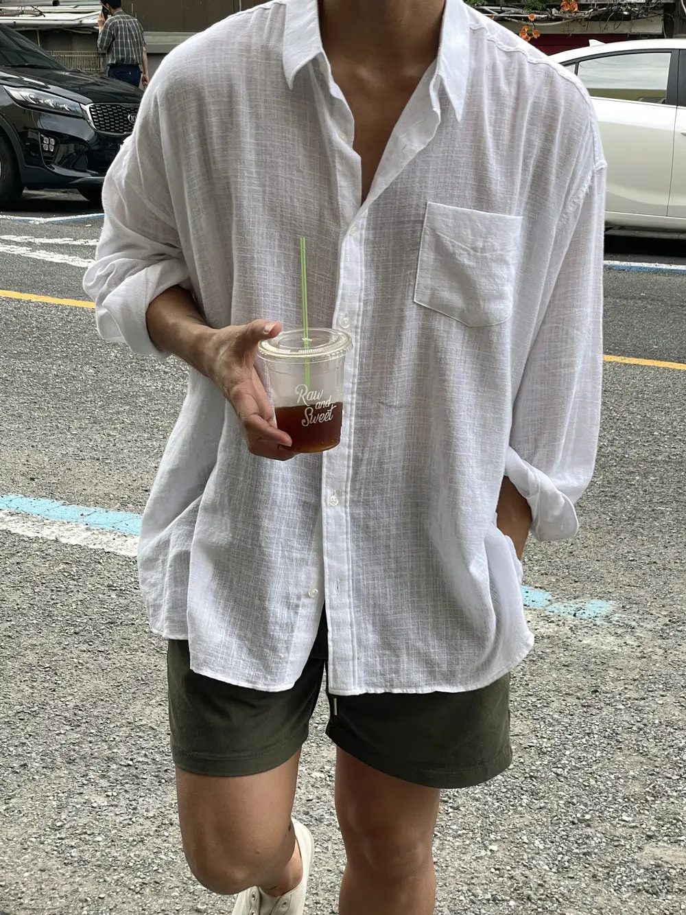 Advbridge Summer New Korean Style Breathable Shirt, Casual Loose Cotton Linen Fabric Men's Shirt Thin Coat