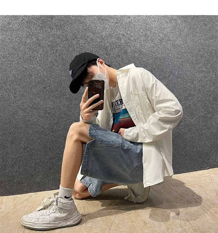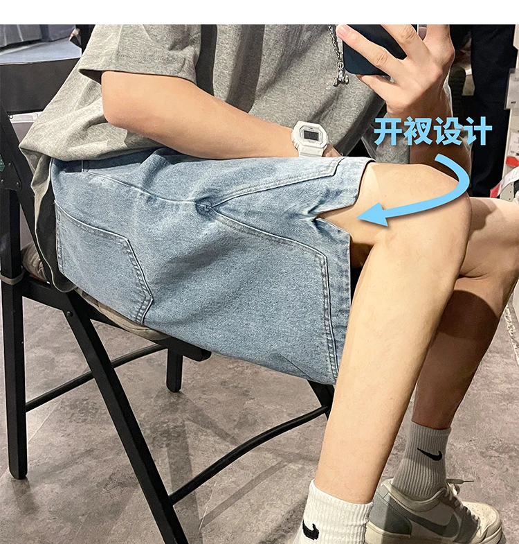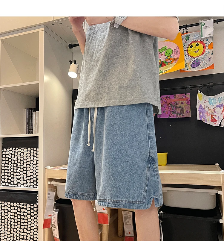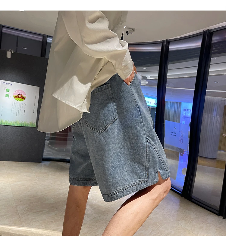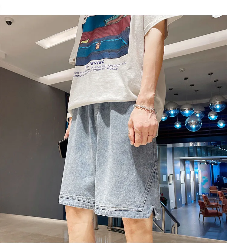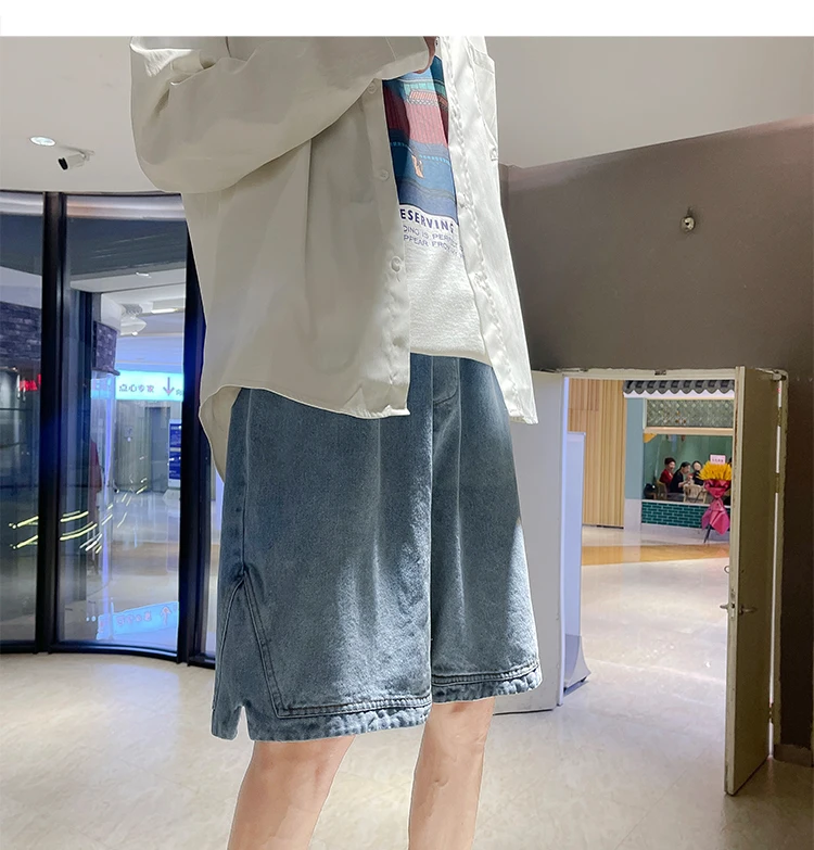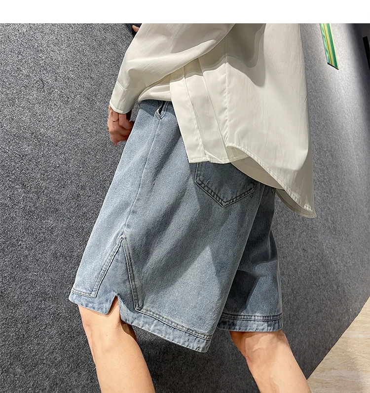 Advbridge Summer New Men's Loose Short Jeans Neutral Denim Shorts Chic Side Vent Straight Short Pants Male Streetwear Casual Shorts 5XL-S