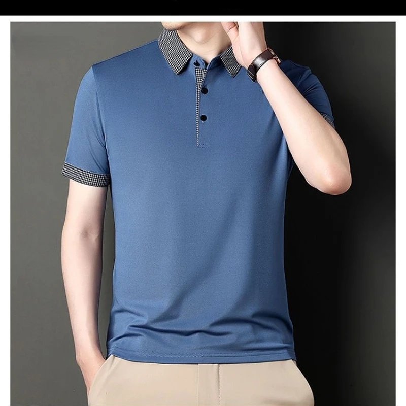 Advbridge Summer New Men's Short Sleeve Polo Shirt Lapel Casual Fashion Tees Shirts Solid Patchwork Pullover Casual Oversize Clothing