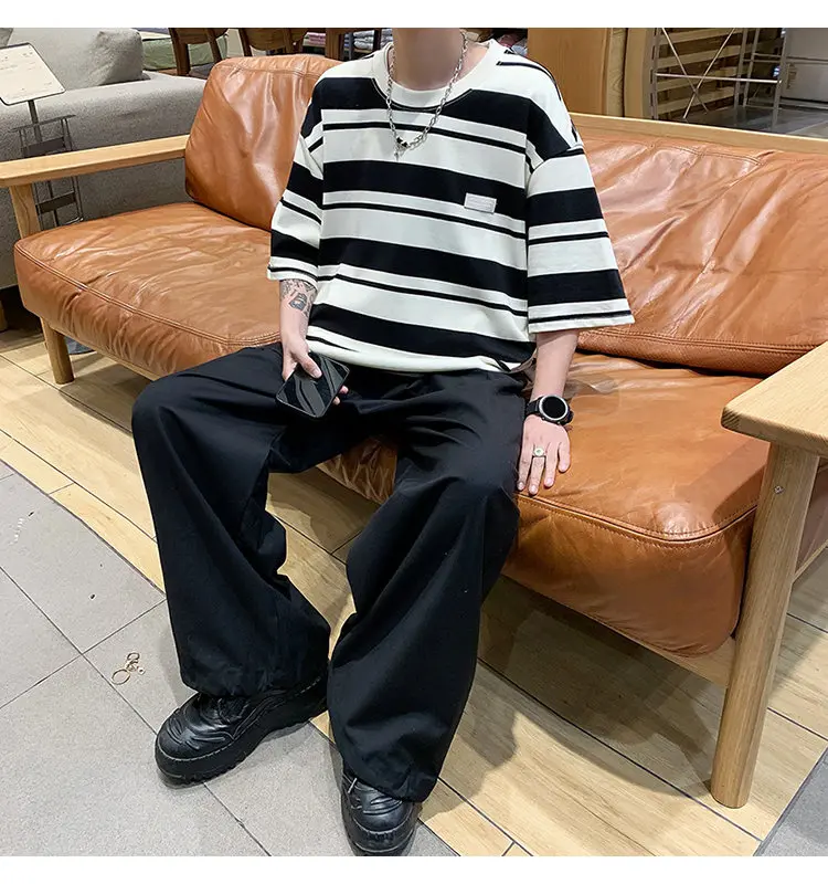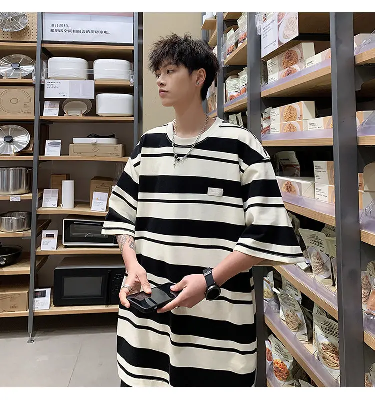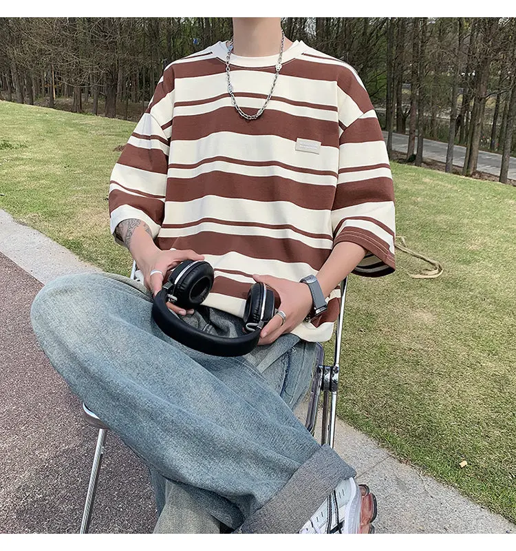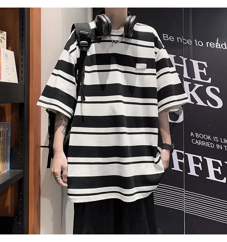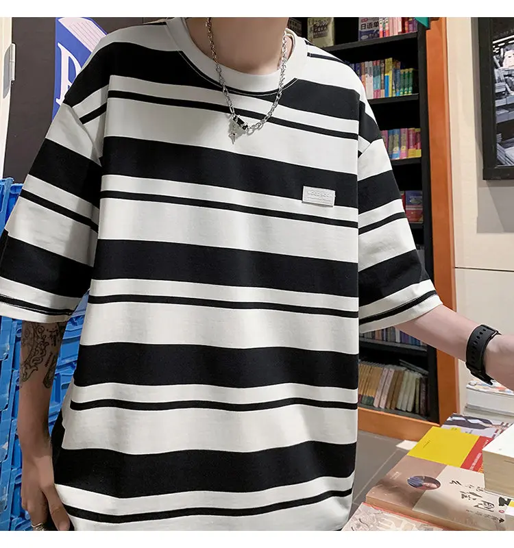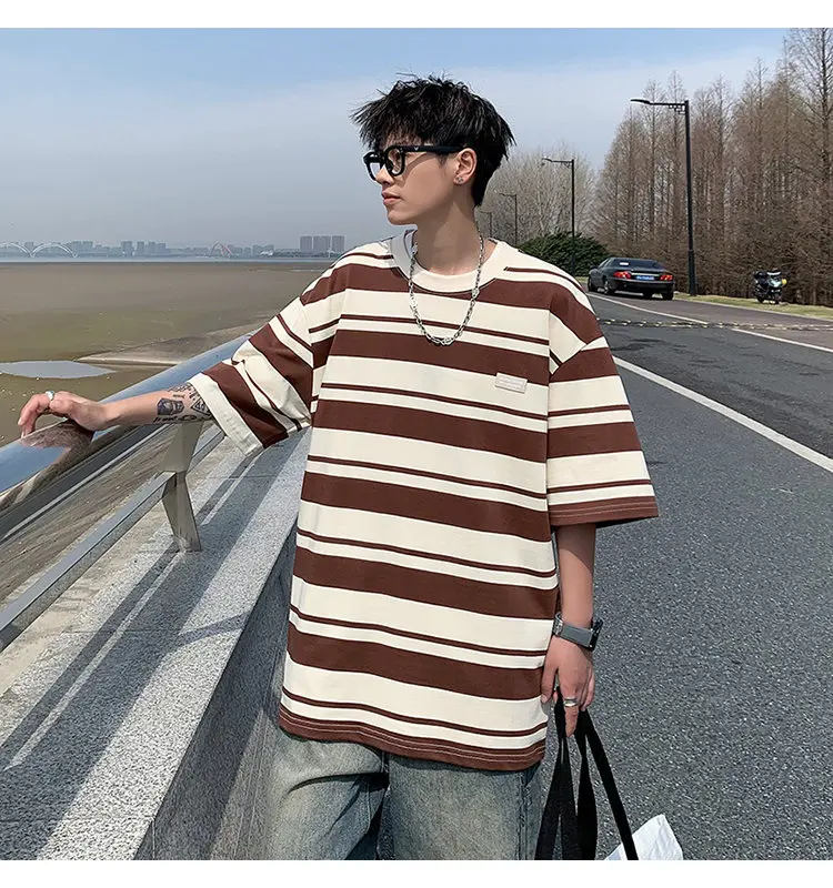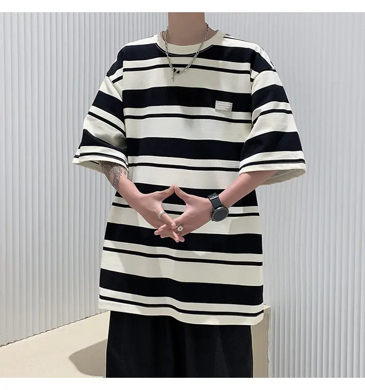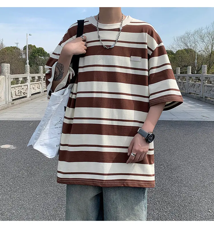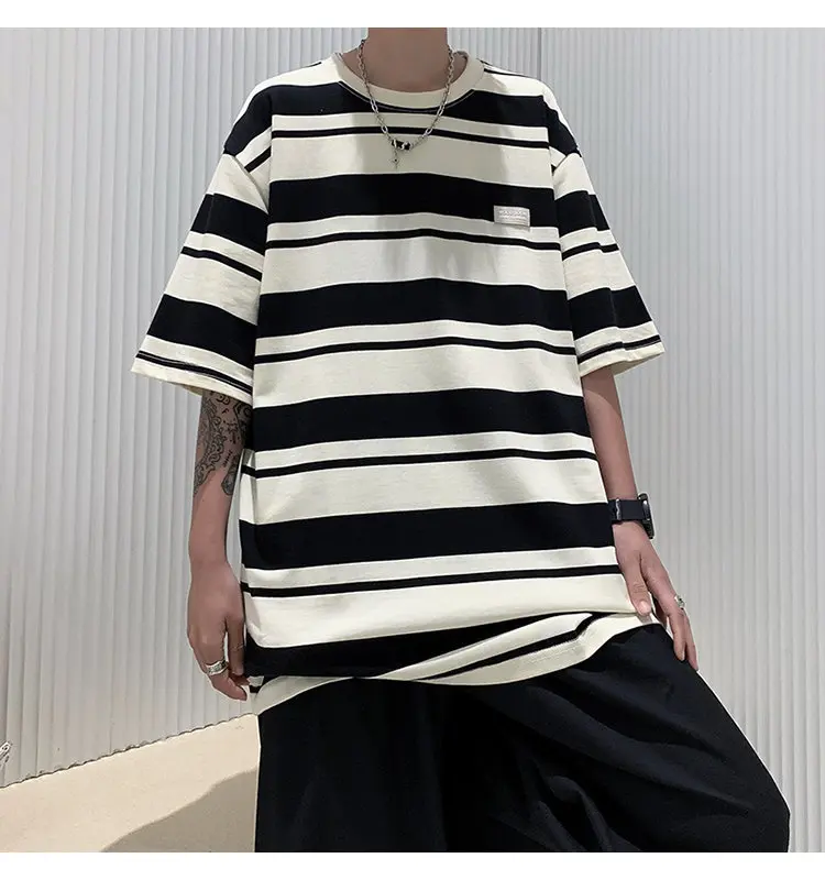 Advbridge Summer Short Sleeve T-shirt Men Fashion Oversized Stripe T Shirt Men Streetwear Loose Round Neck Tshirt Mens Top M-2XL