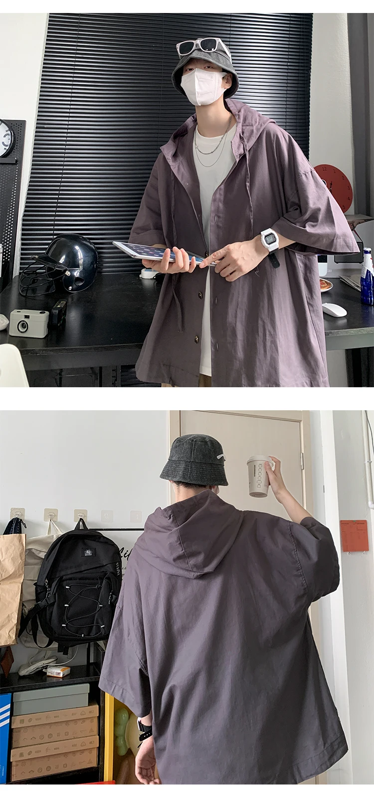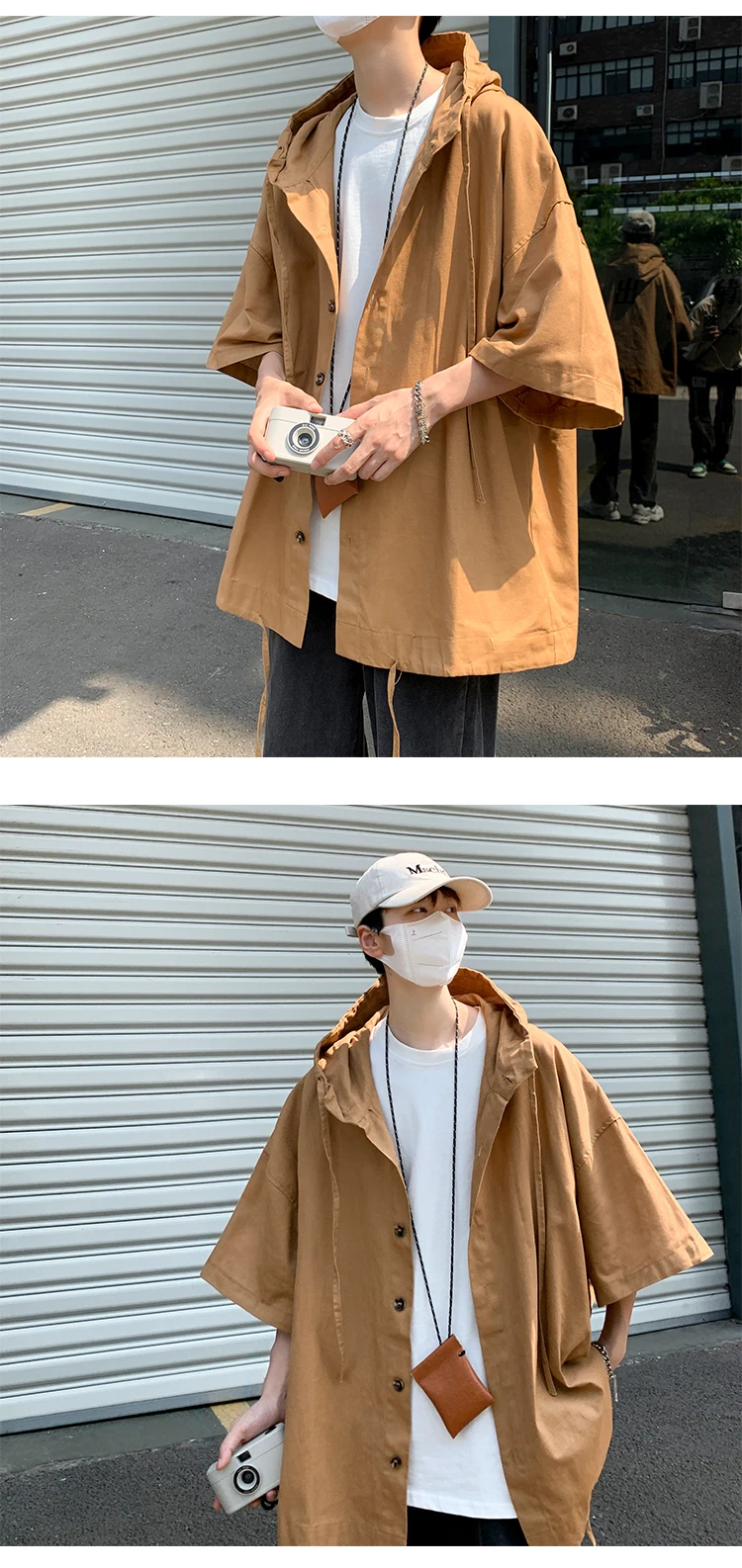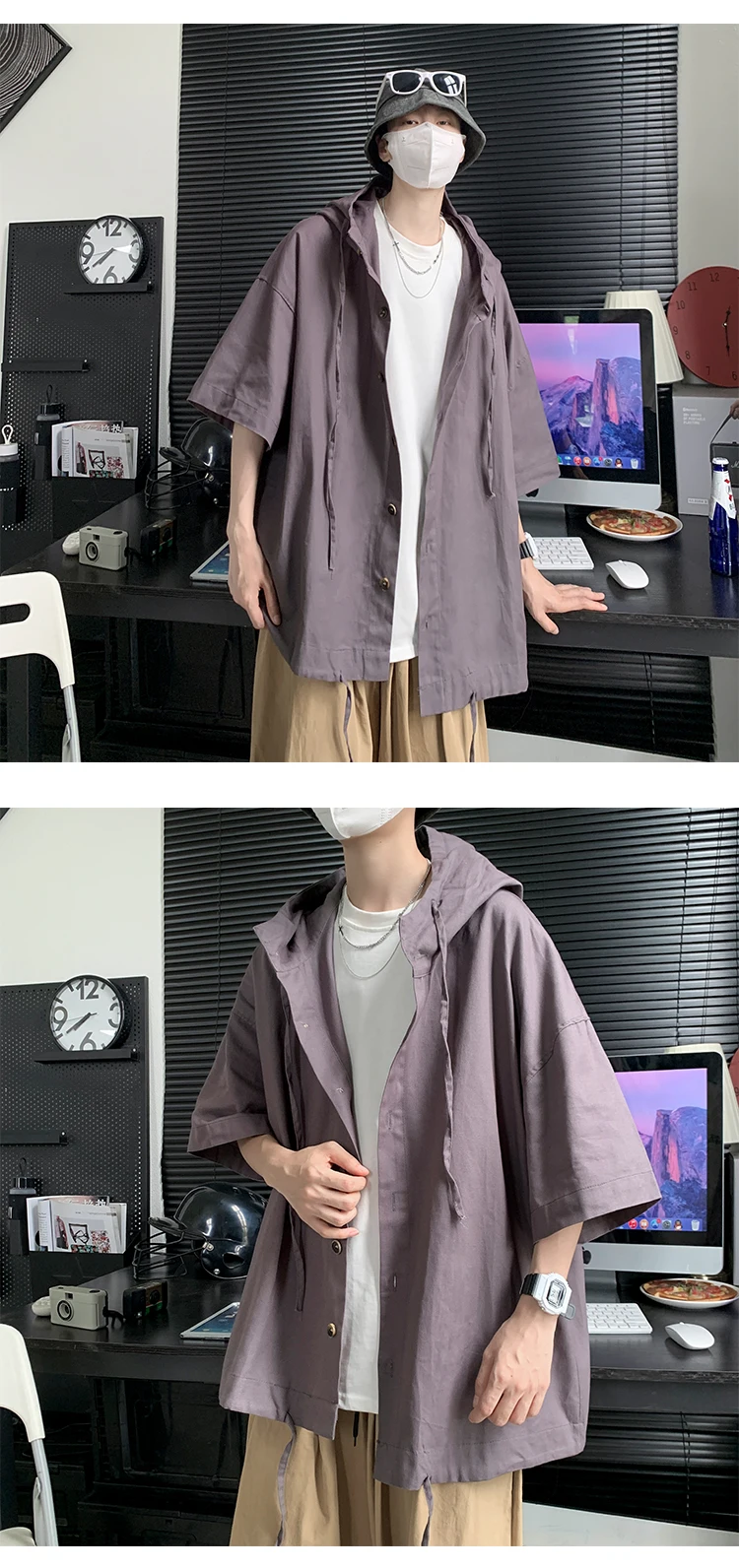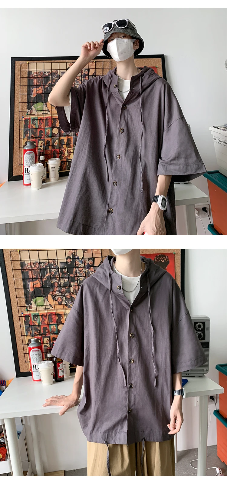 Advbridge Summer Short Sleeve T-Shirt Men's Fashion Casual Hooded T-Shirt Mens Japanese Streetwear Loose Casual Cardigan T-Shirt Men Tops