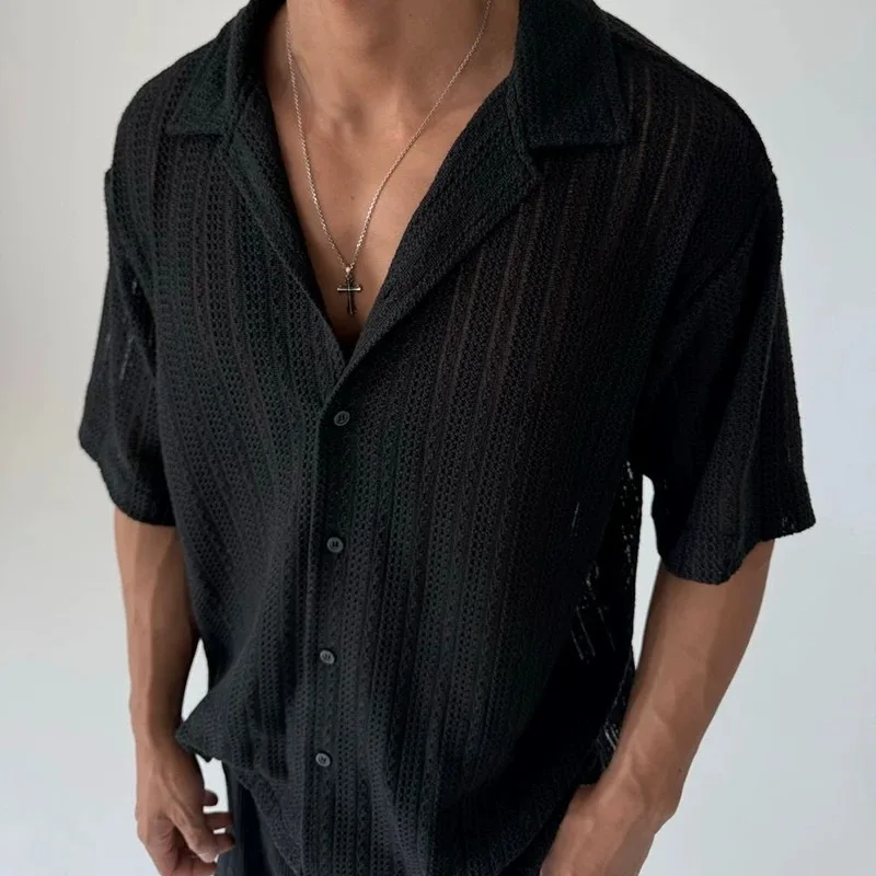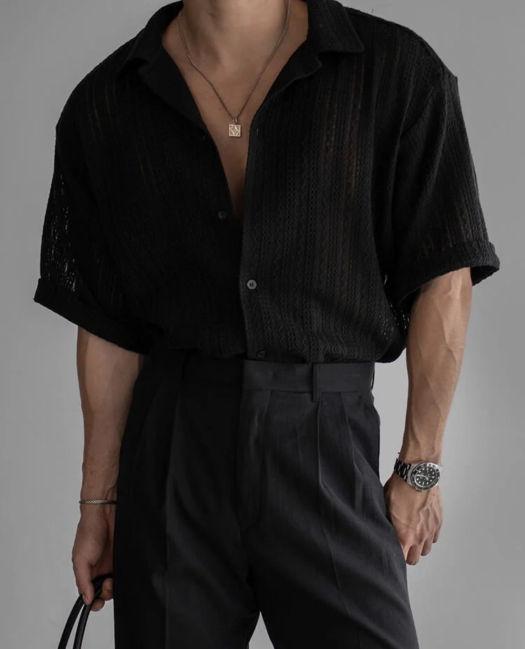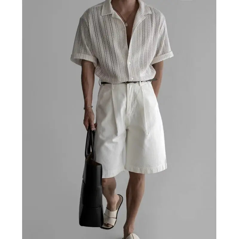 ADVBRIDGE - Summer Short Sleeved Shirt Men Oversized Black White Casual Shirt Men Streetwear Korean Loose Hollow Shirt Mens Hawaiian Shirts