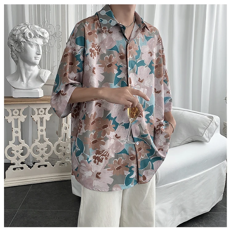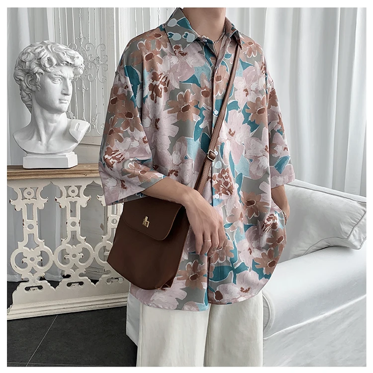 Advbridge Summer Short-sleeved Shirts Men's Fashion Printed Casual Shirts Men Korean Loose Flower Shirts Mens Hawaiian Shirts M-2XL