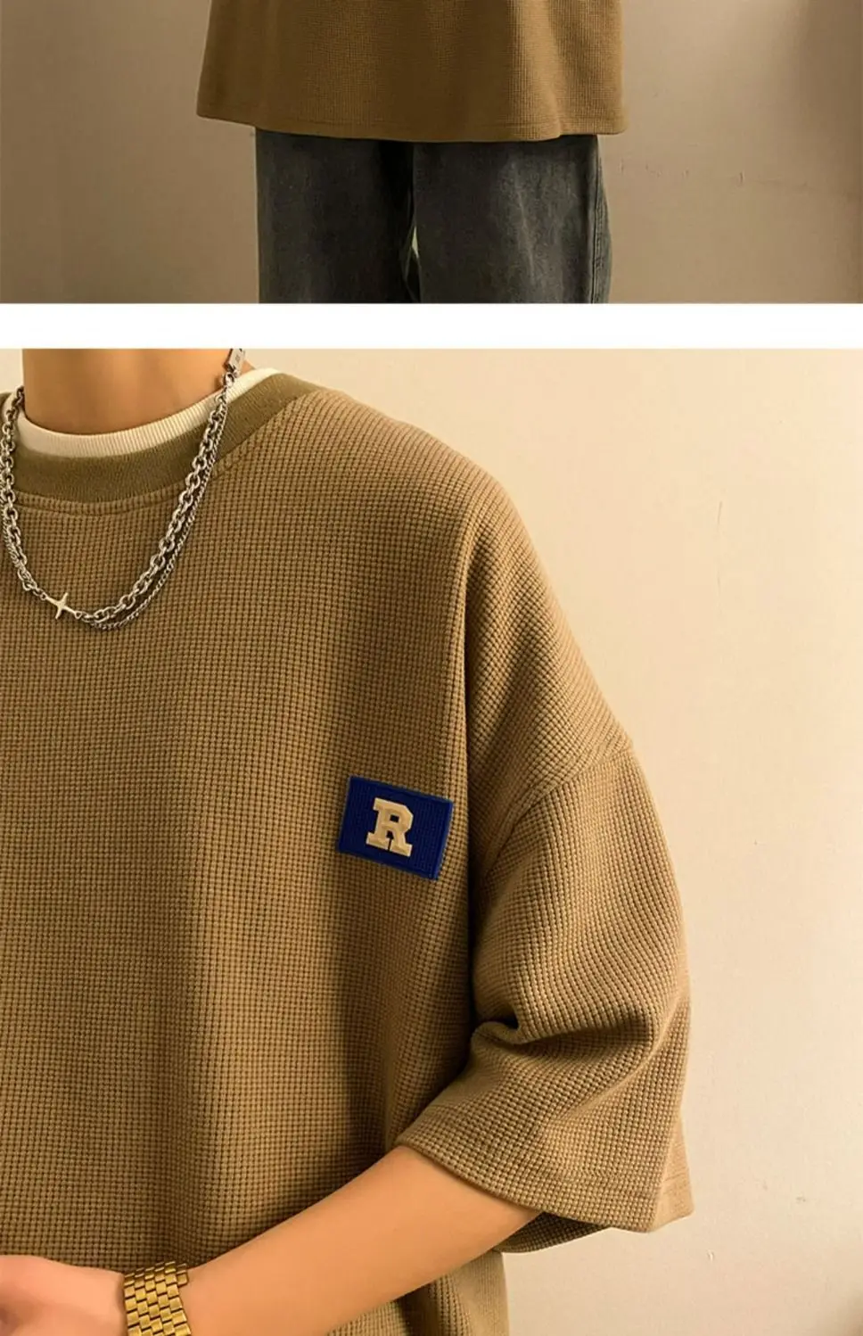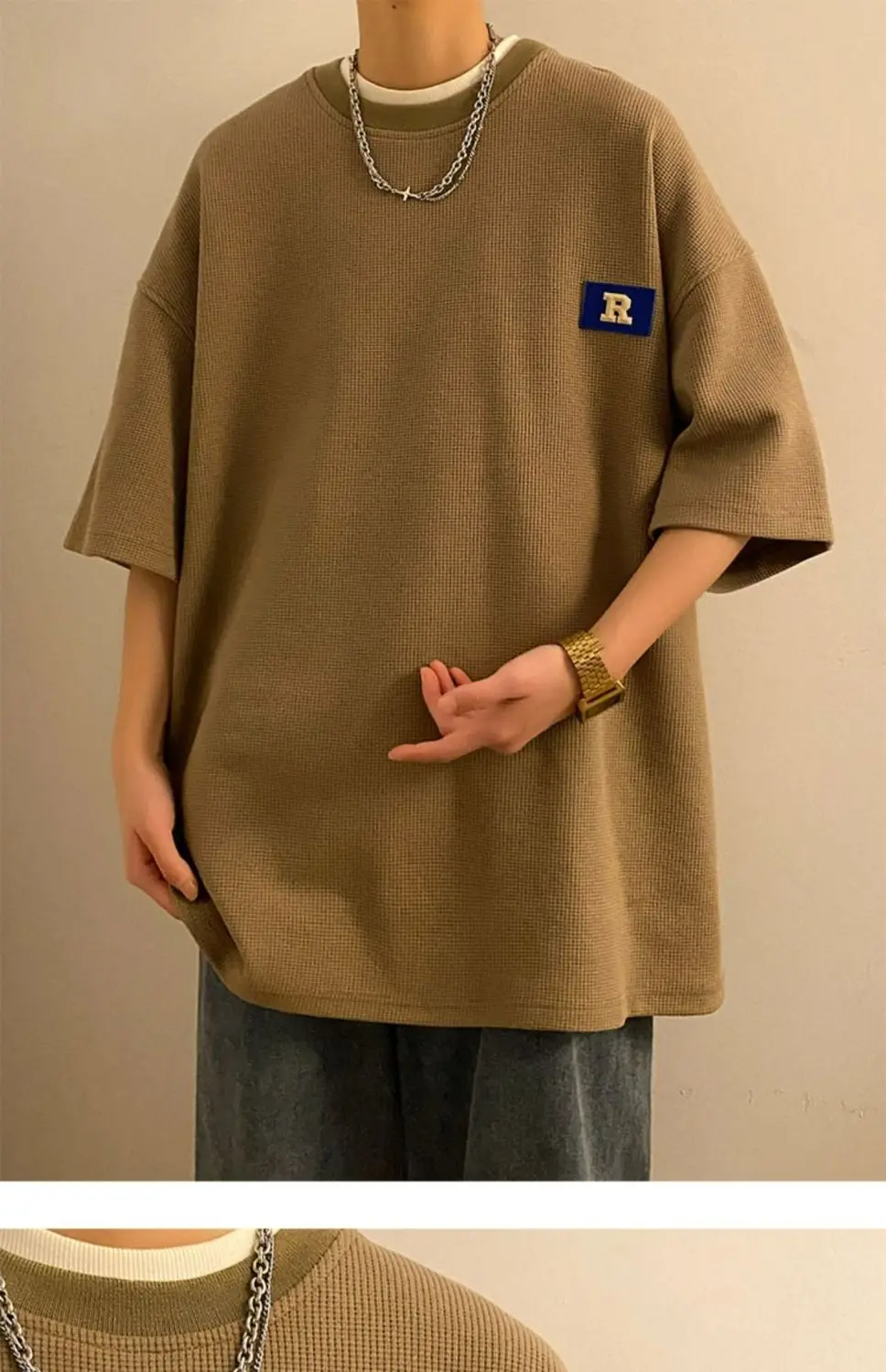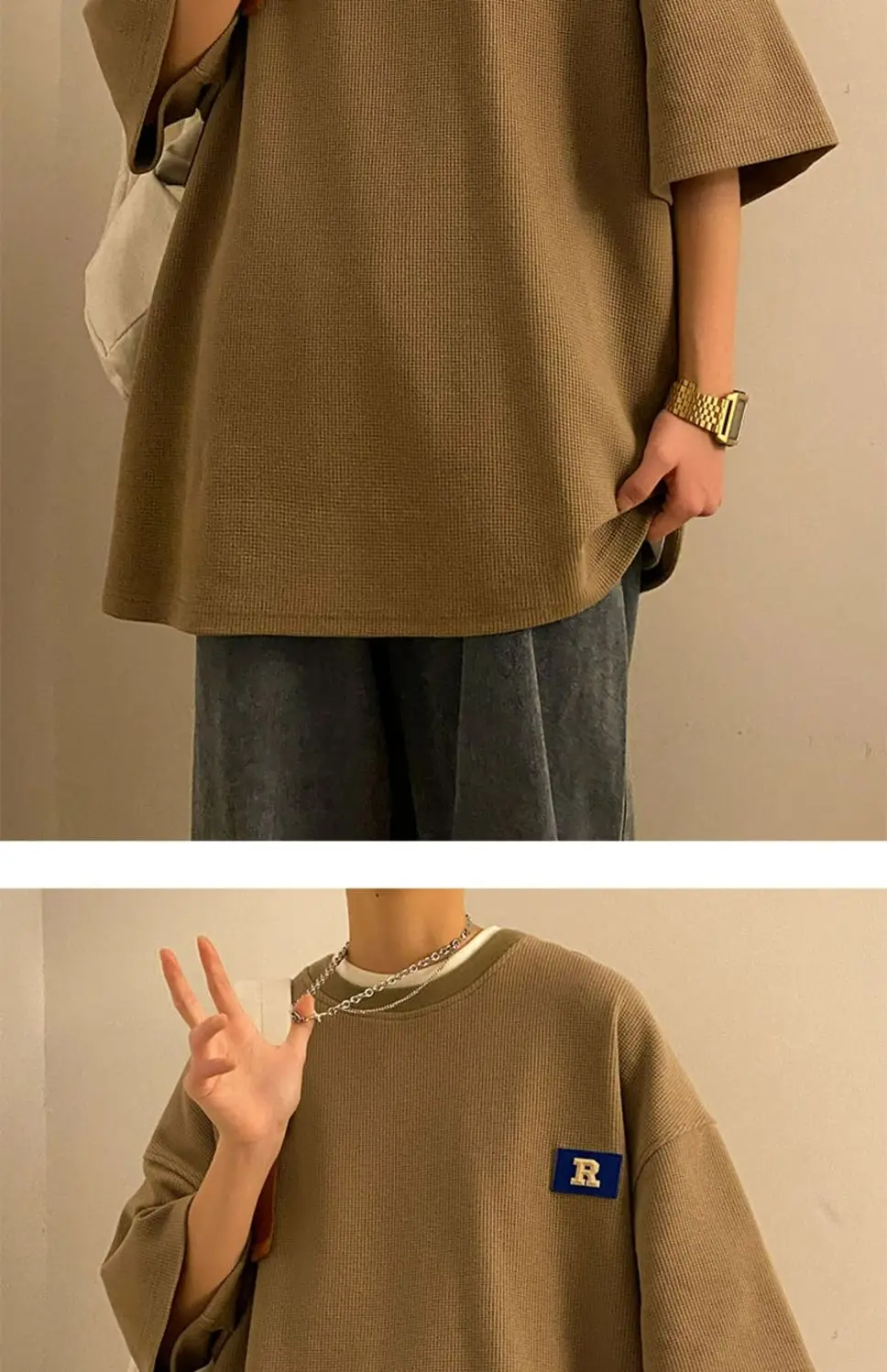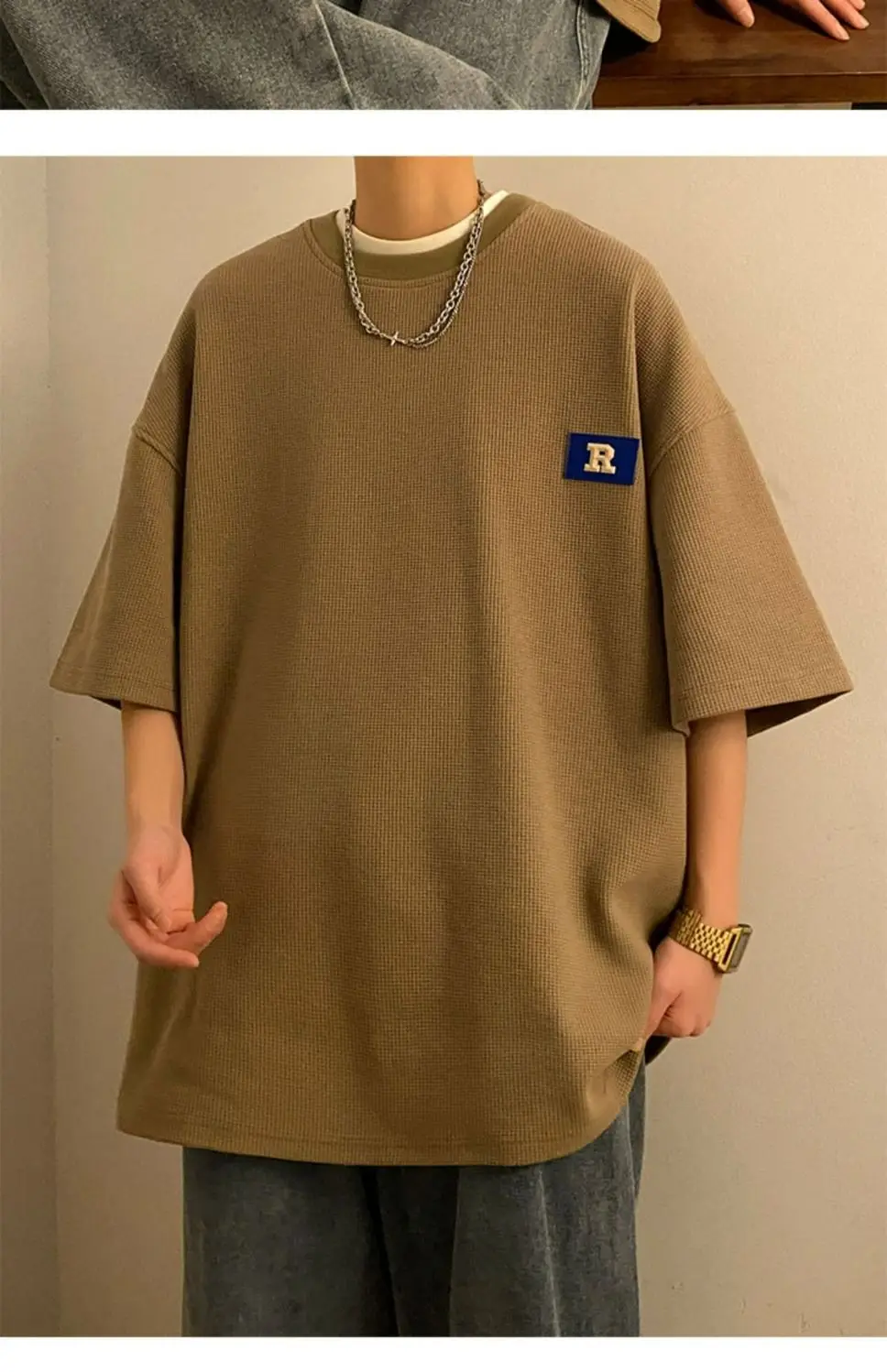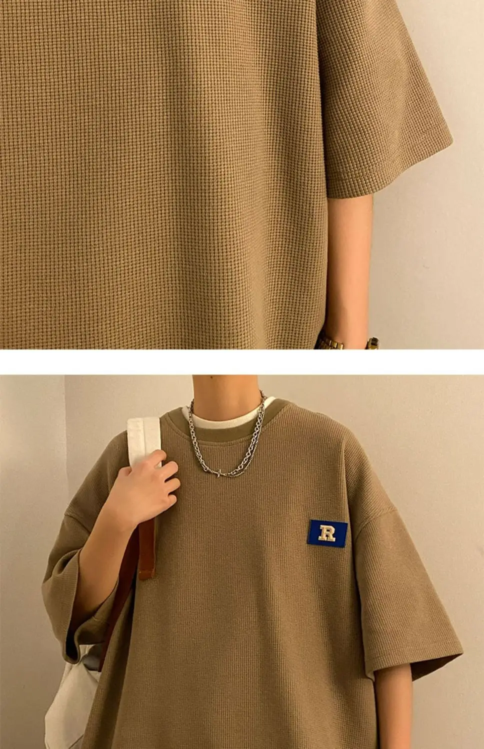 Advbridge Summer Solid Casual Loose Tess T-Shirts Men'S Top Simple Breathable Waffle Pullover Prints R Short Sleeve Sport Cool Boys